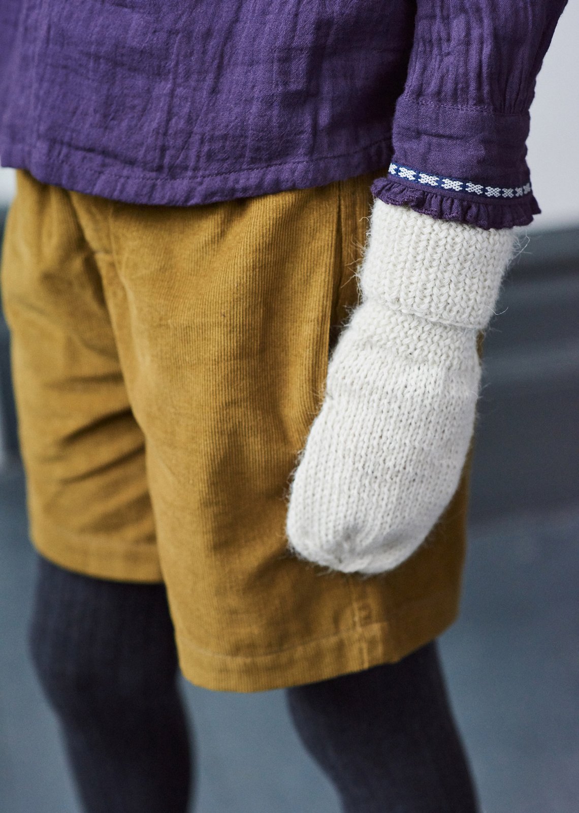 儿童白色羊驼毛手套