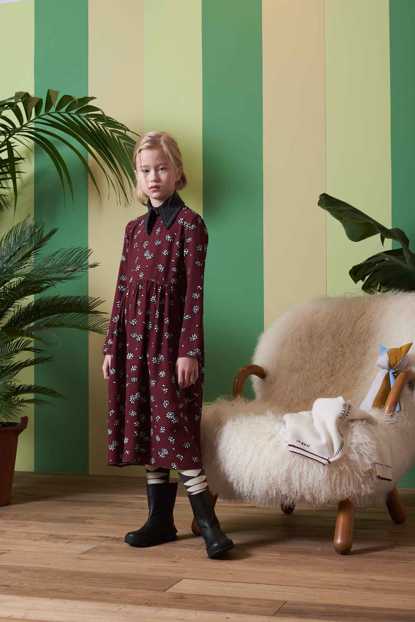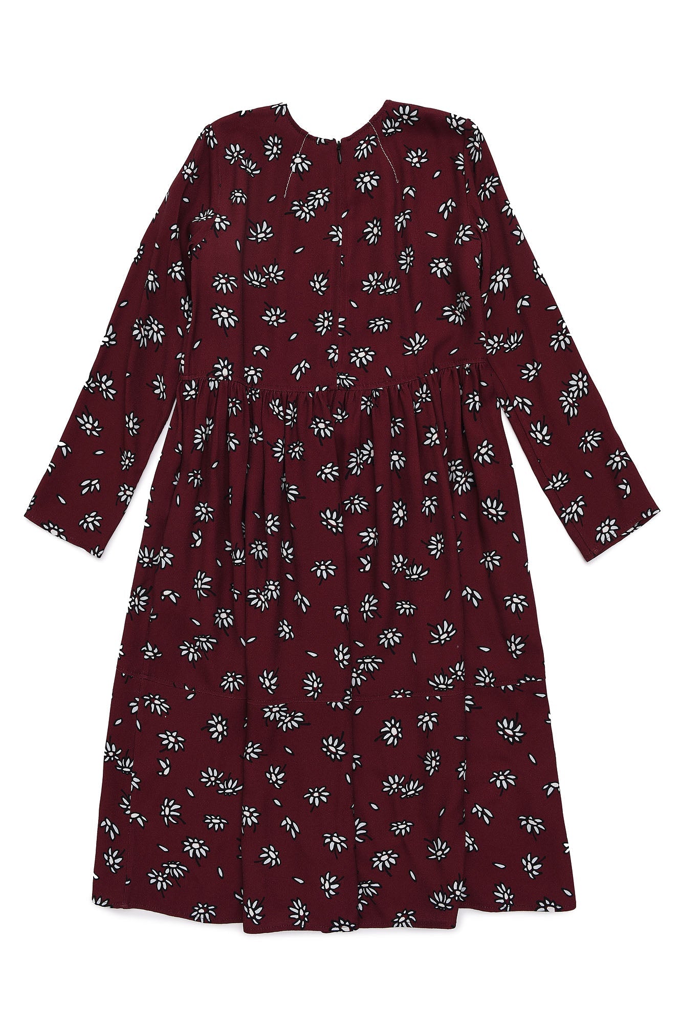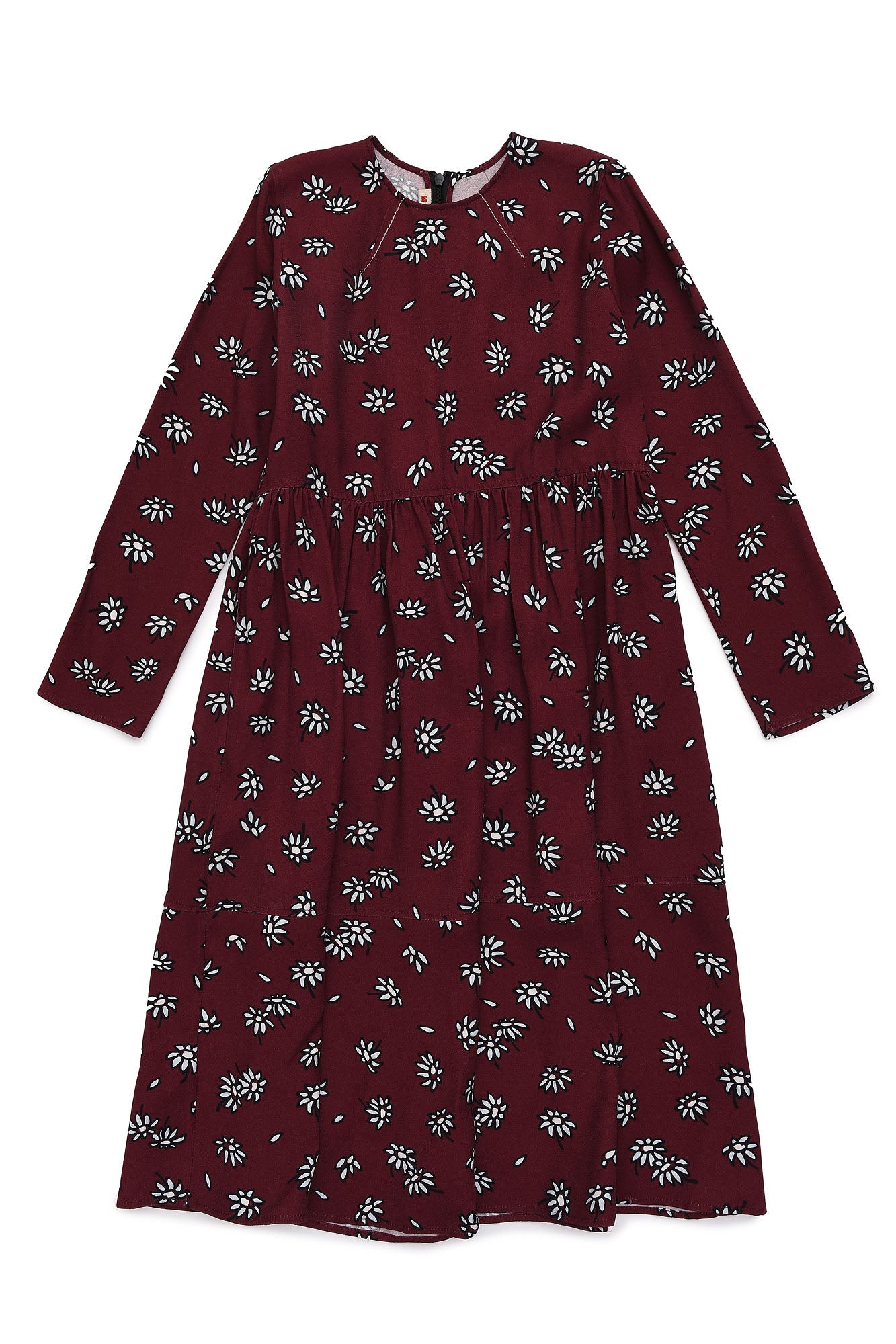 女童深红色碎花连衣裙