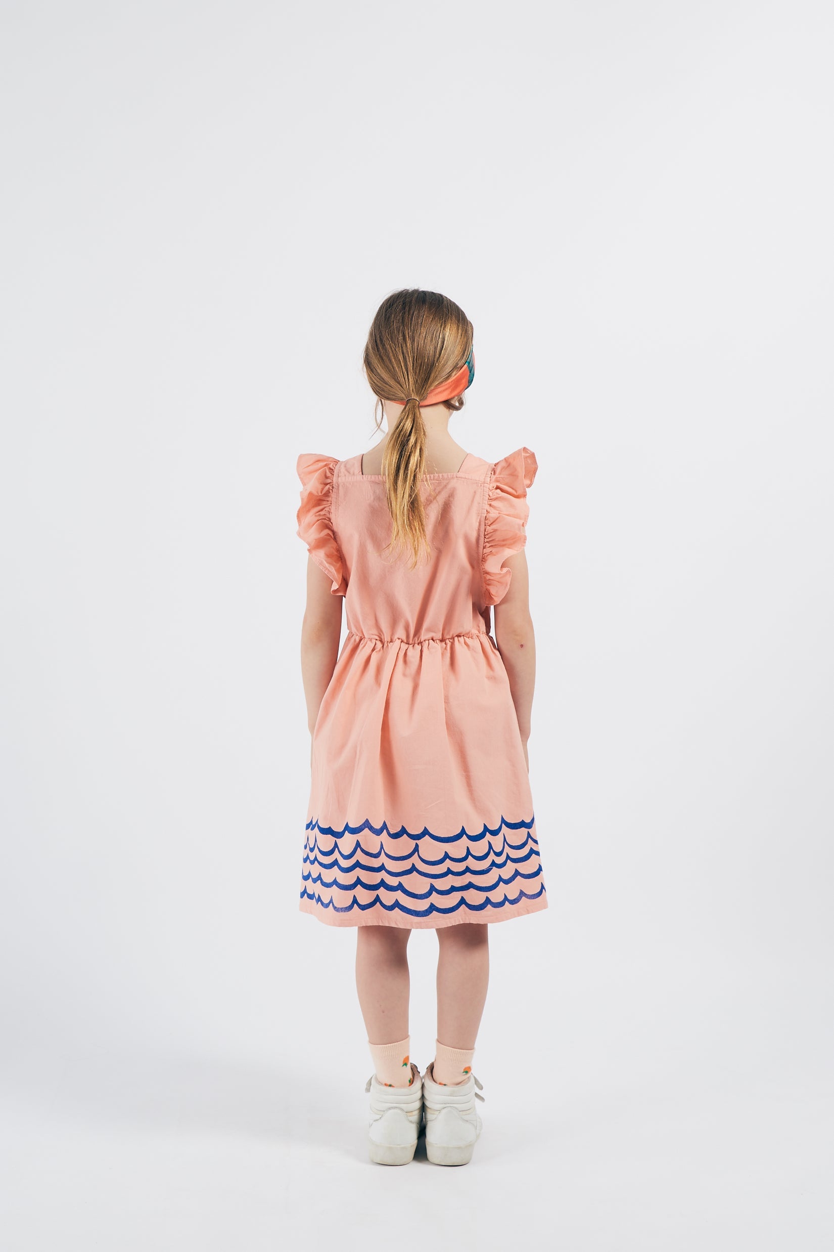 女童粉色荷叶边棉连衣裙