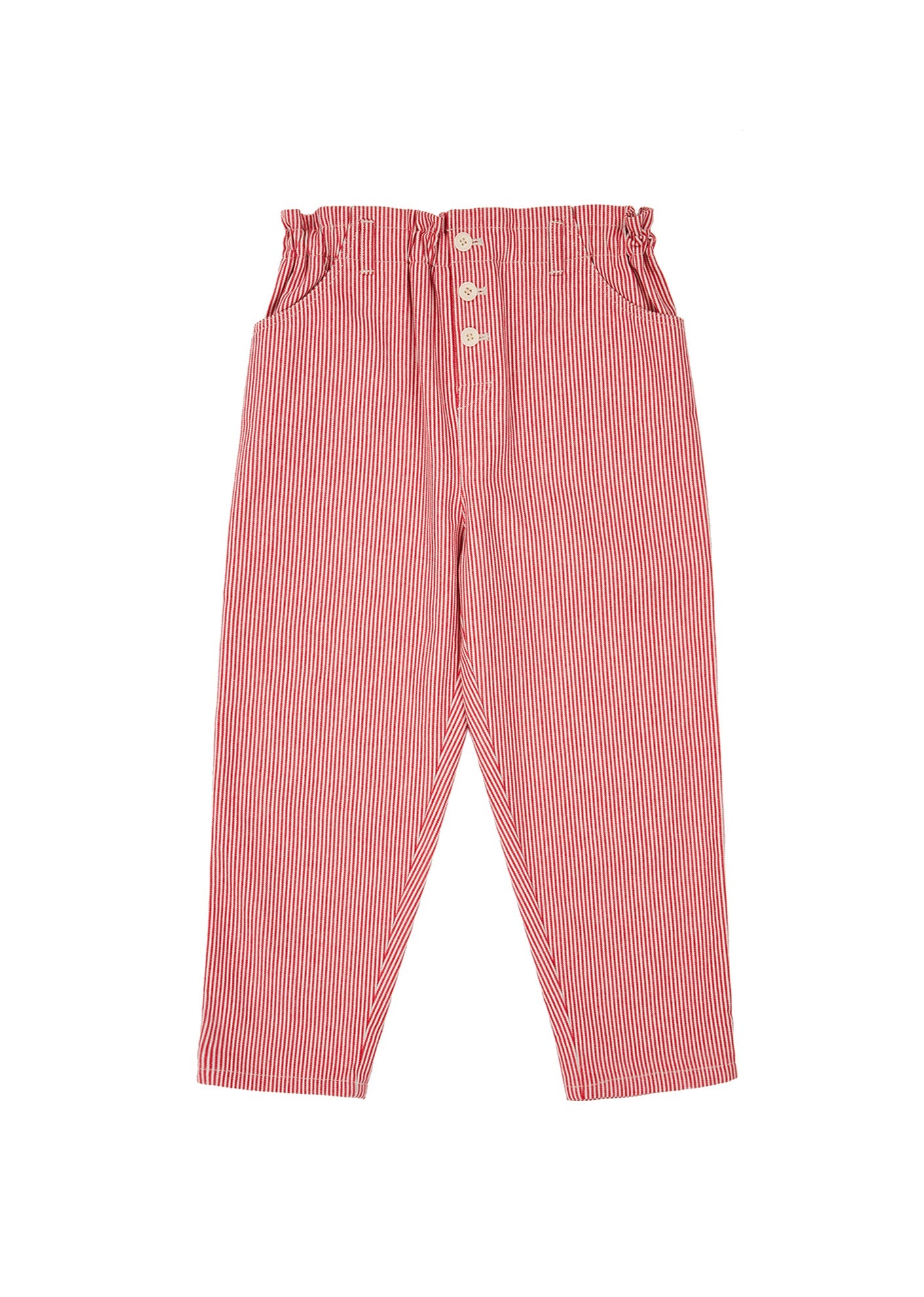 女童红色条纹棉长裤