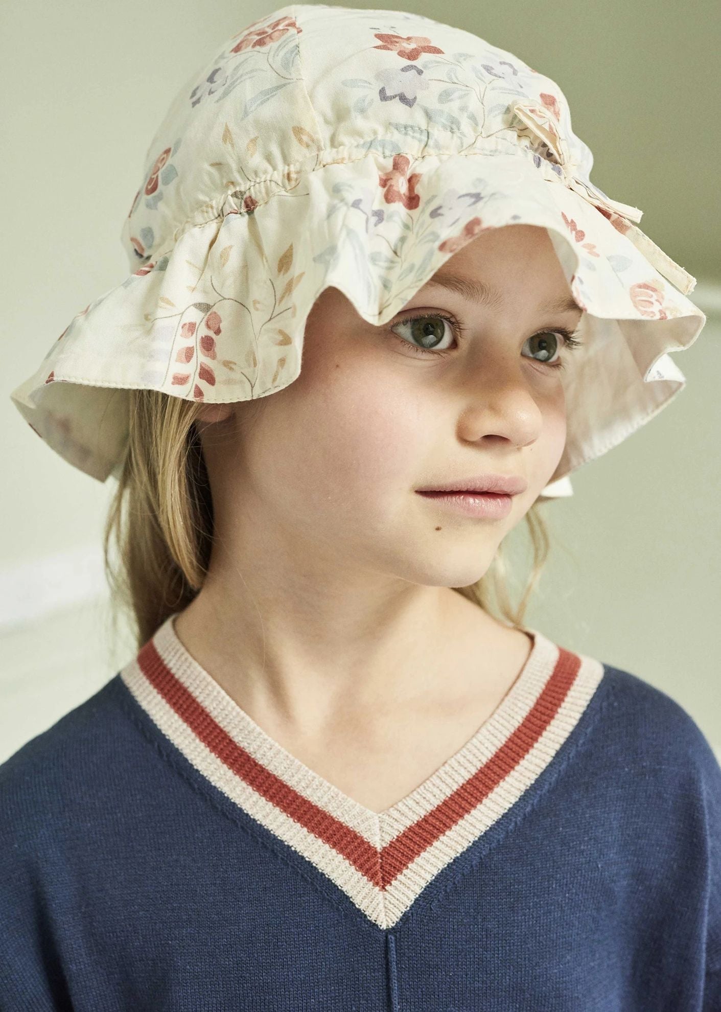 女童米色花朵印花太阳帽