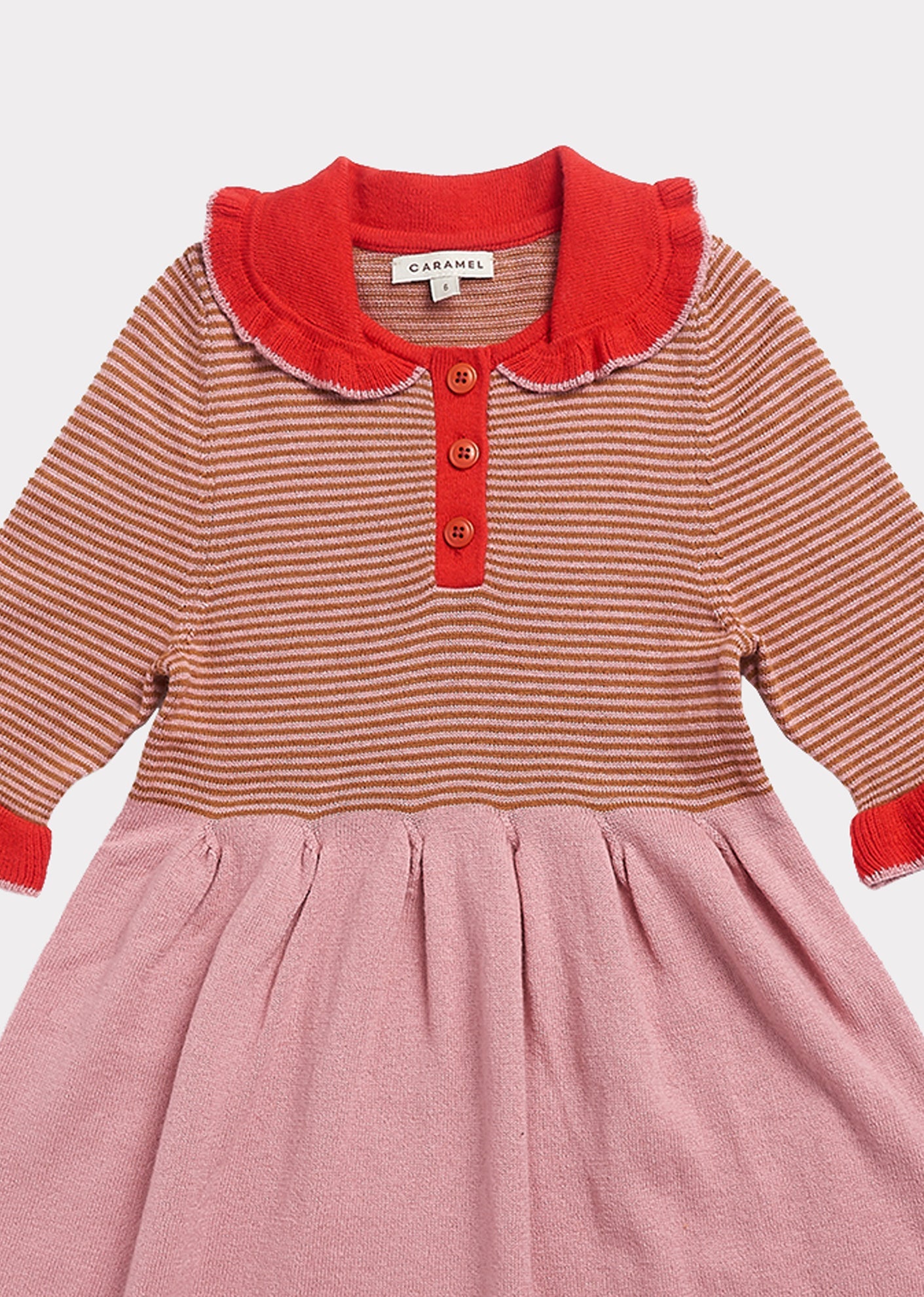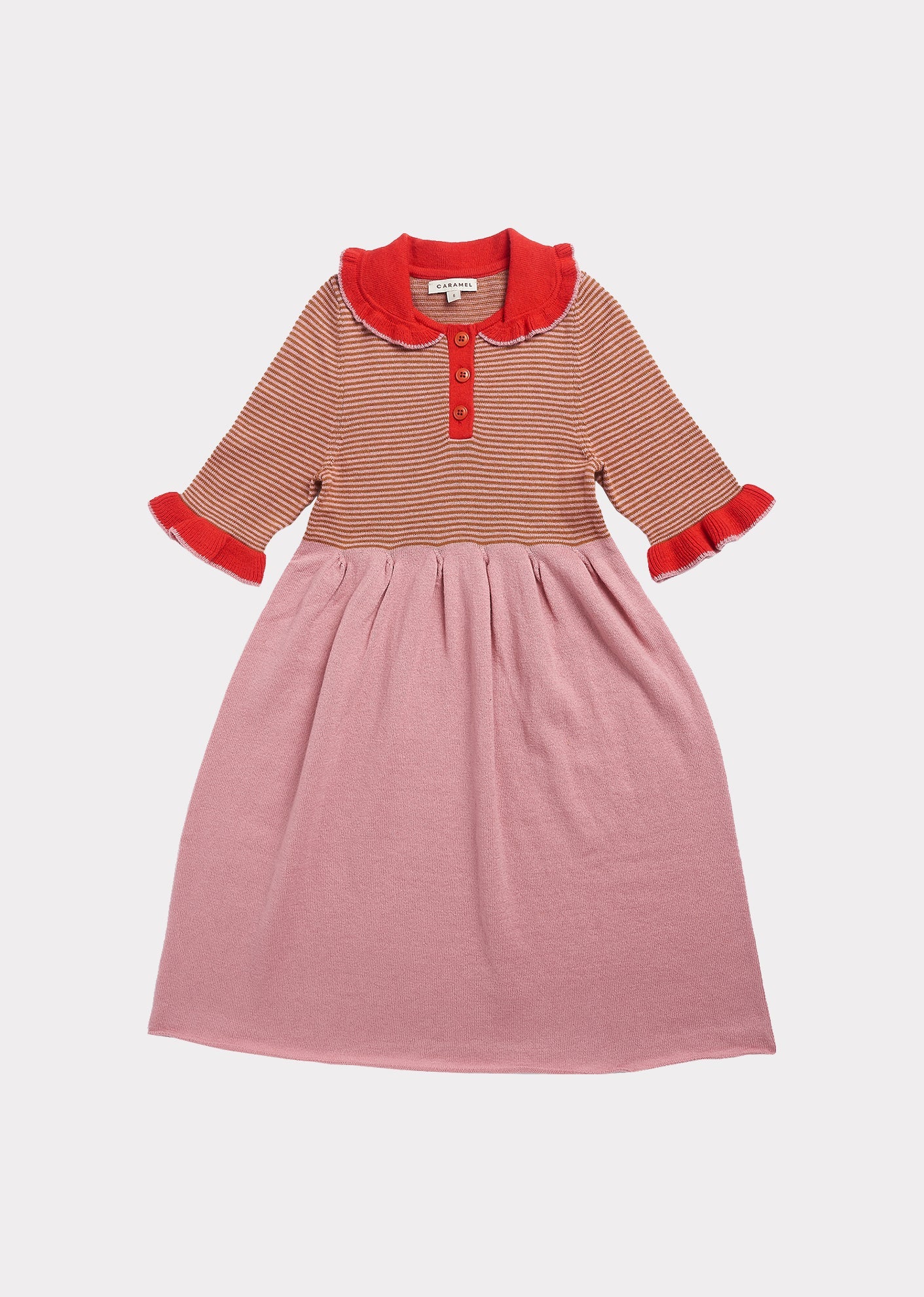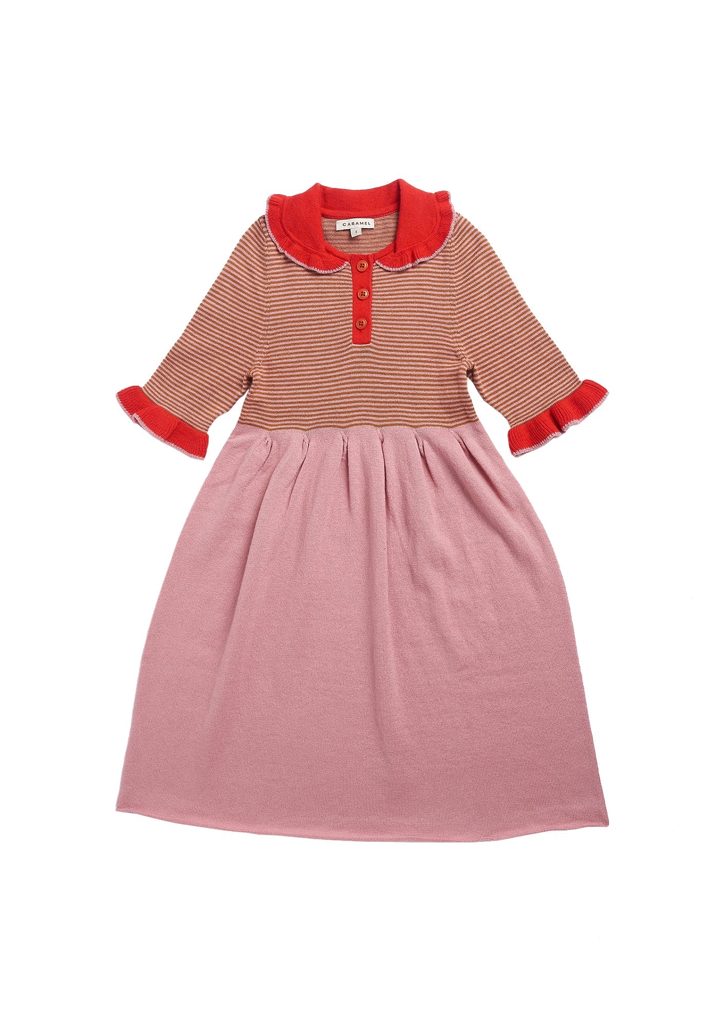 女童粉色条纹针织棉连衣裙