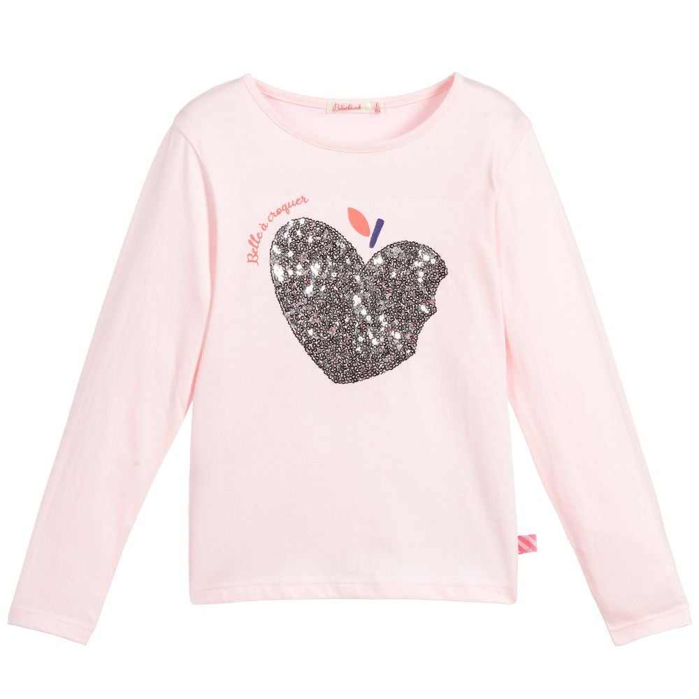 女童粉色亮片棉上衣