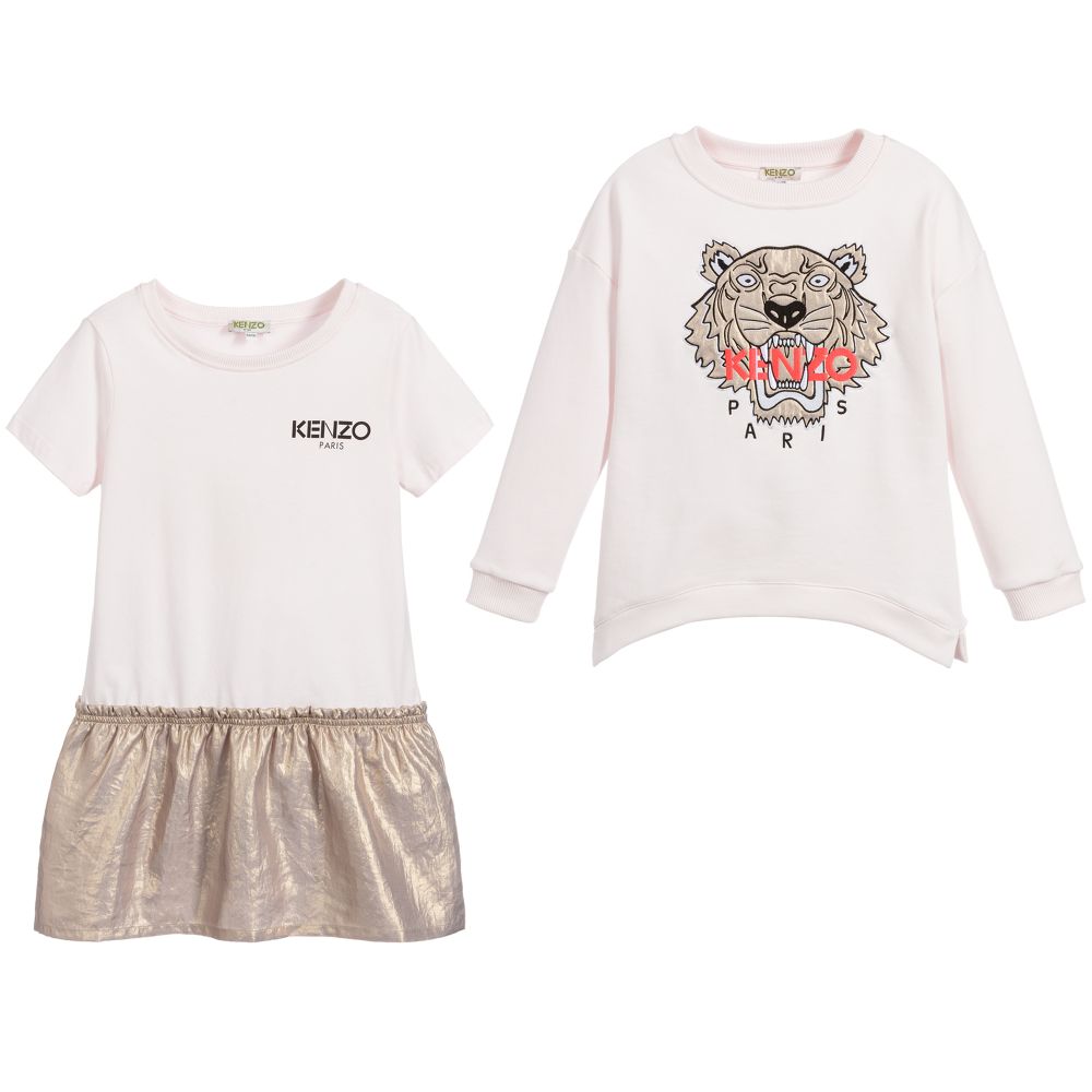 女童粉色&金色2件连衣裙套装