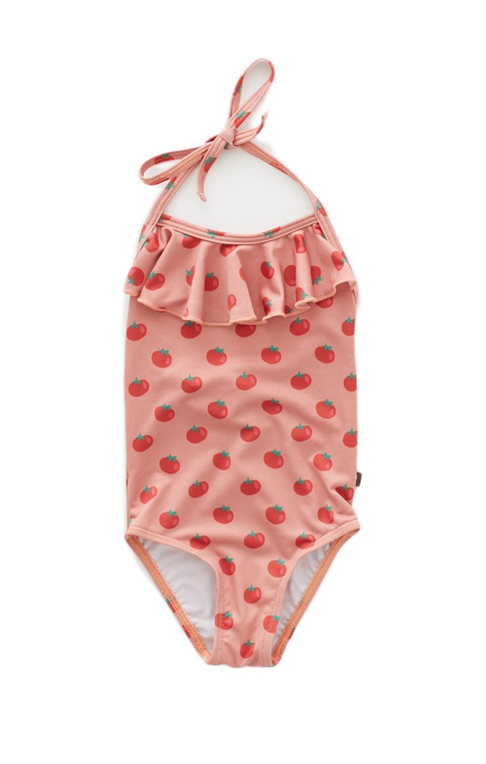 Girls Pink Tomato Ruffle Halter Swimsuit