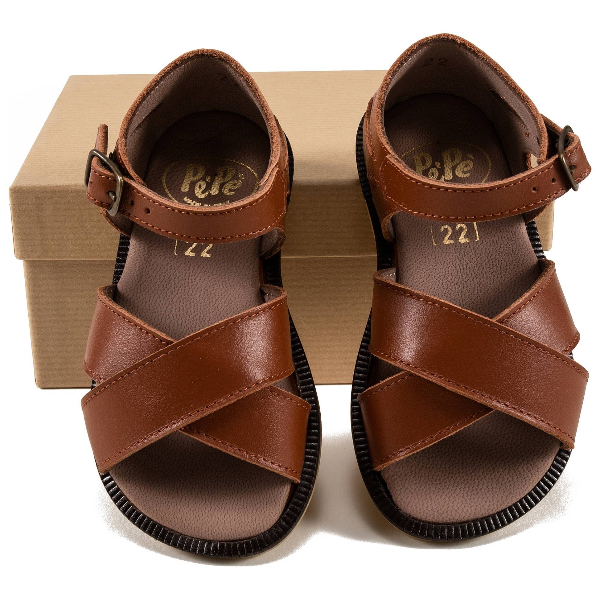 男童棕色皮革凉鞋