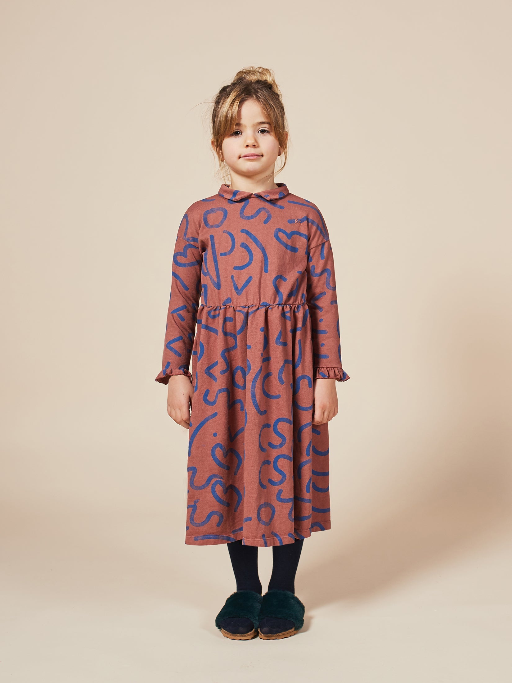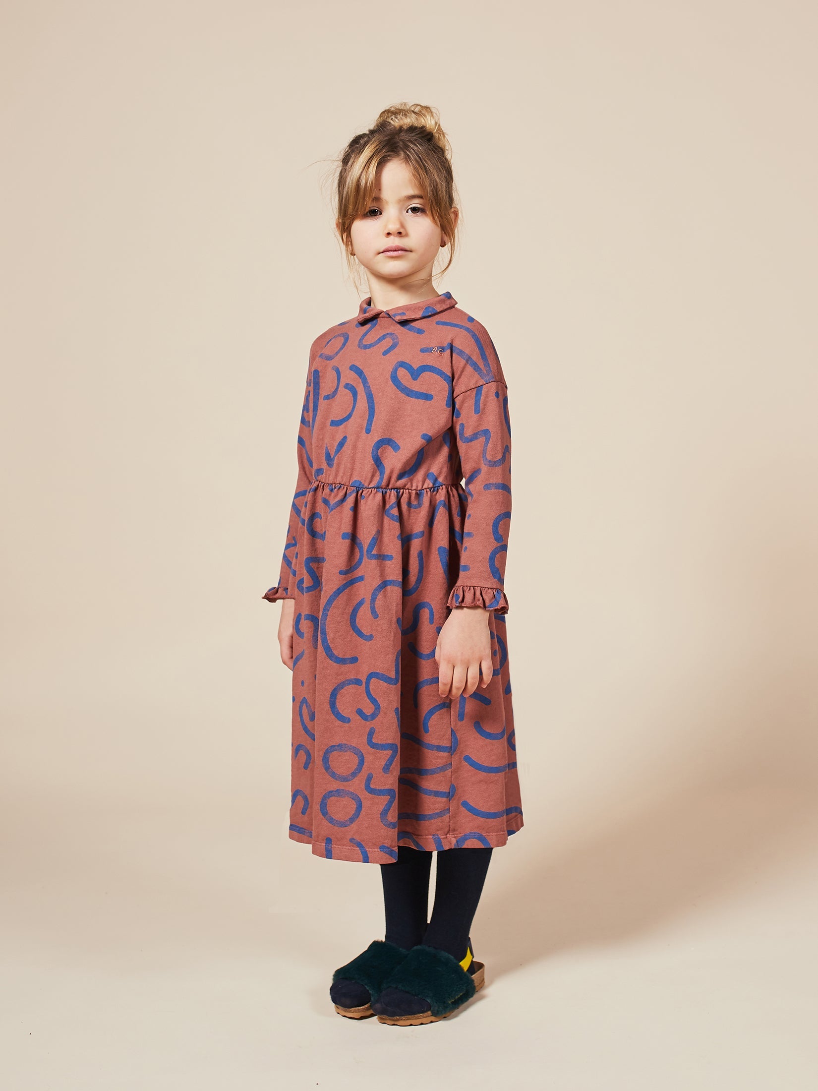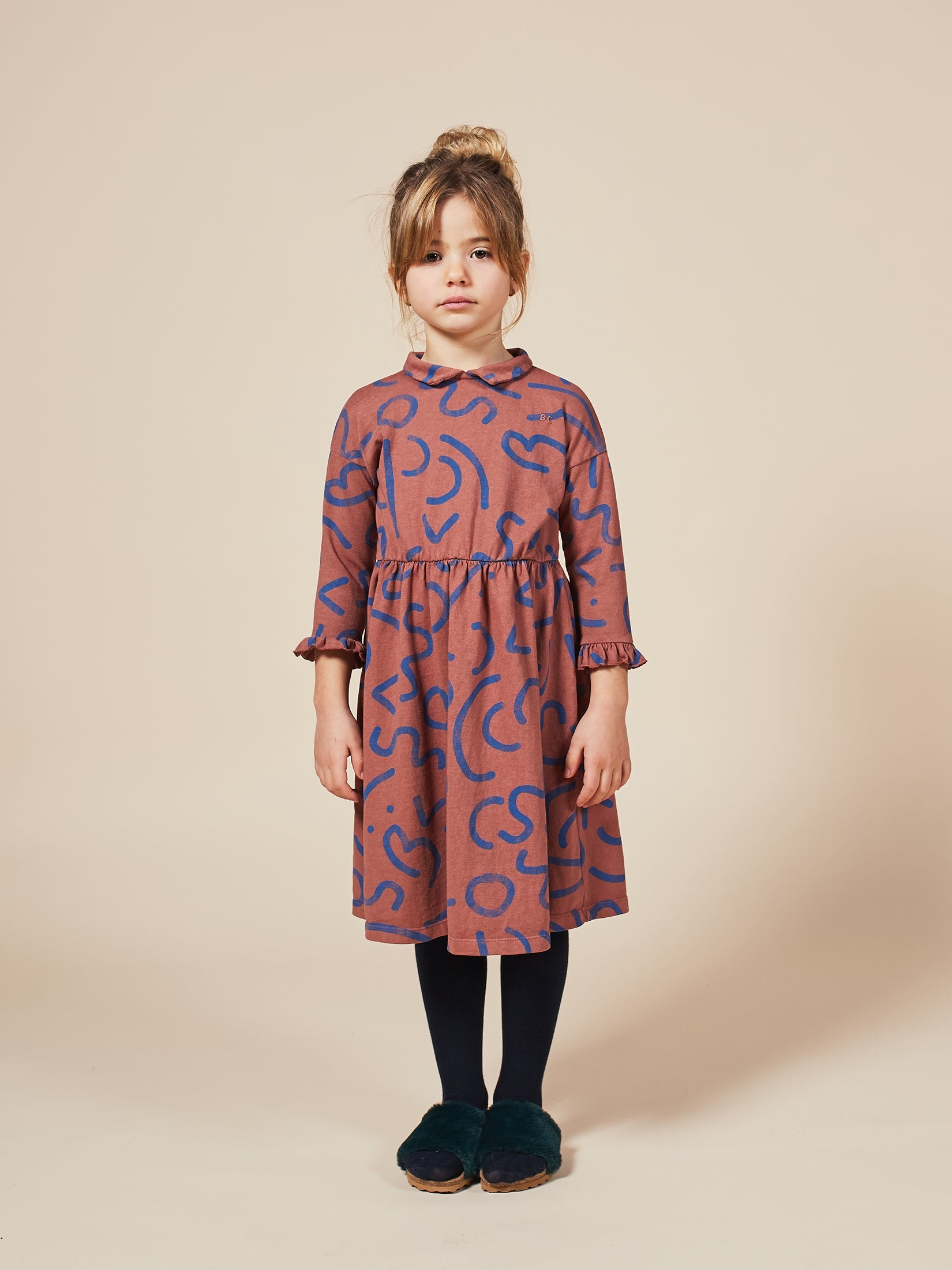 女童焦糖色线条棉连衣裙