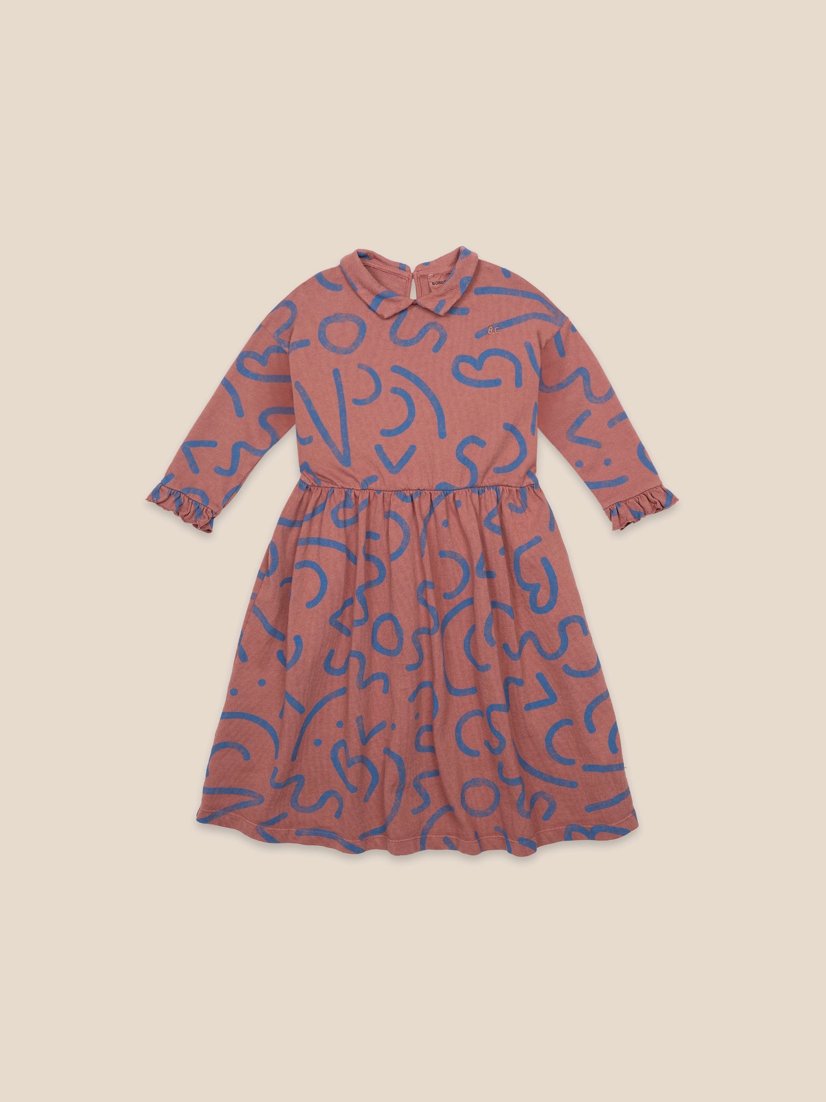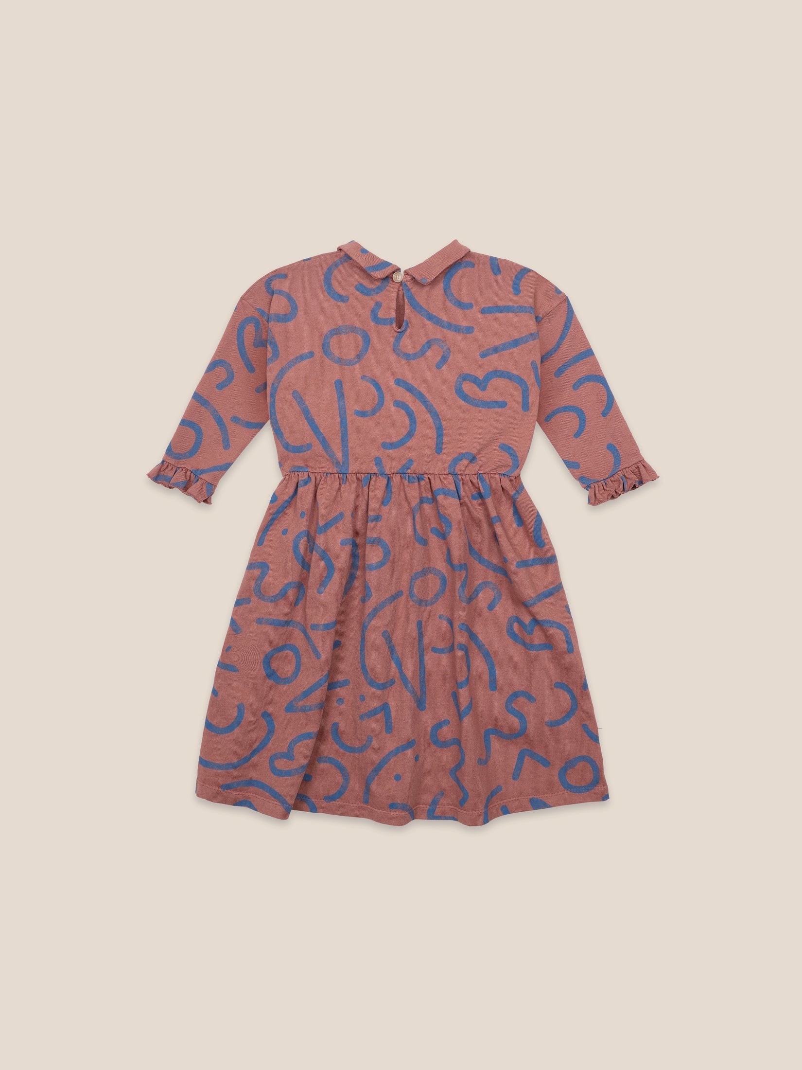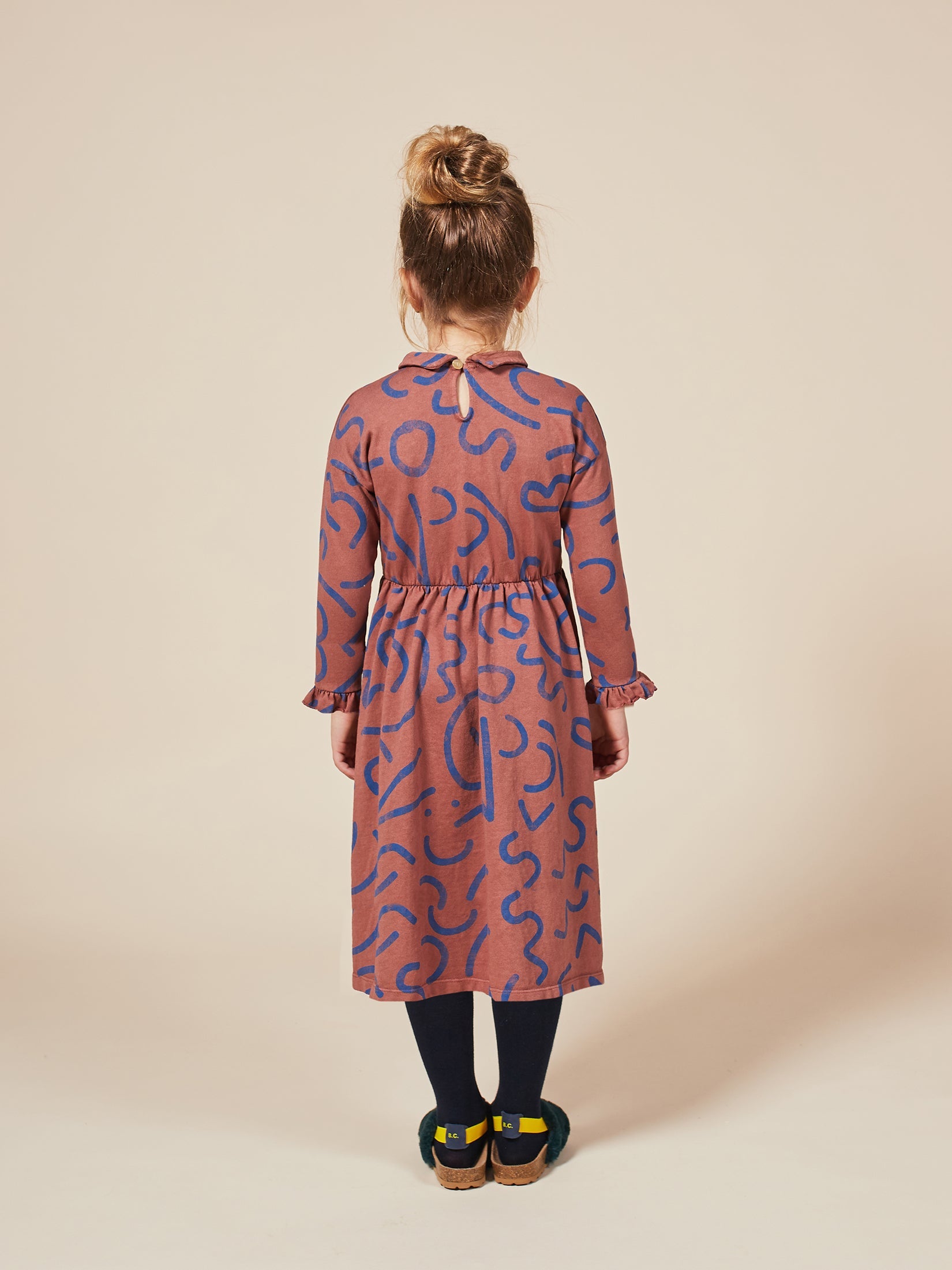 女童焦糖色线条棉连衣裙