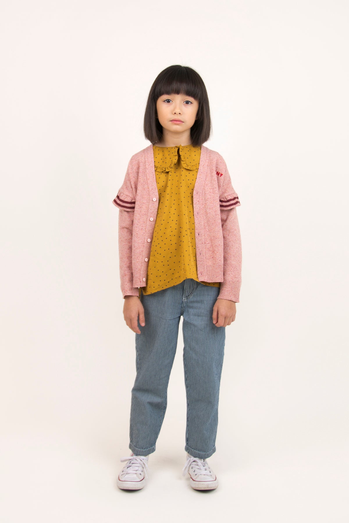 女童芥末黄圆点衬衫
