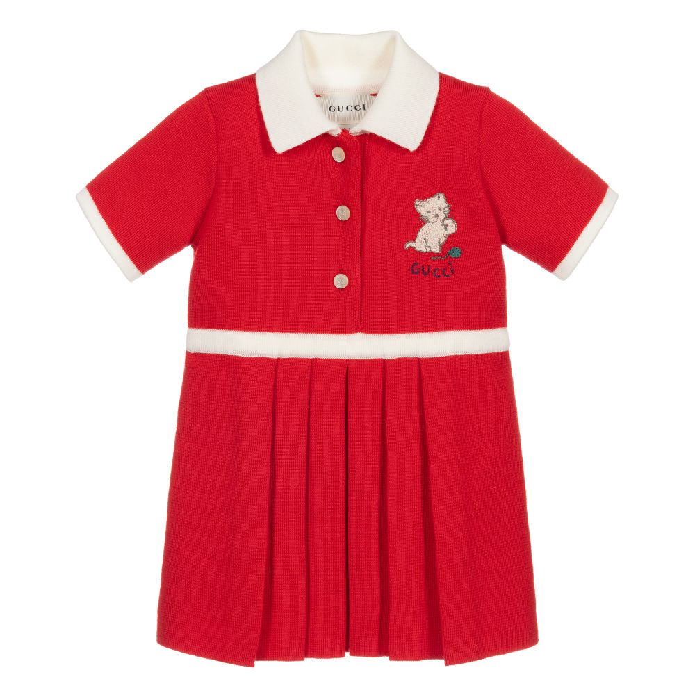 Baby Girls Red Cat Wool Dress