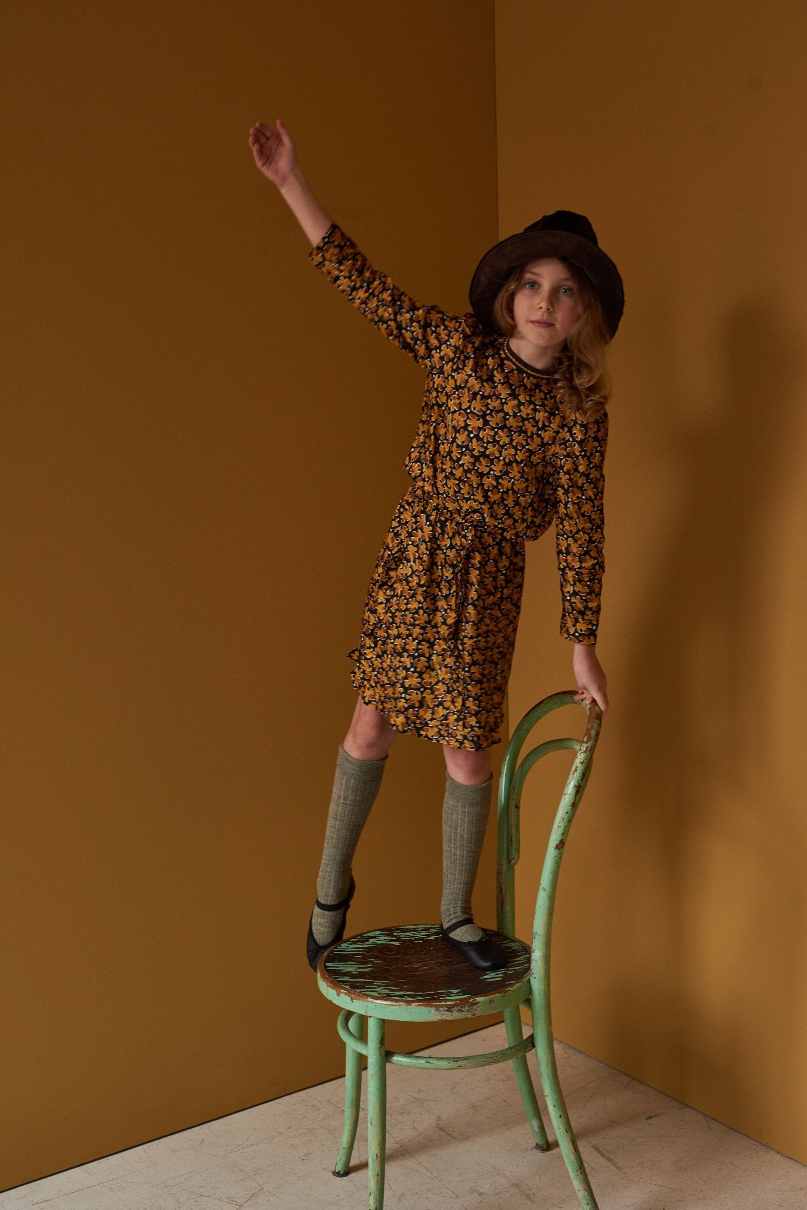 女童黑色树叶印花衬衫