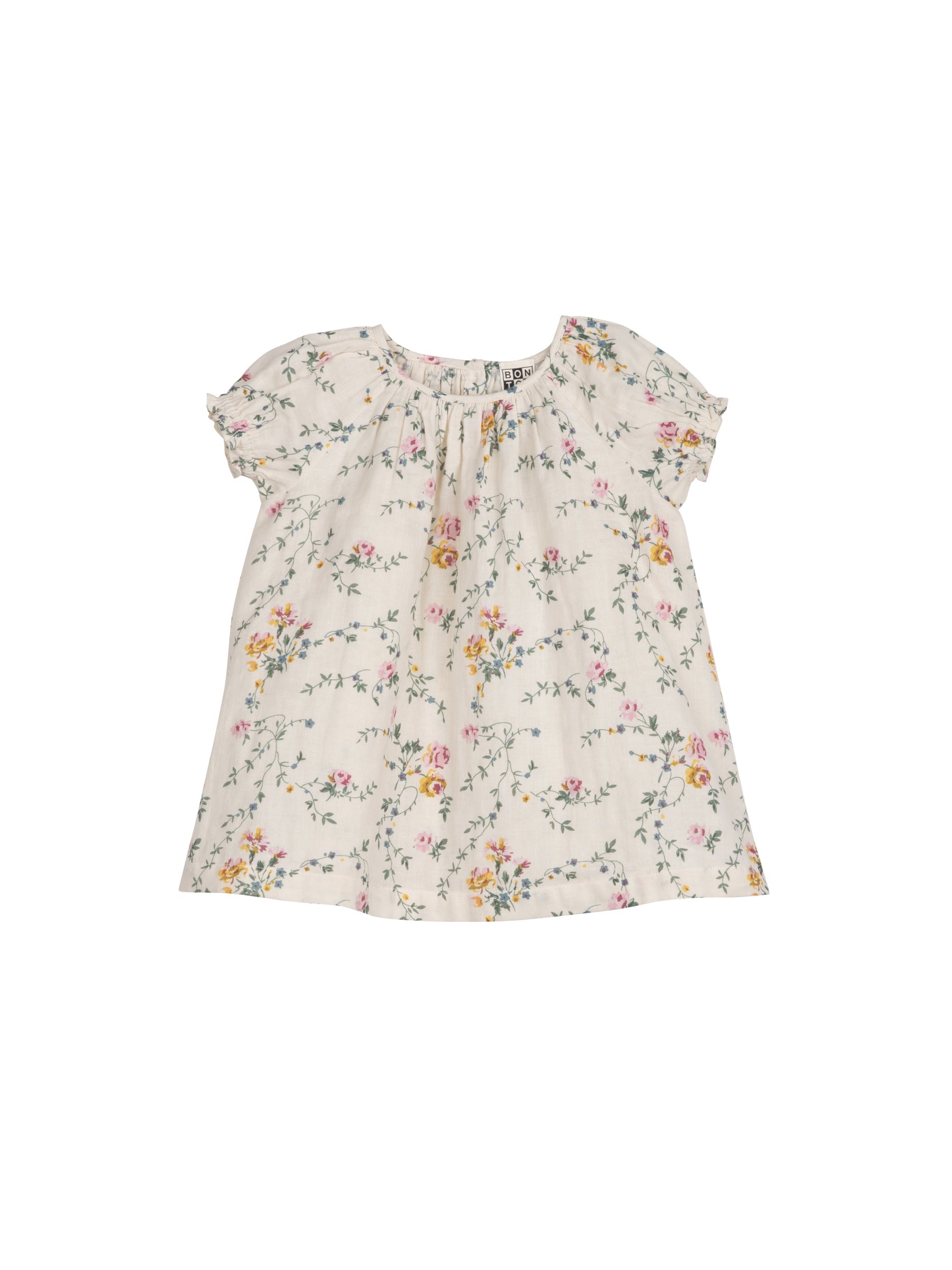 女婴浅绿色花朵棉连衣裙