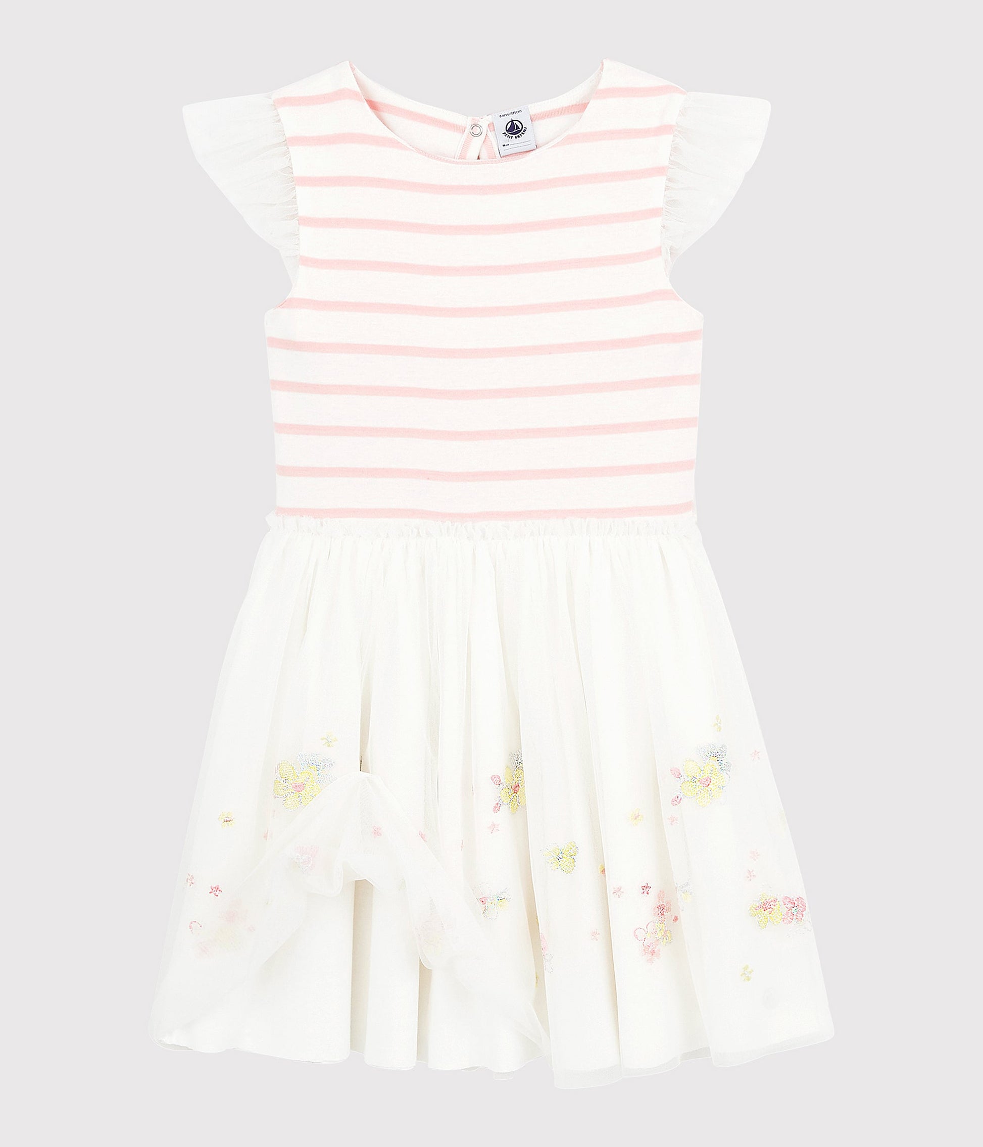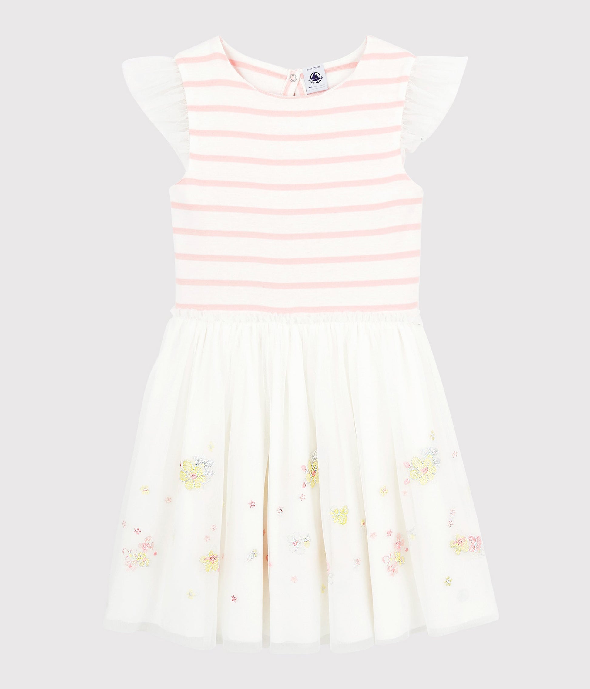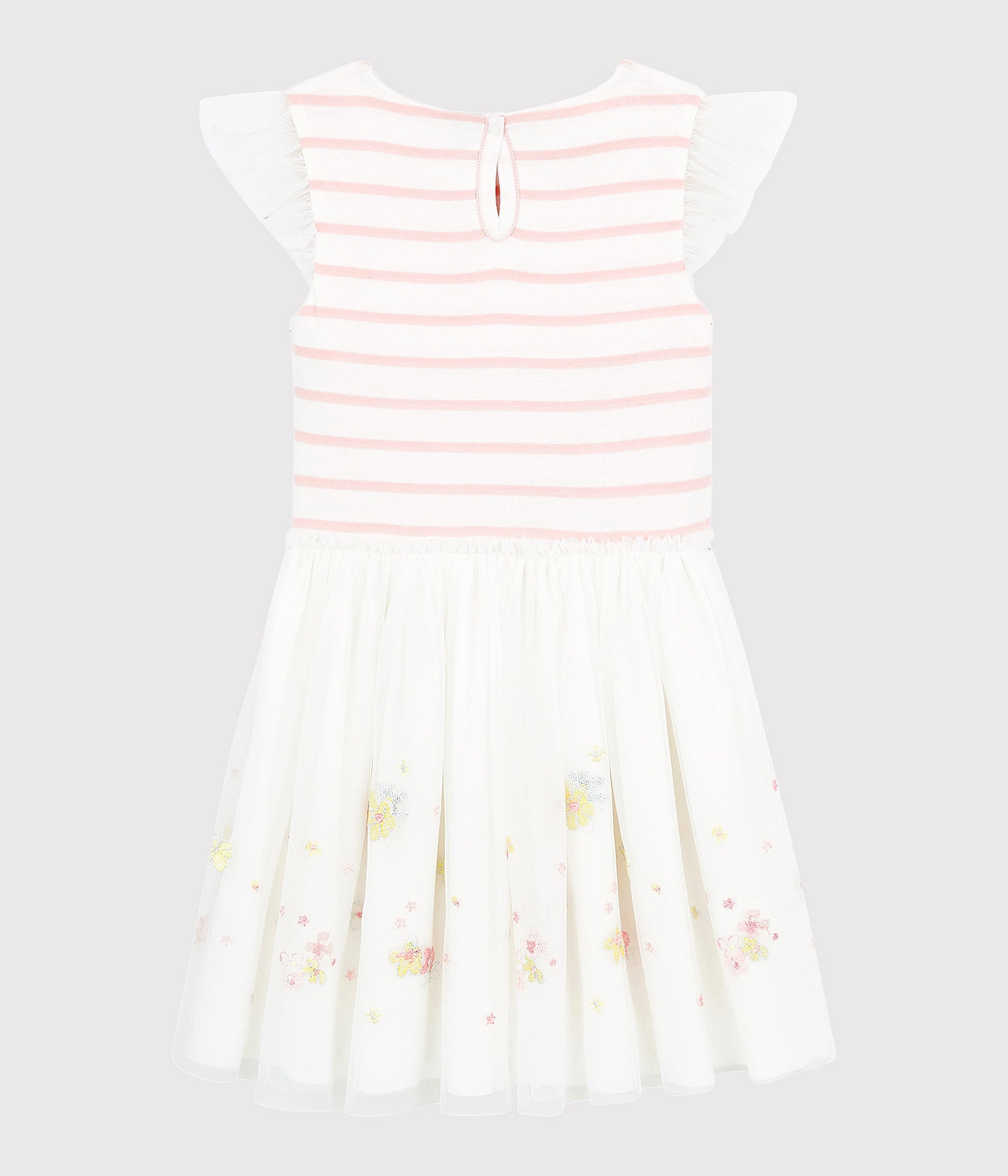 女童粉色条纹棉&薄纱连衣裙