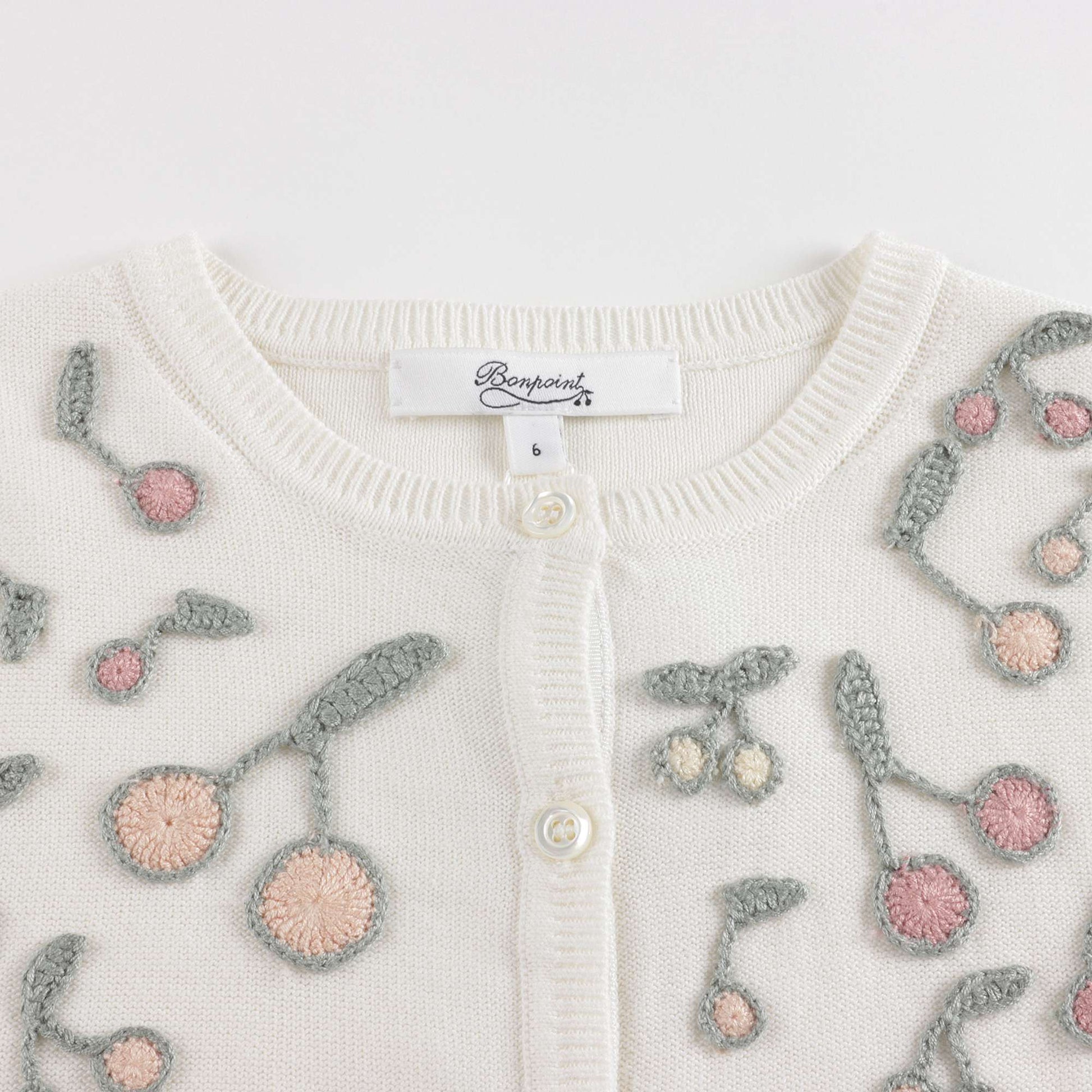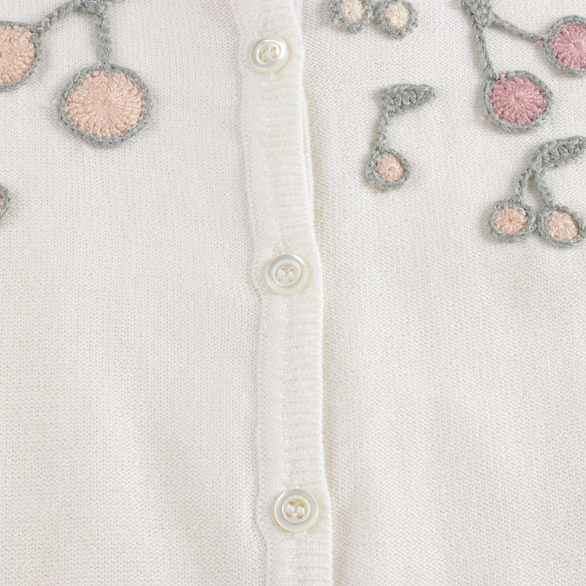 Girls White Cherry Cotton Cardigan