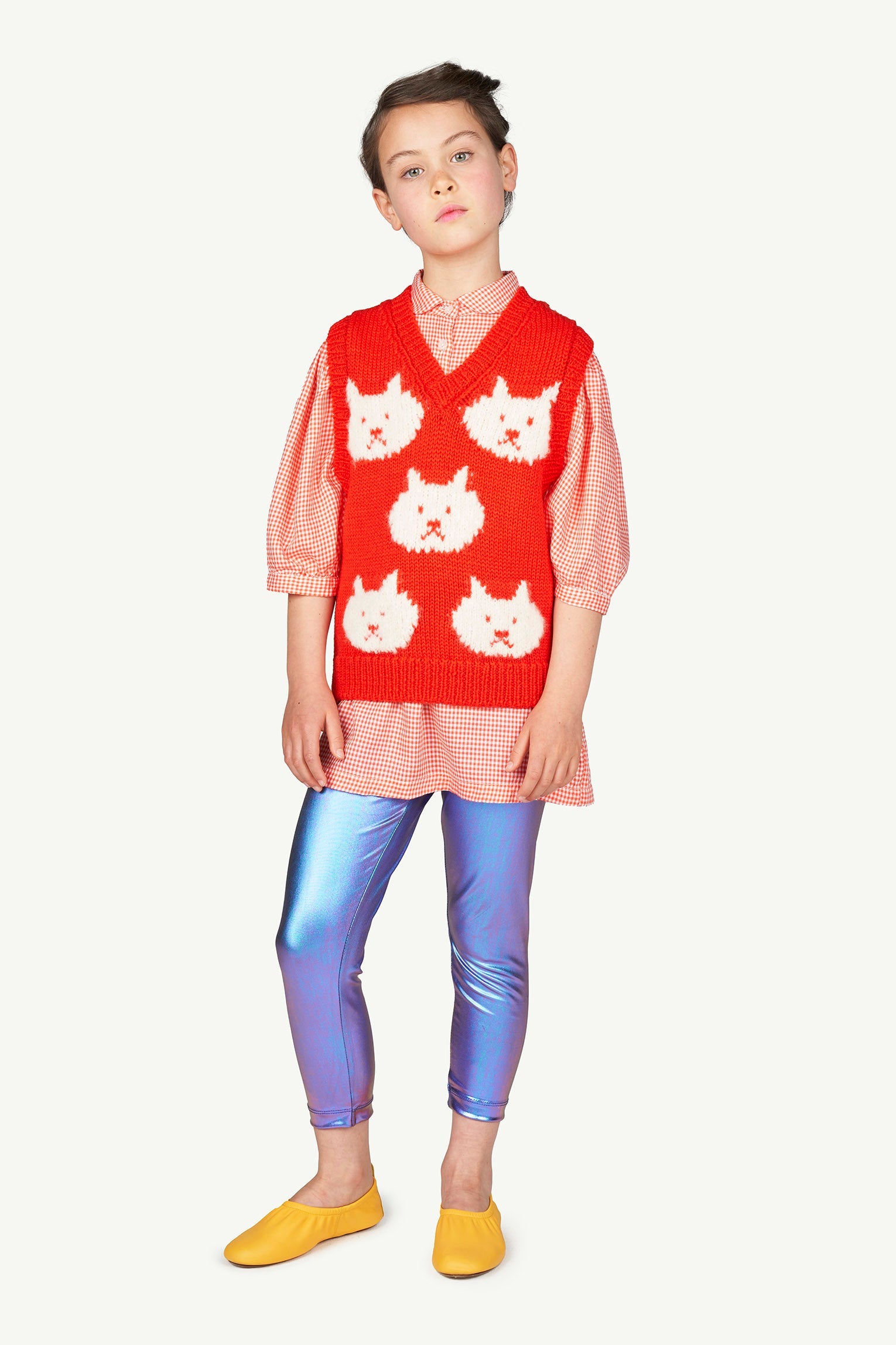 女童红色小格子连衣裙