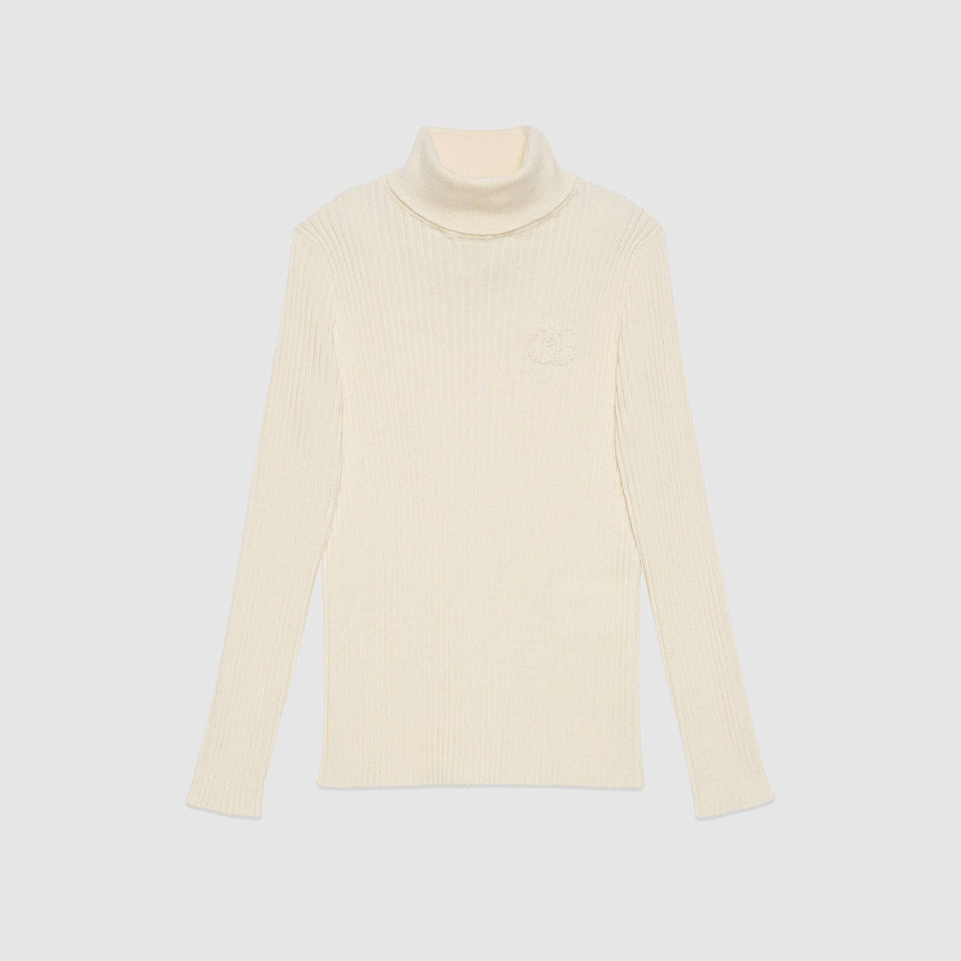 女童象牙白GG Logo羊毛毛衣