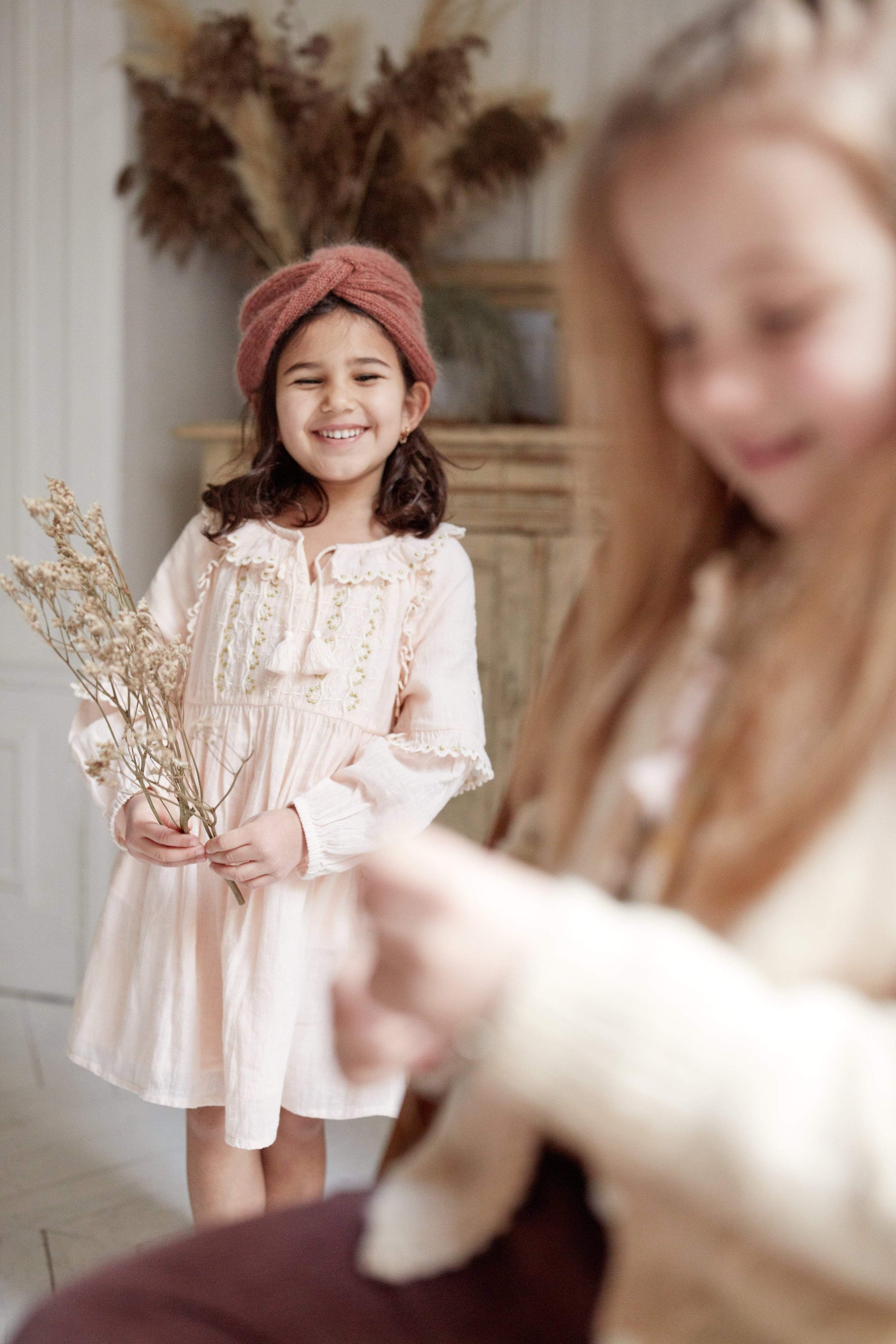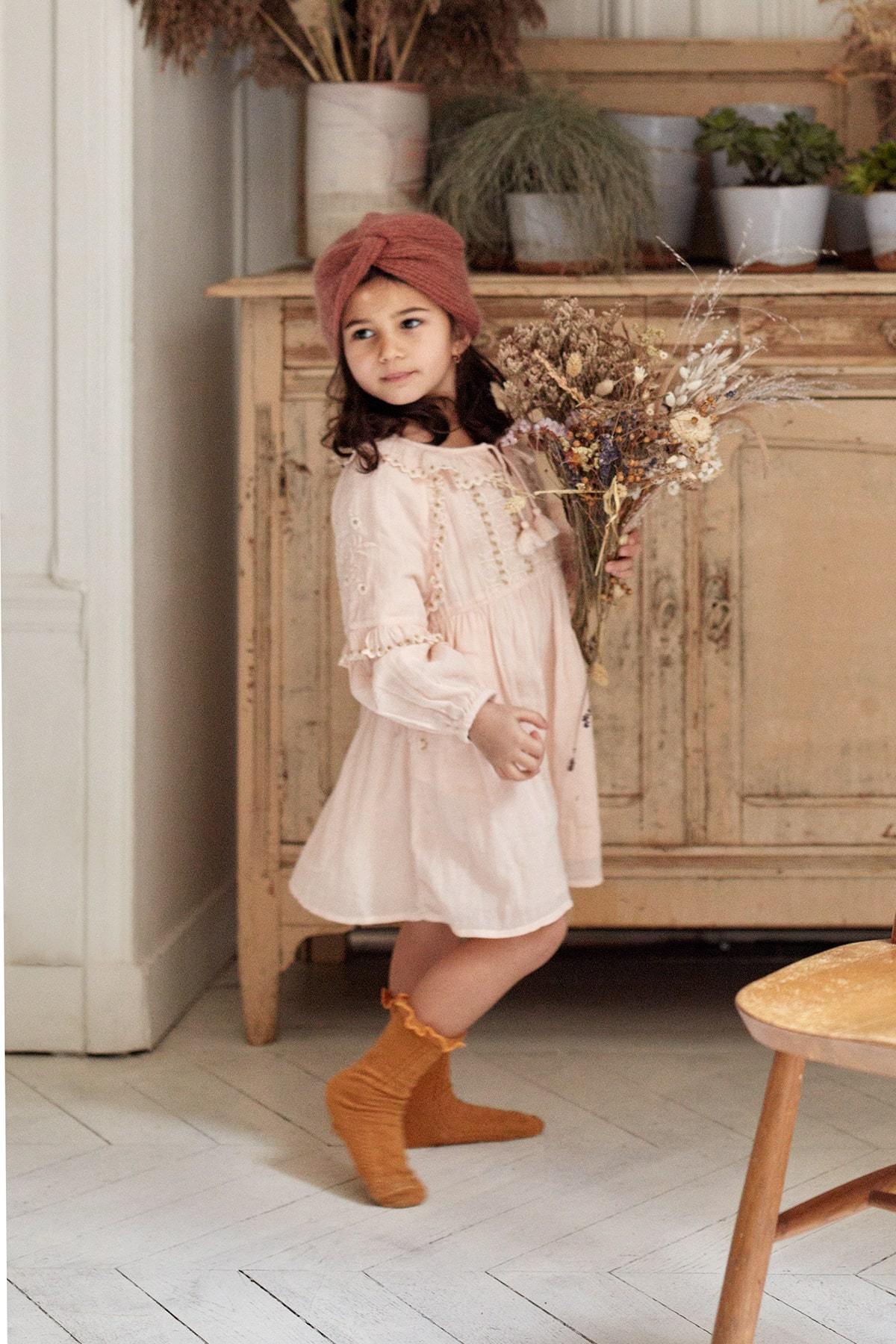 女童粉色棉连衣裙