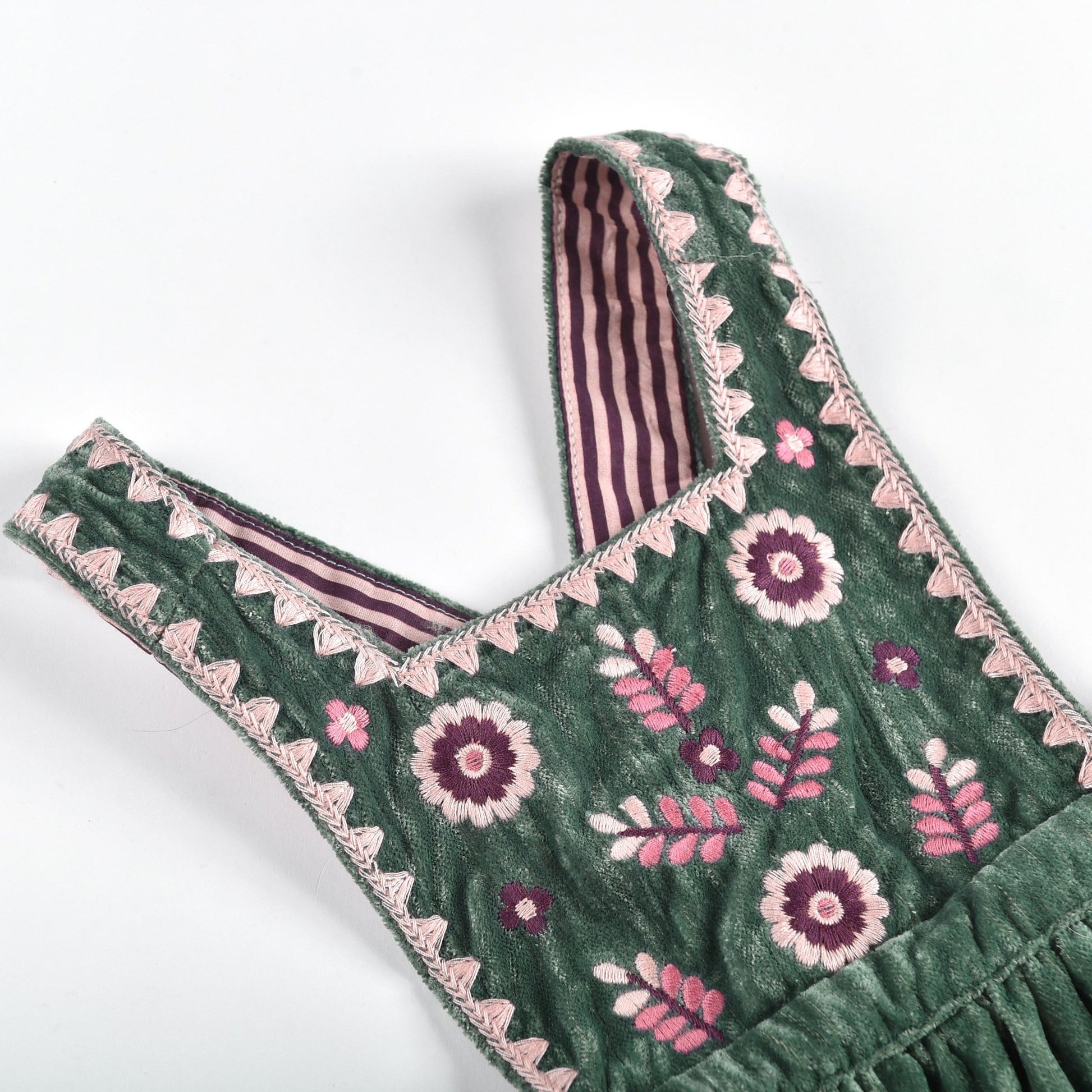 女童绿色刺绣连衣裙