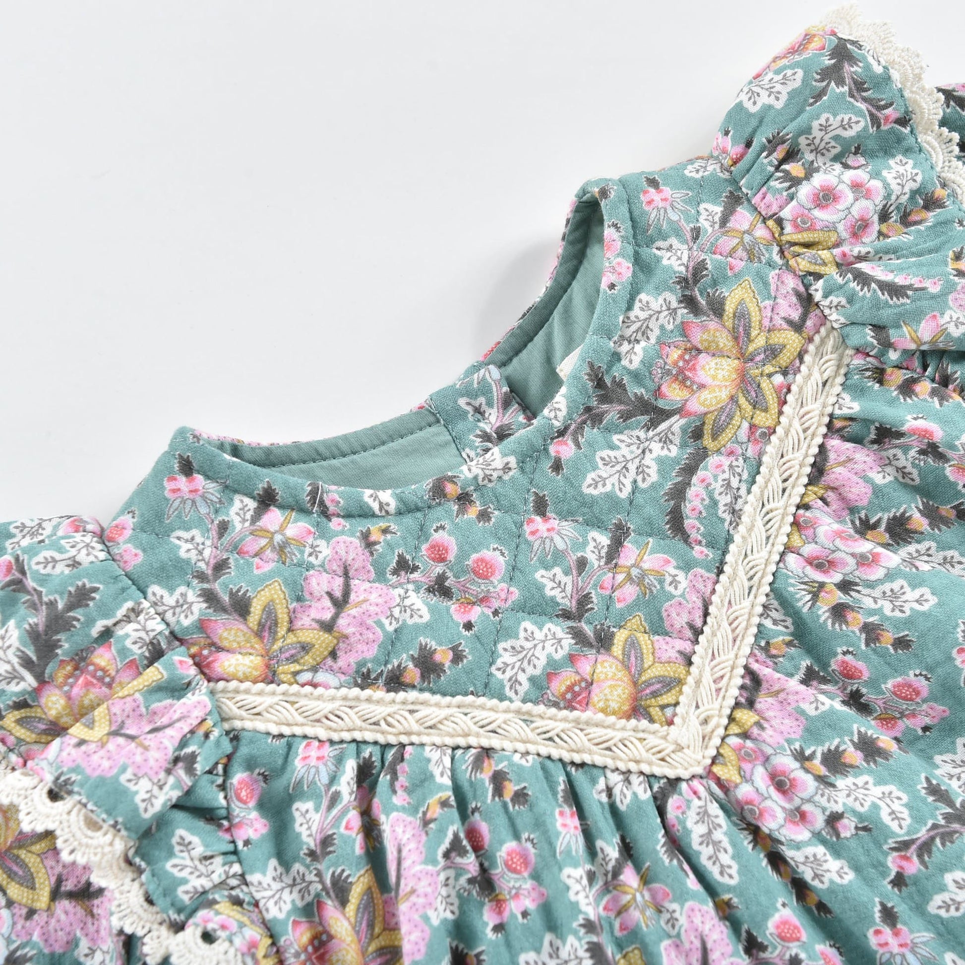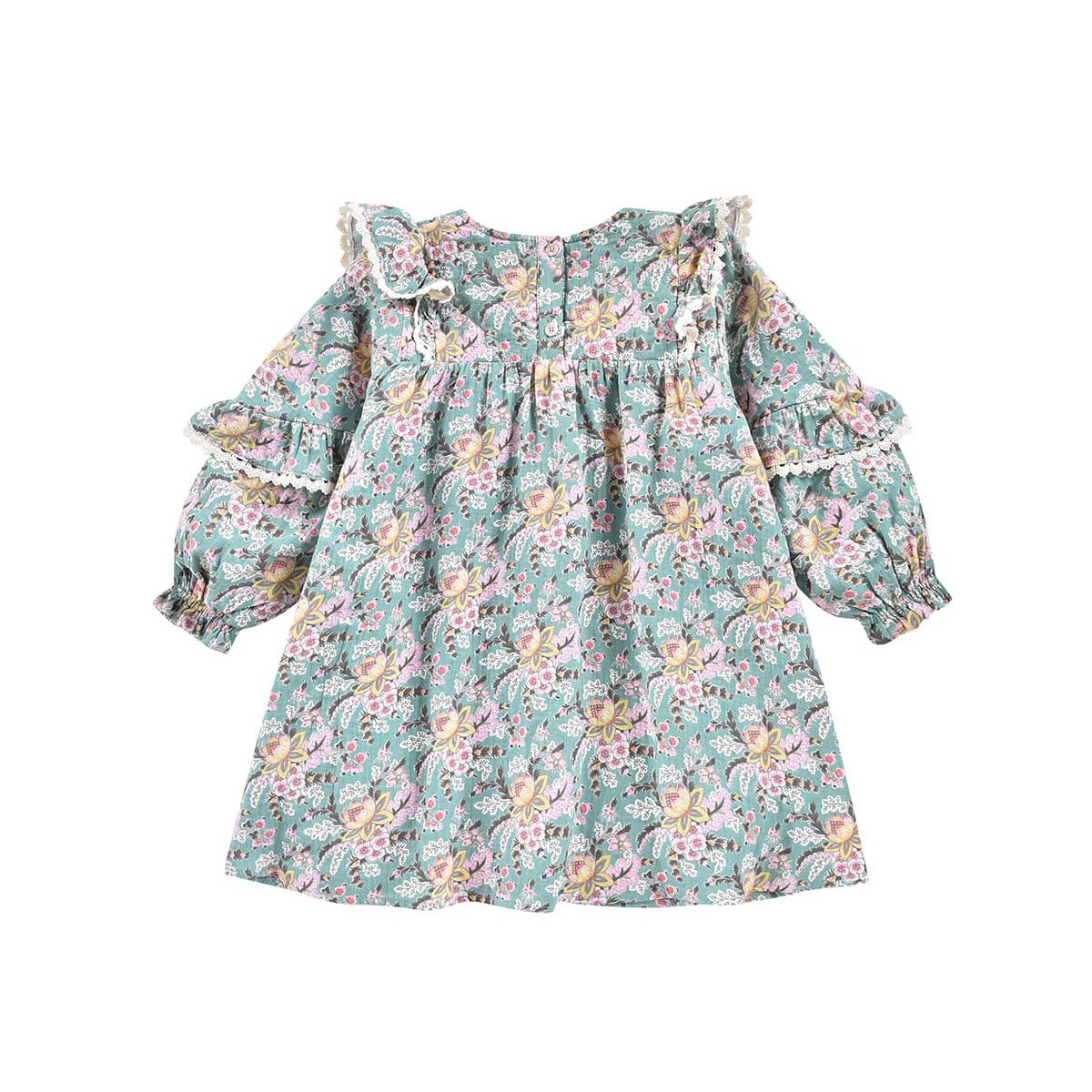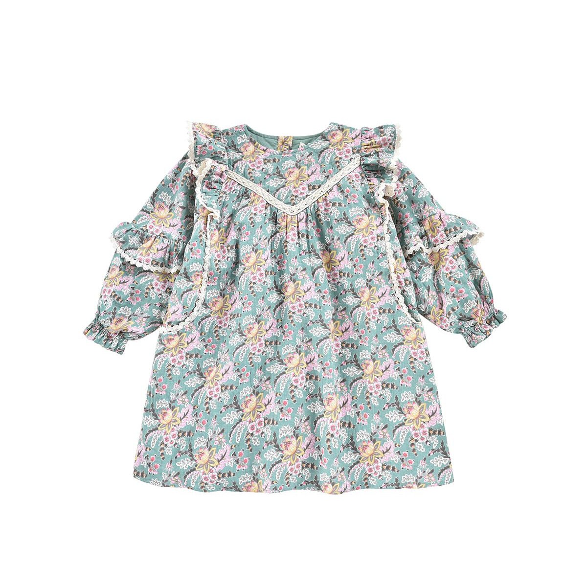 女童蓝色花朵印花棉连衣裙