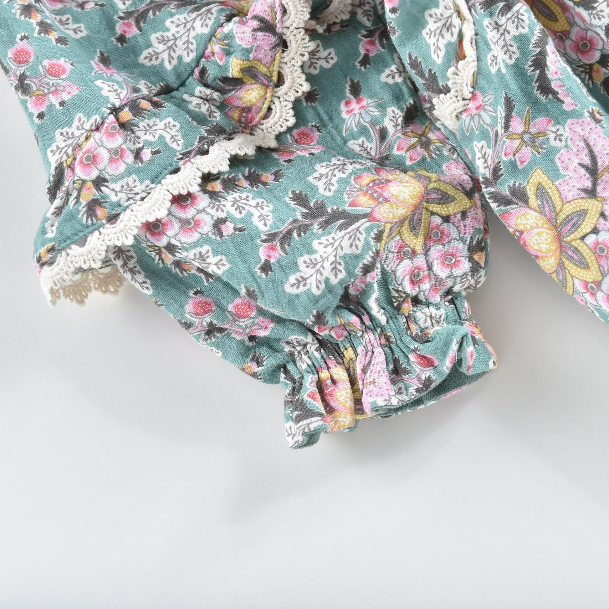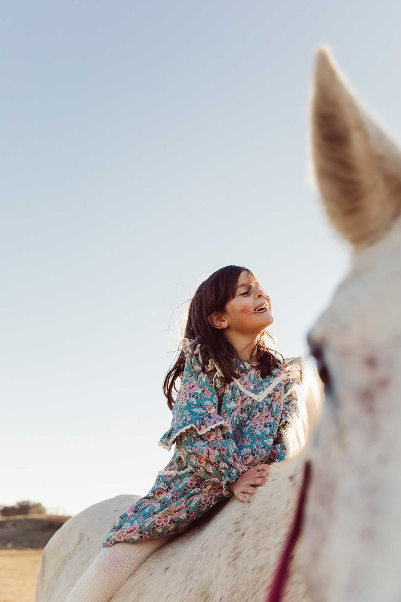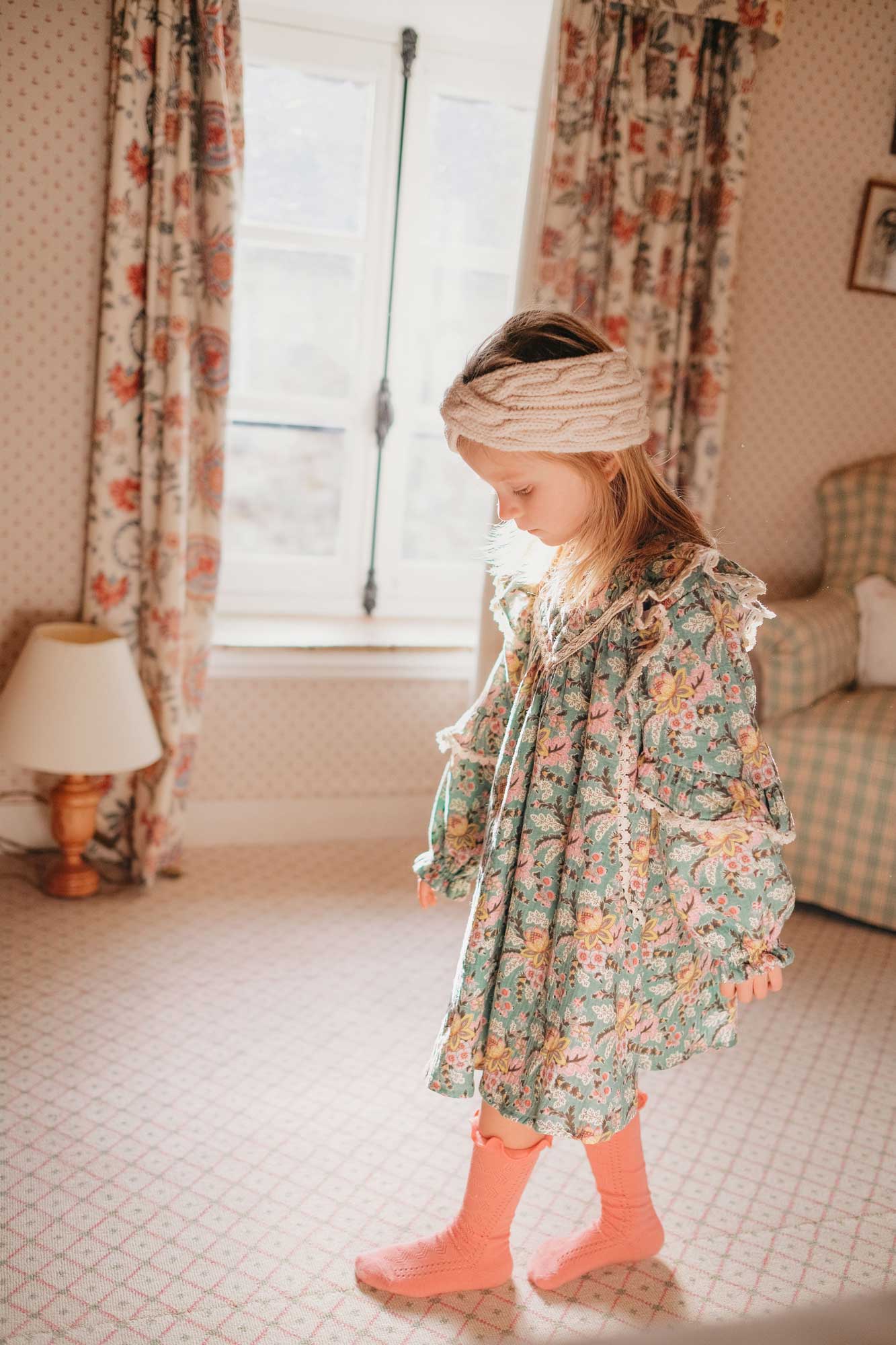 女童蓝色花朵印花棉连衣裙