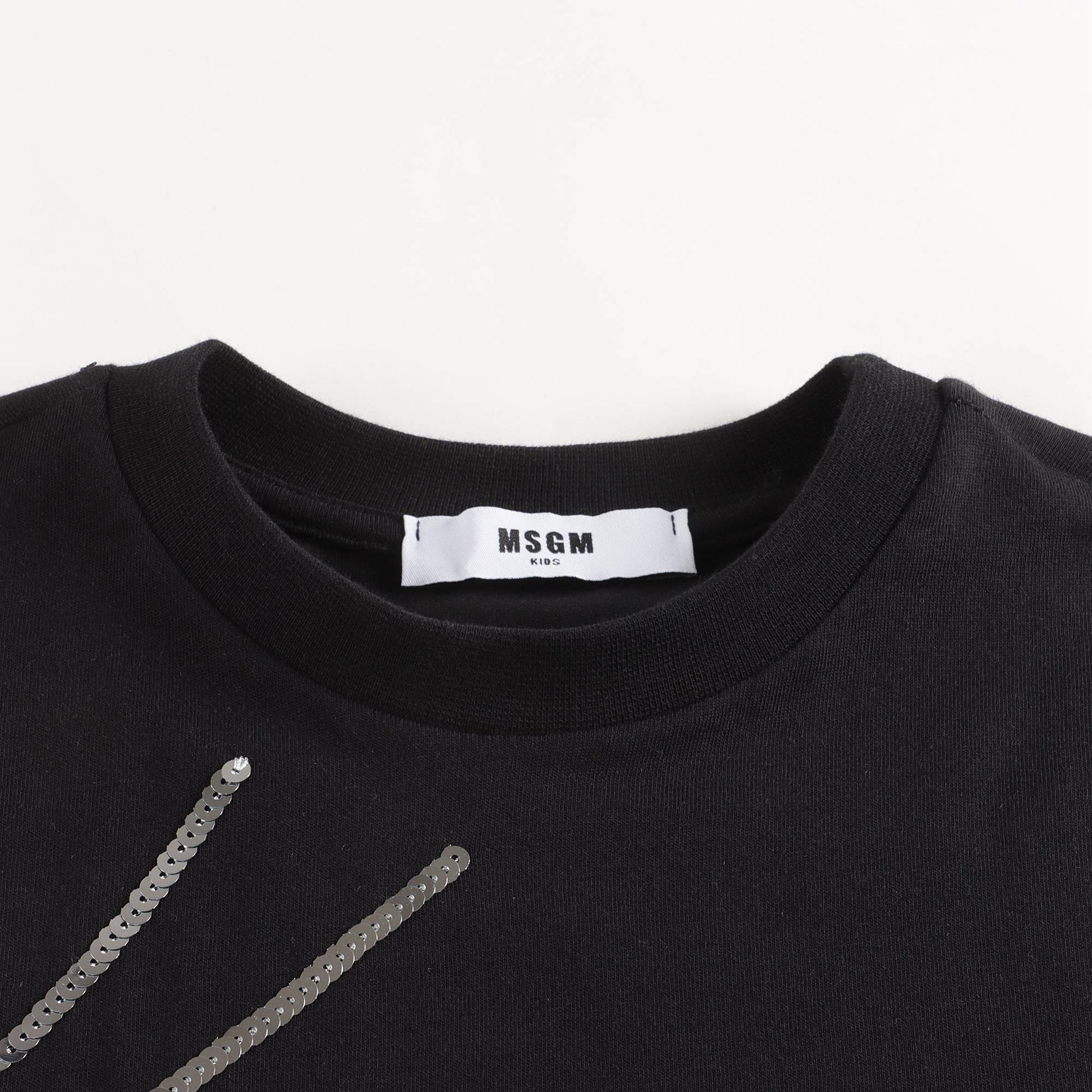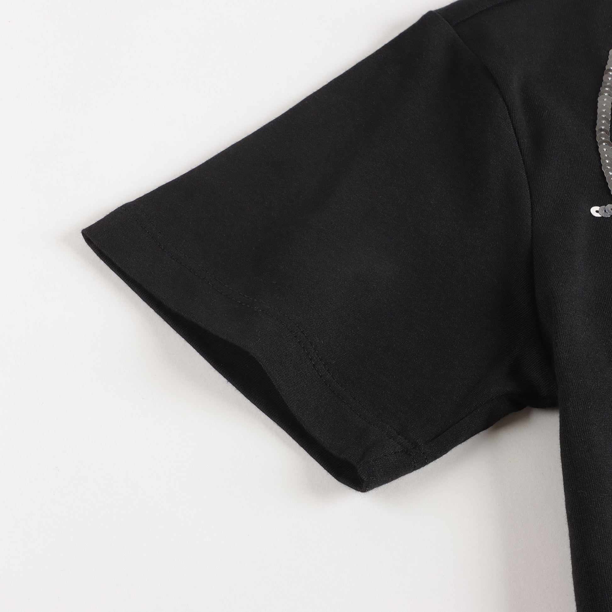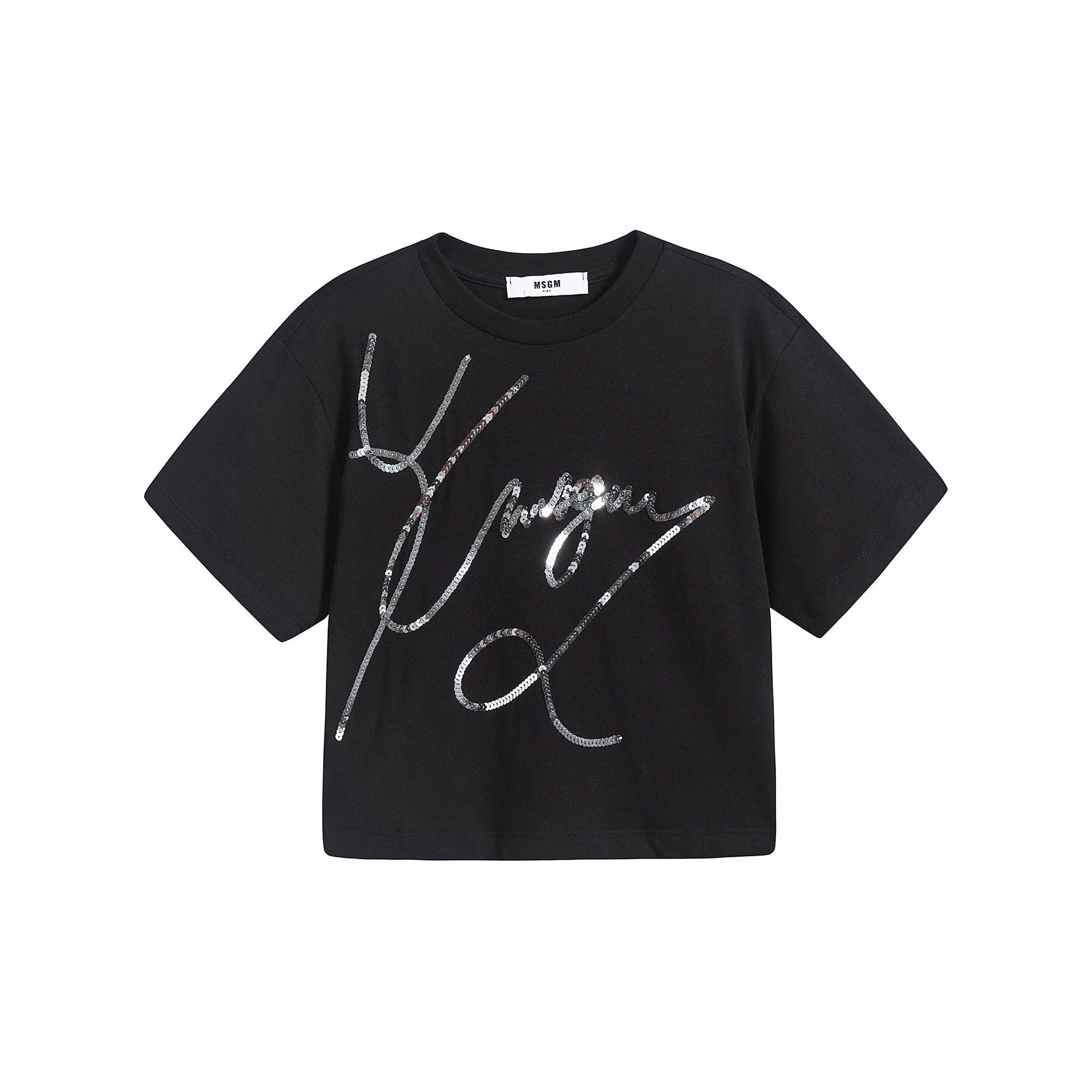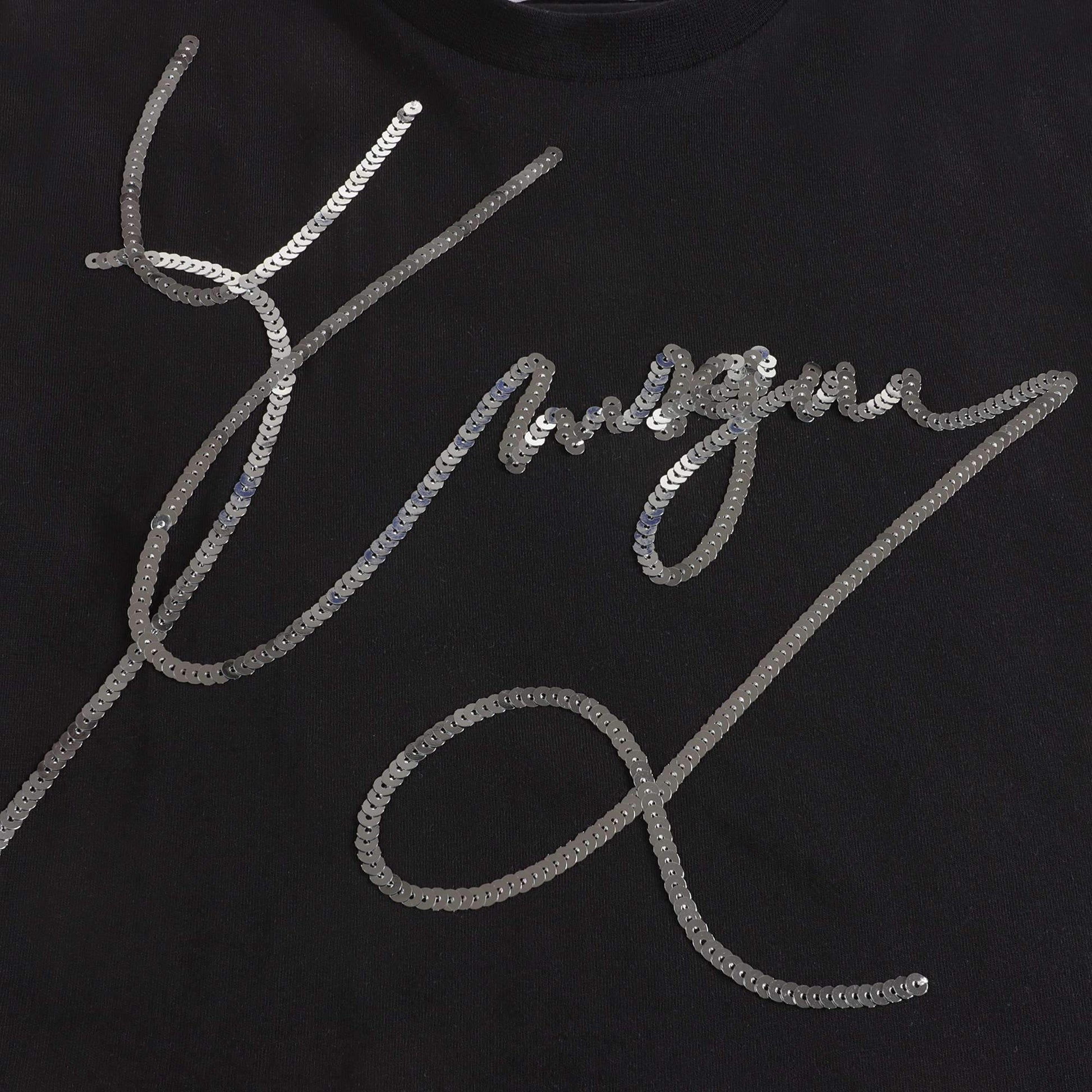 女童黑色闪光Logo棉T恤