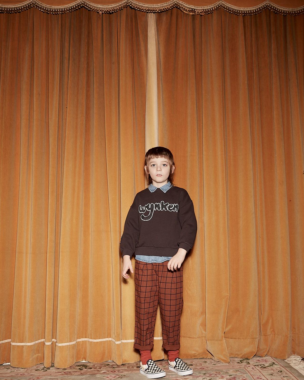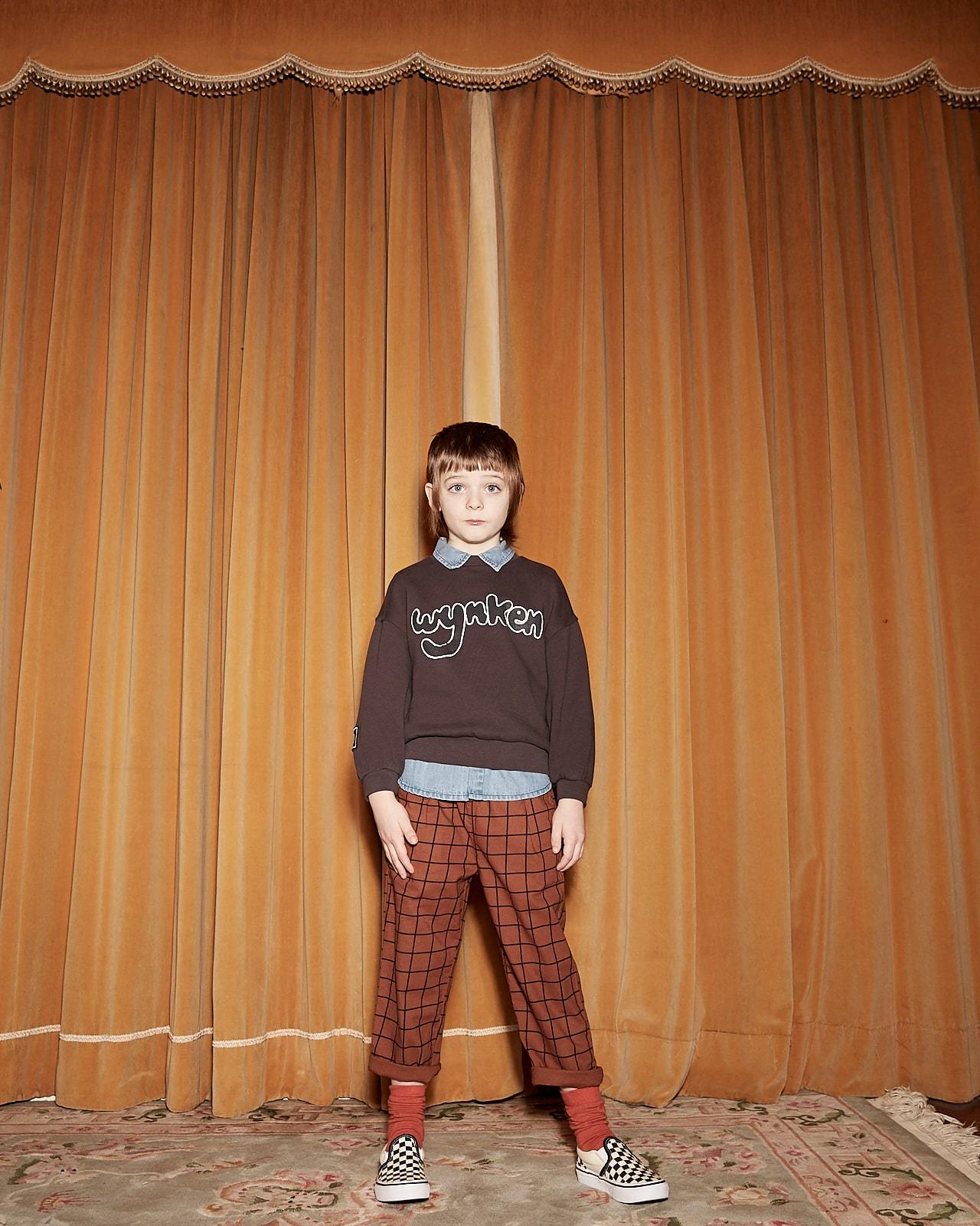 儿童棕色格子长裤