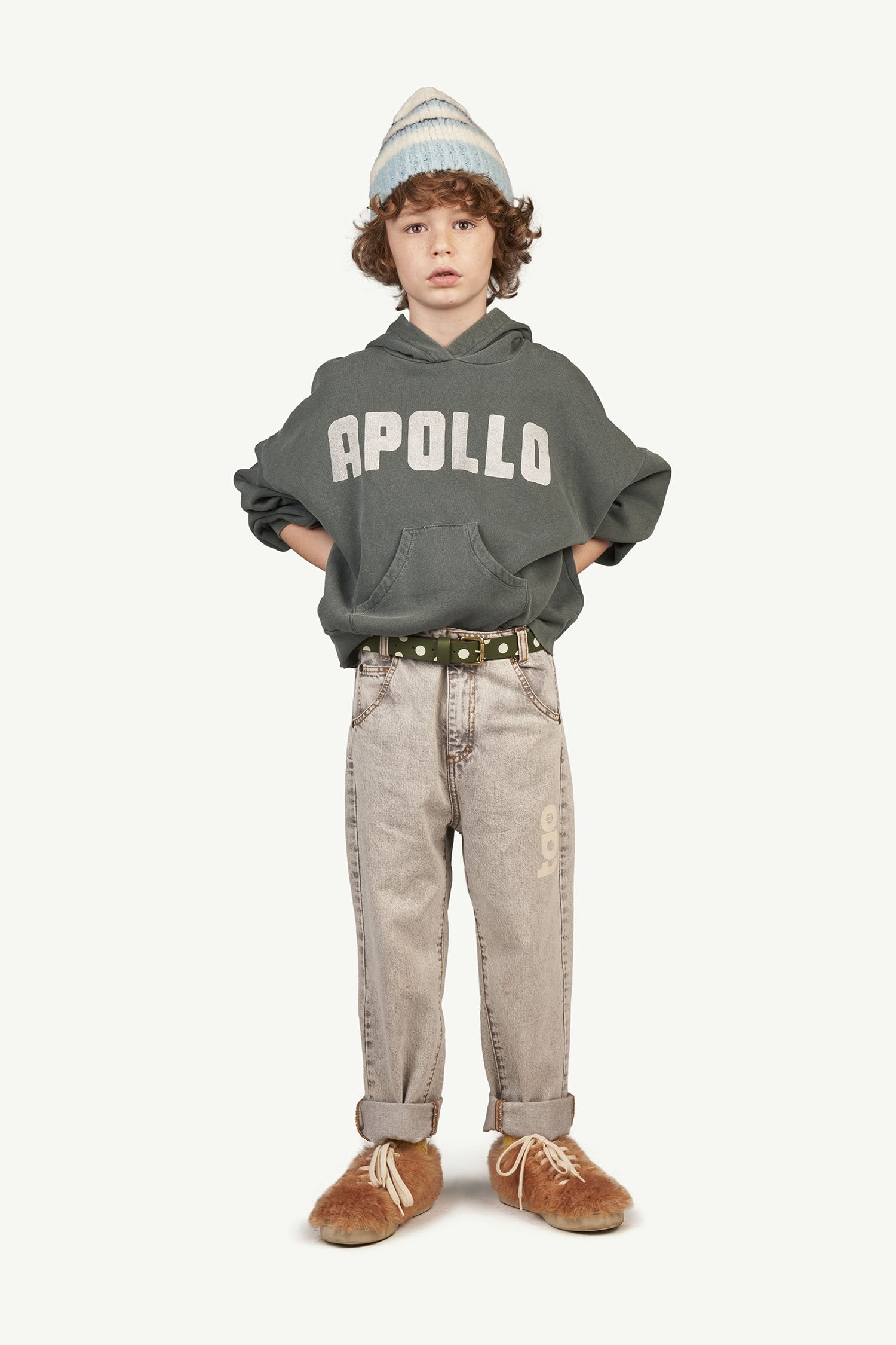 儿童灰色Logo牛仔长裤