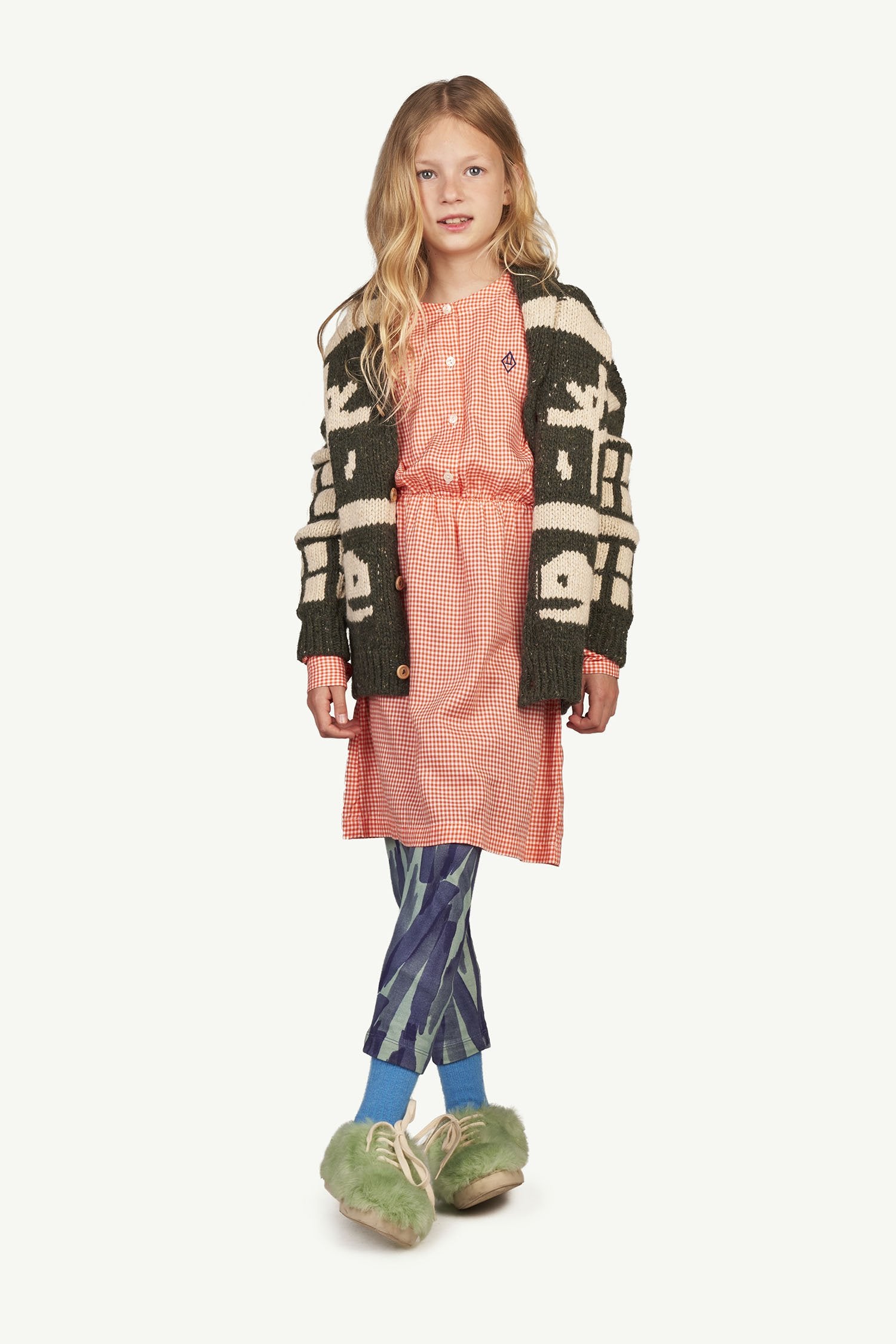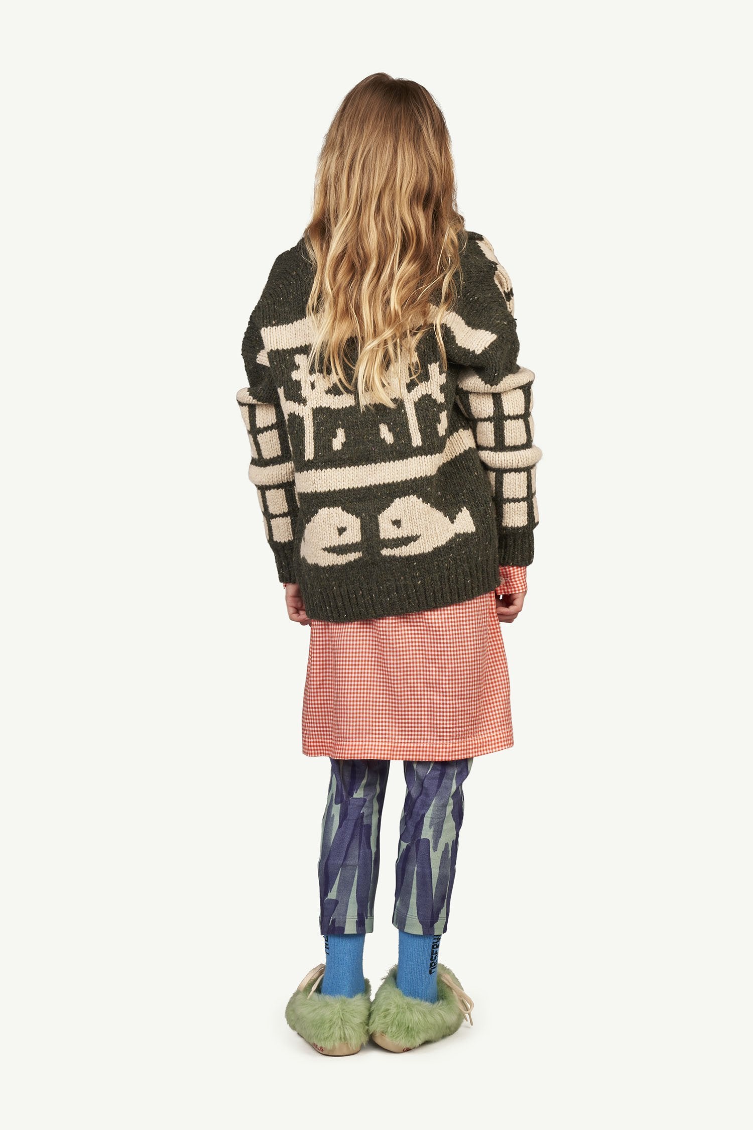 女童绿色图案羊毛开衫