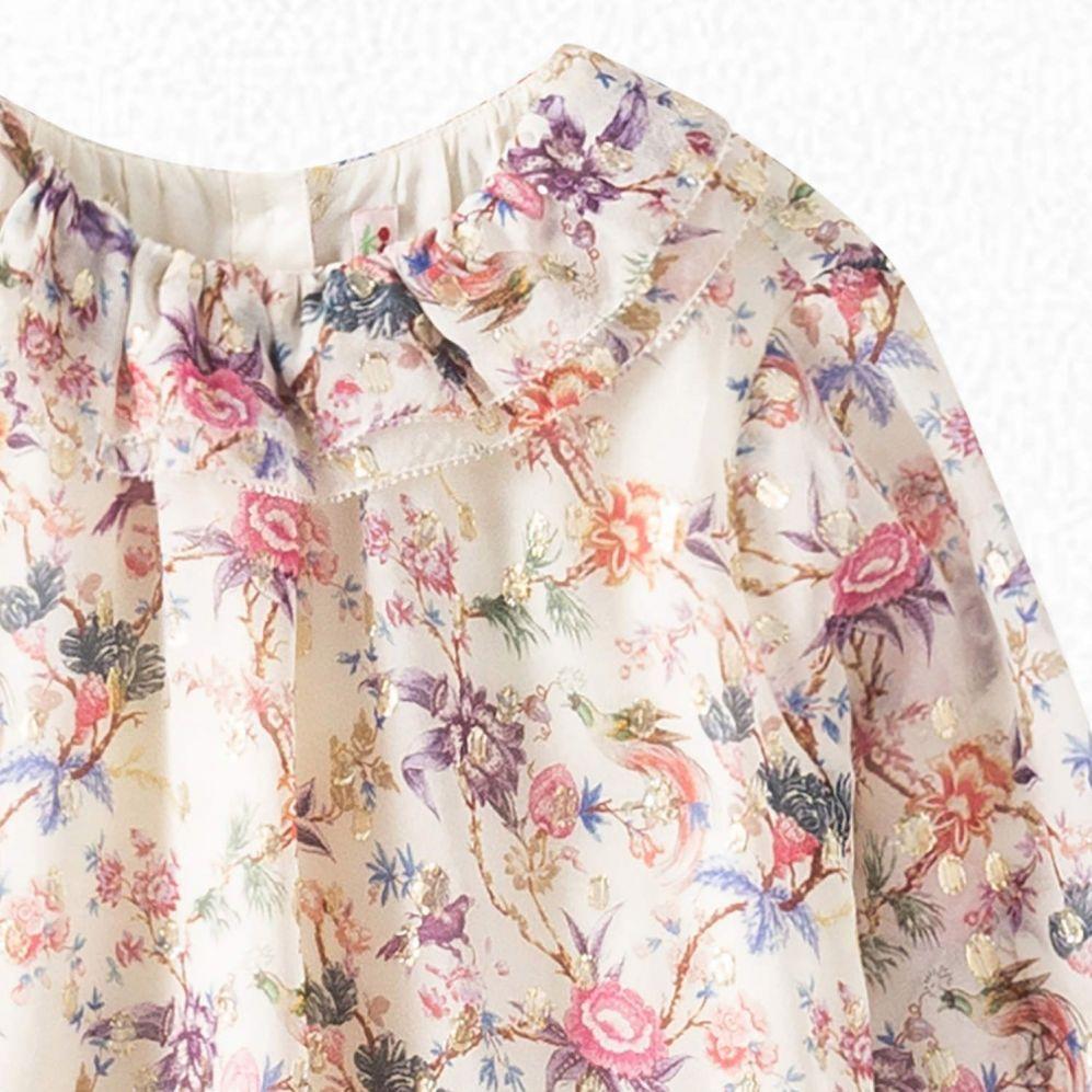 女童米色花朵印花真丝衬衫