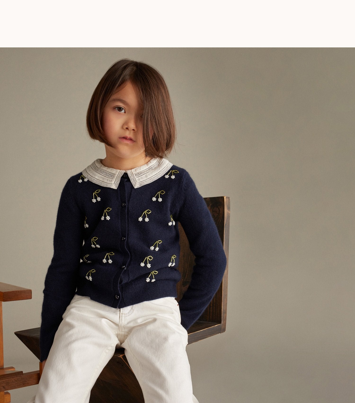 女童藏青色Logo羊绒开衫