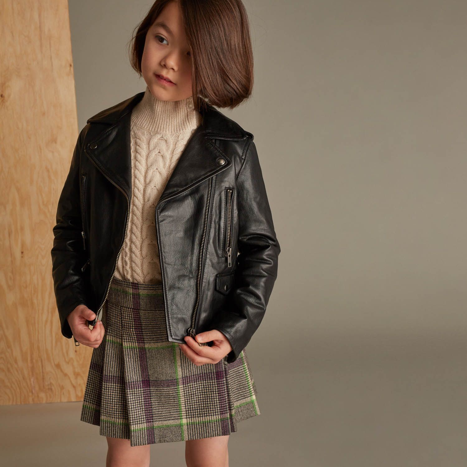 女童黑色山羊皮夹克