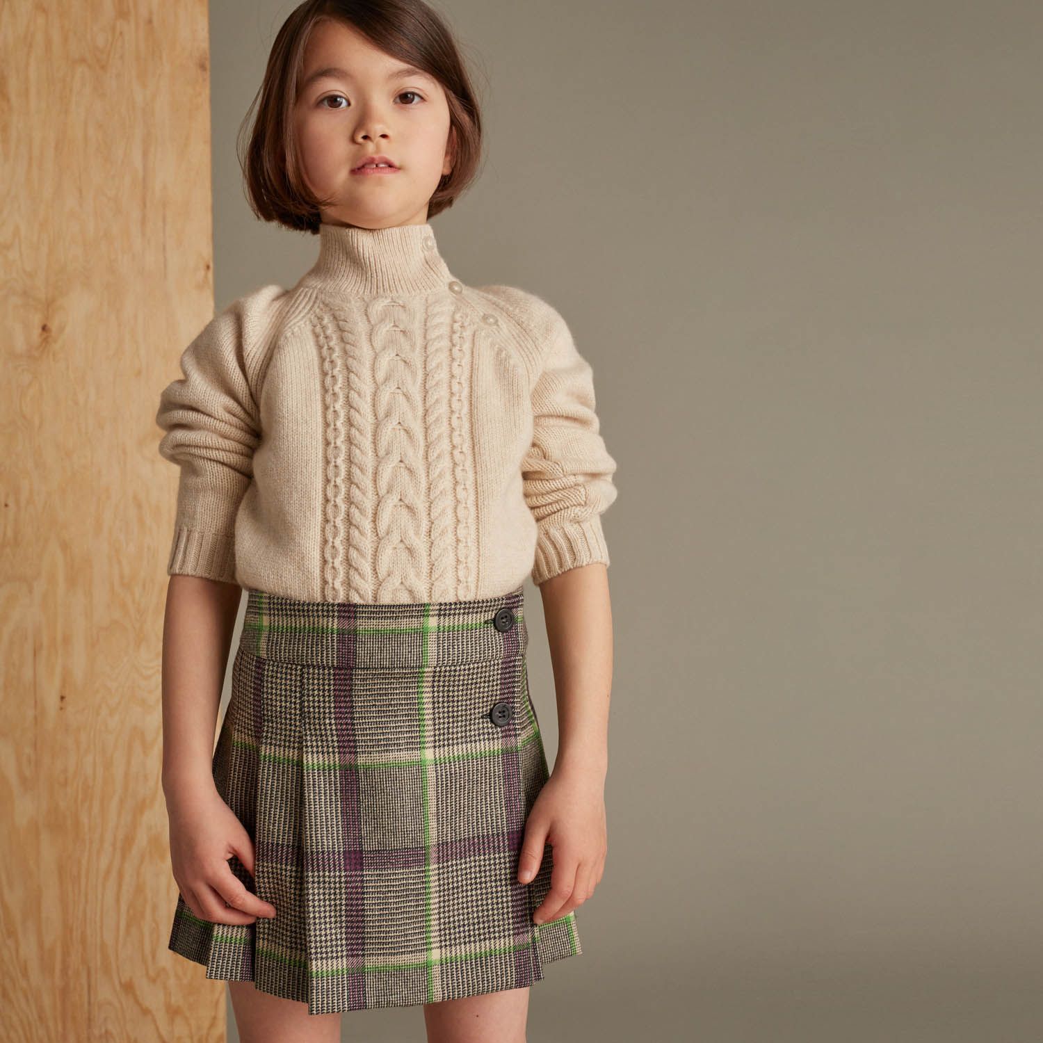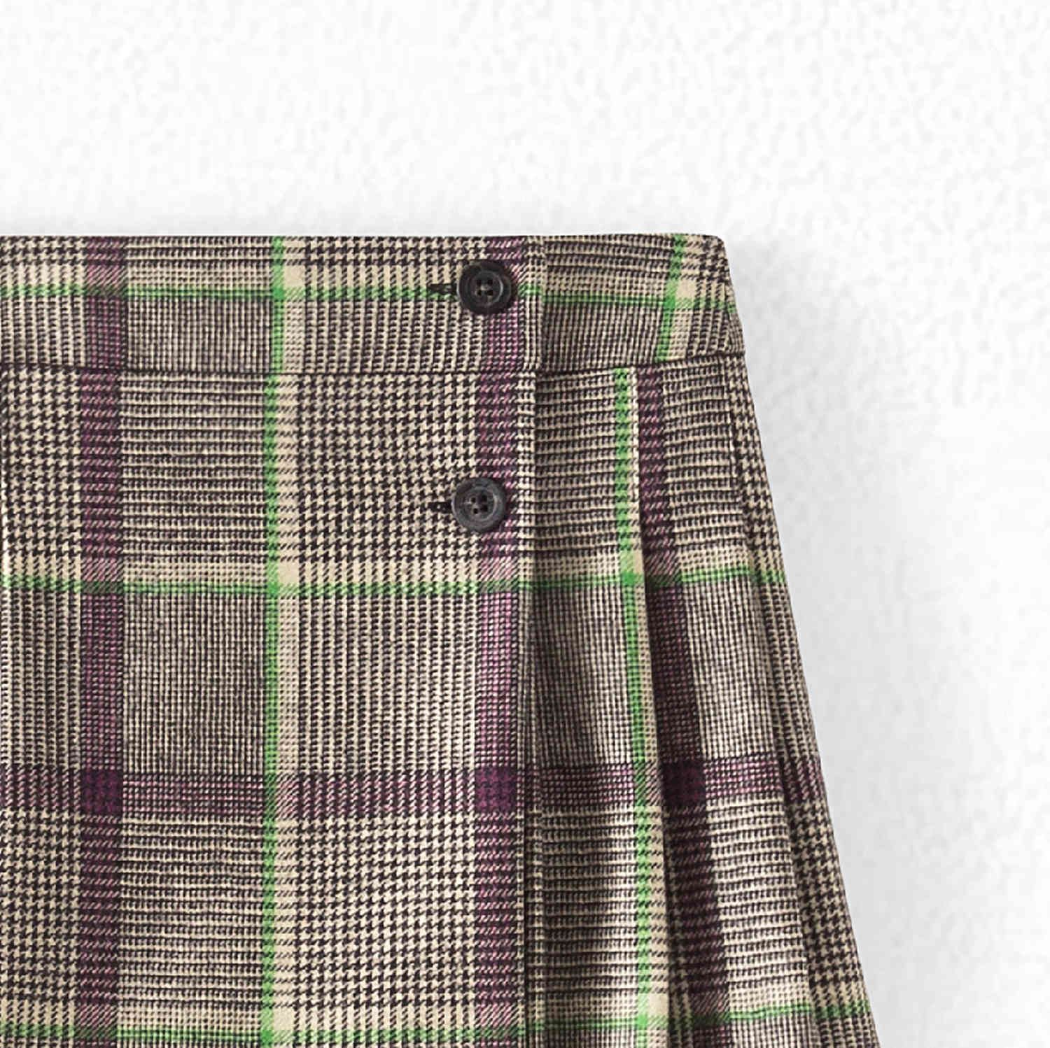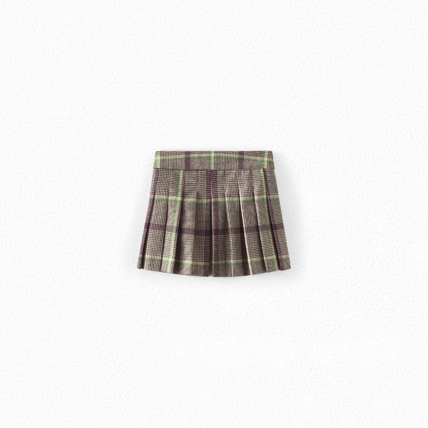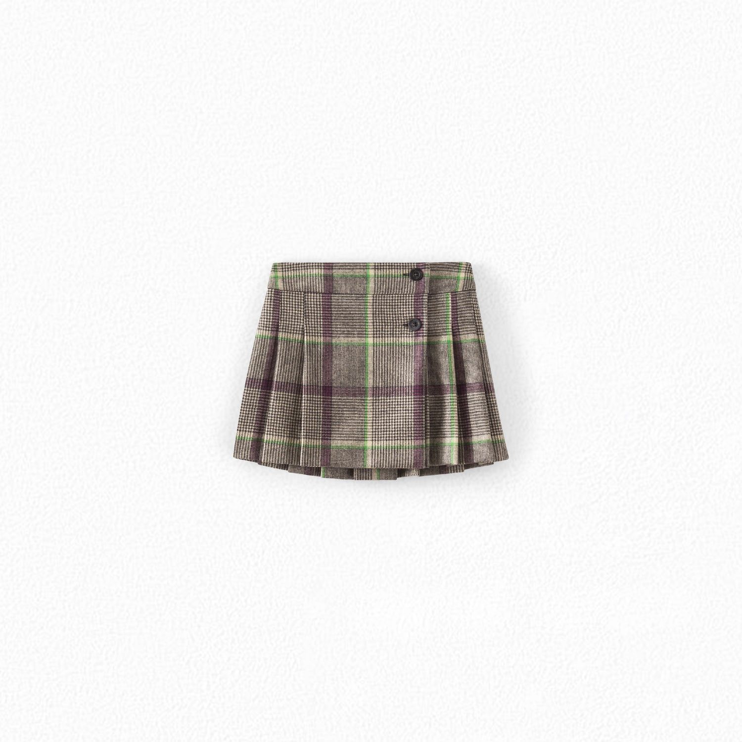 女童棕色格子羊毛短裙