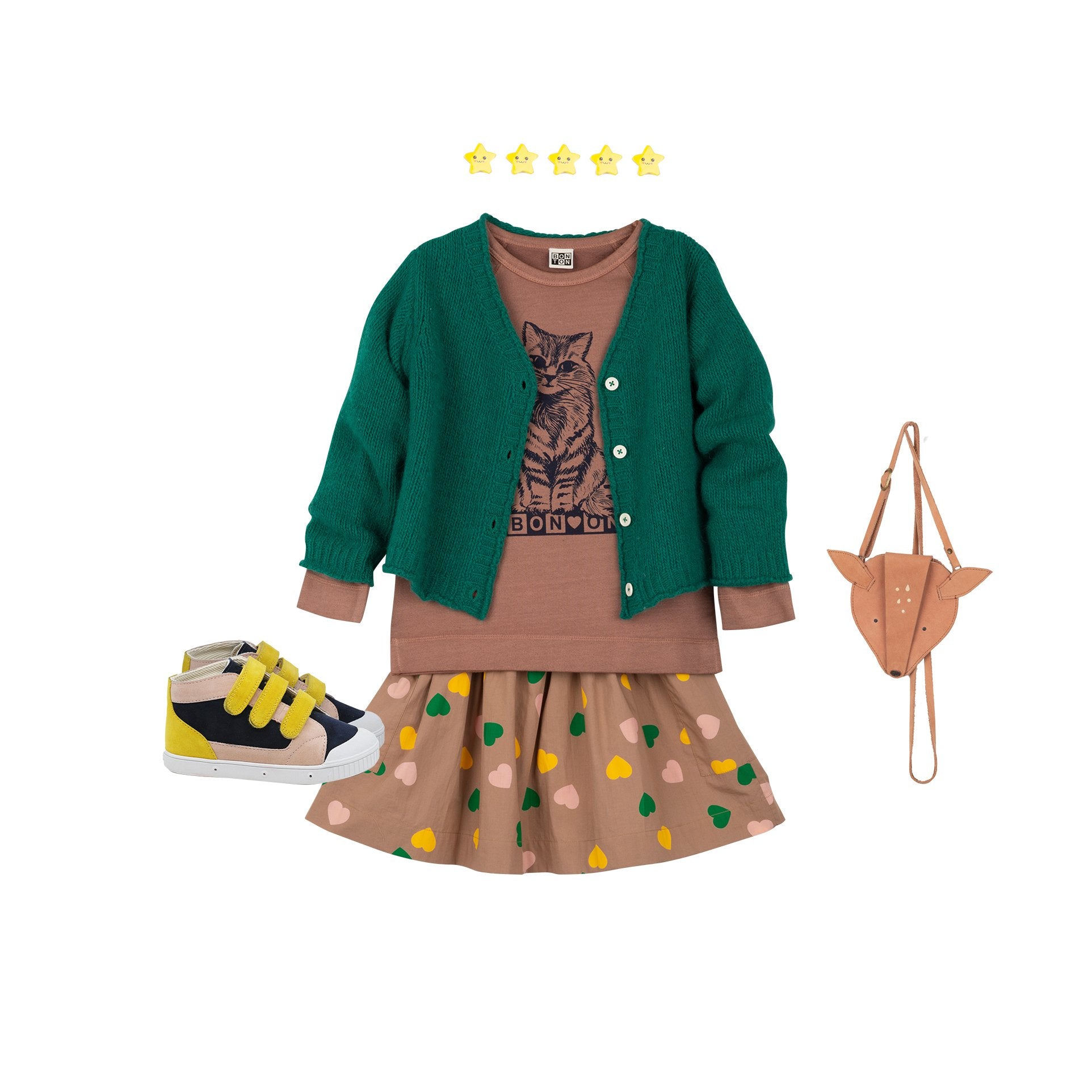 女童棕色印花棉T恤