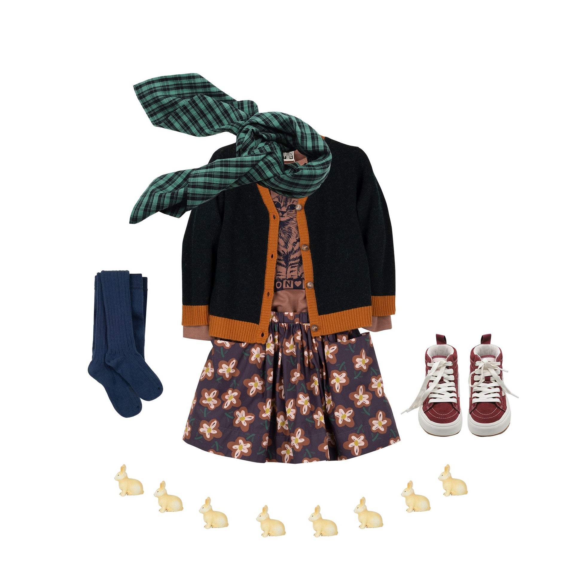 增加 女童棕色印花棉T恤 的数量