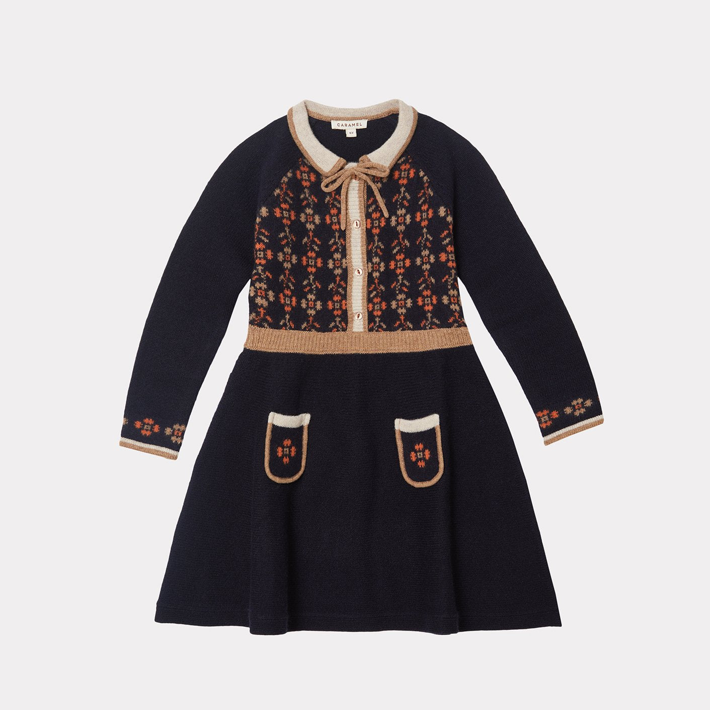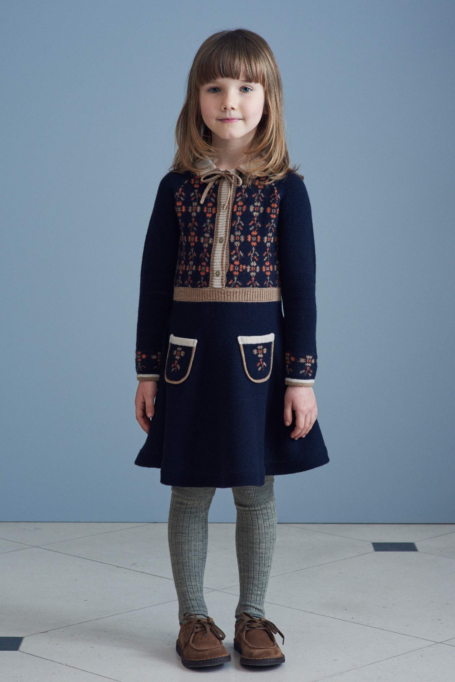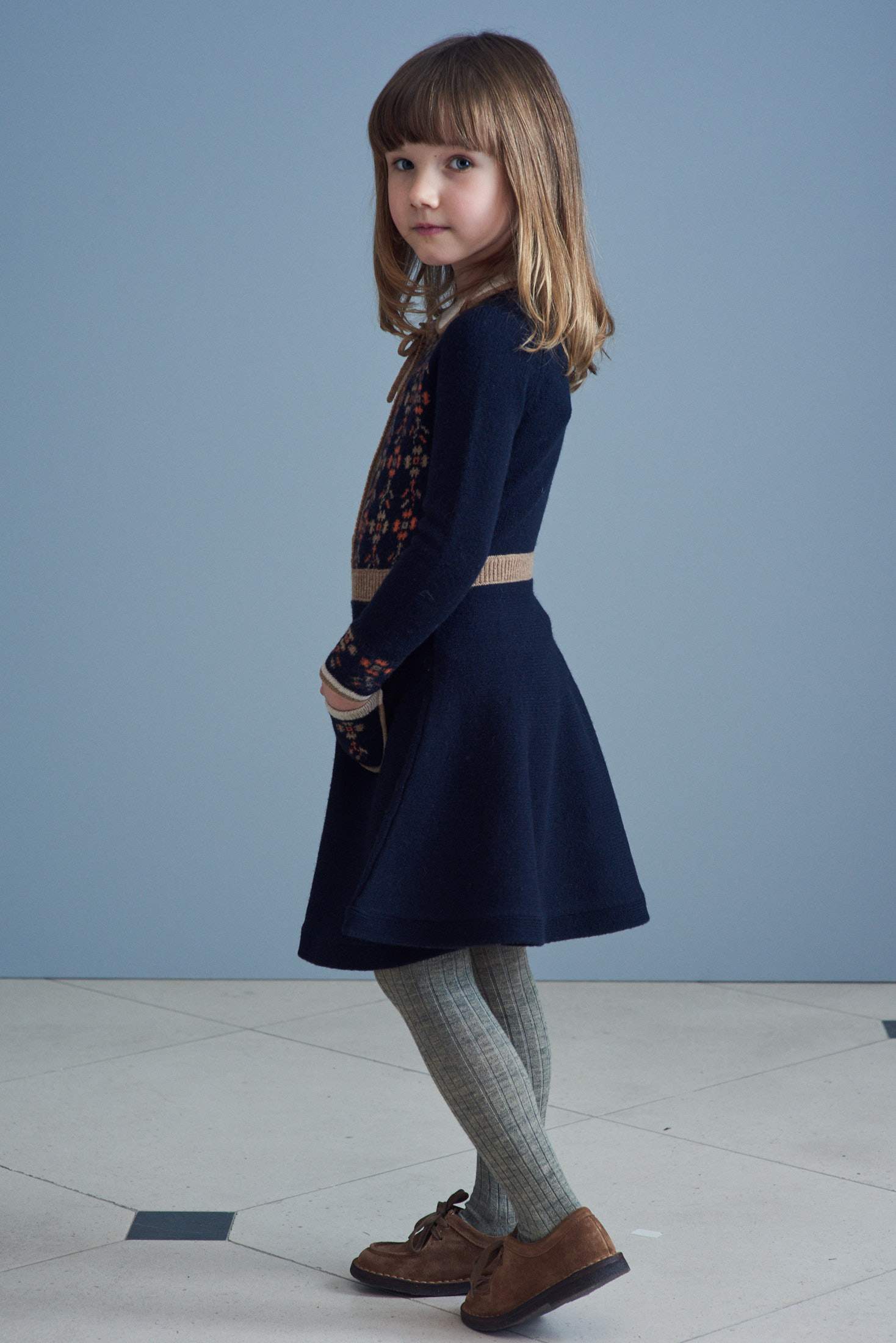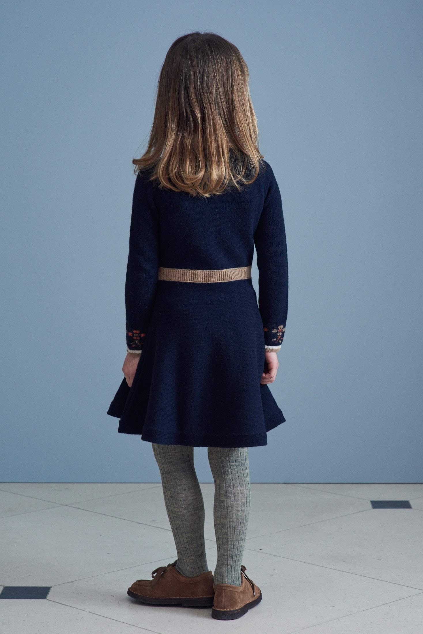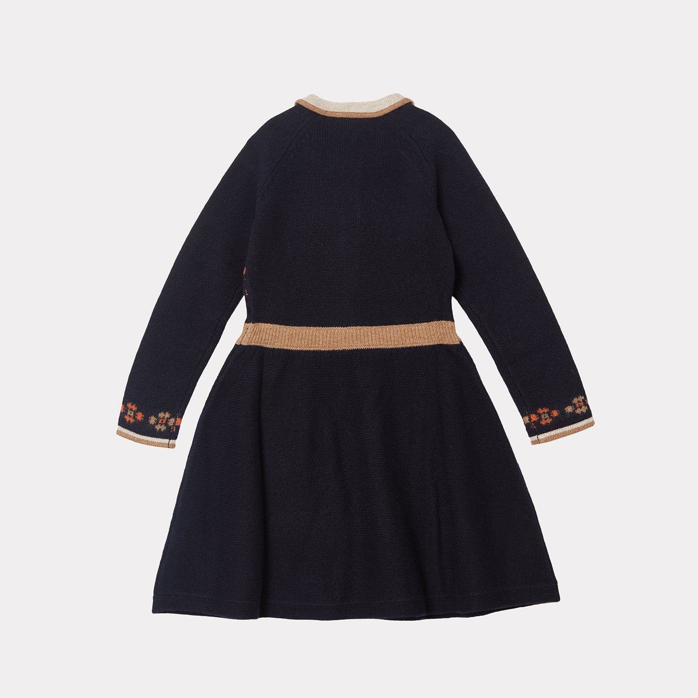 女童藏青色刺绣羊毛连衣裙