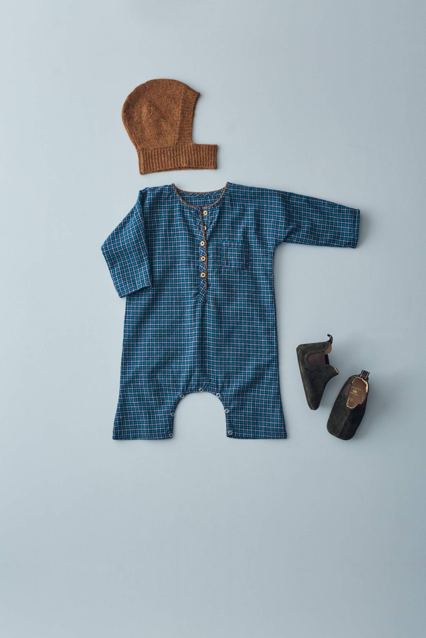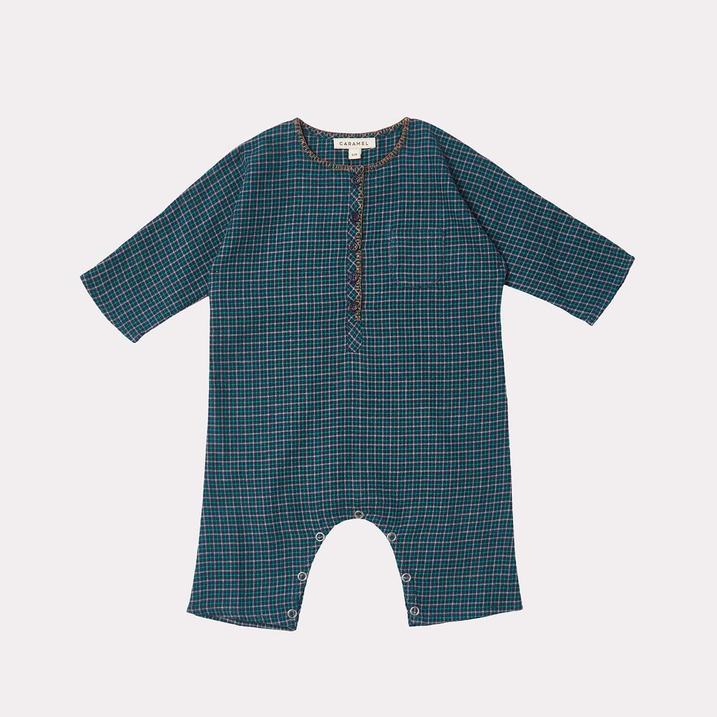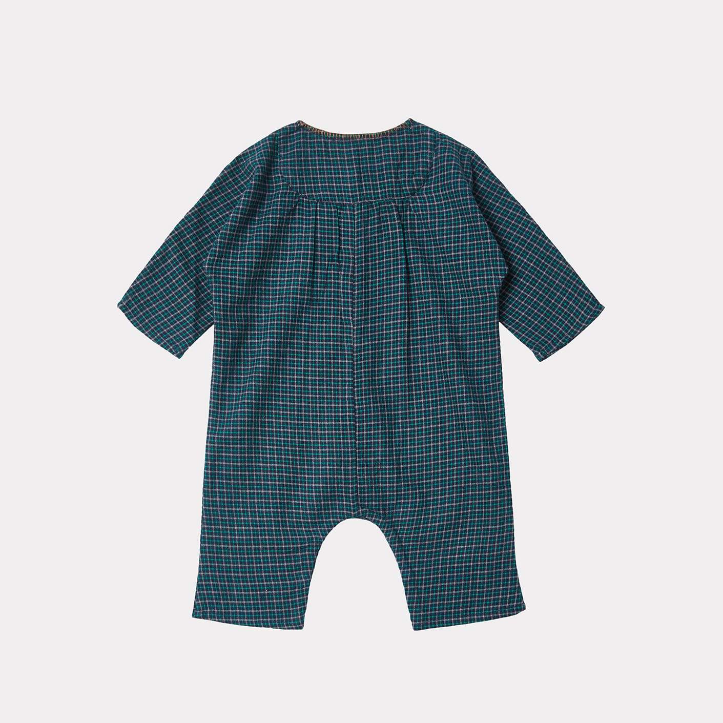 婴儿蓝色格子棉连体衣