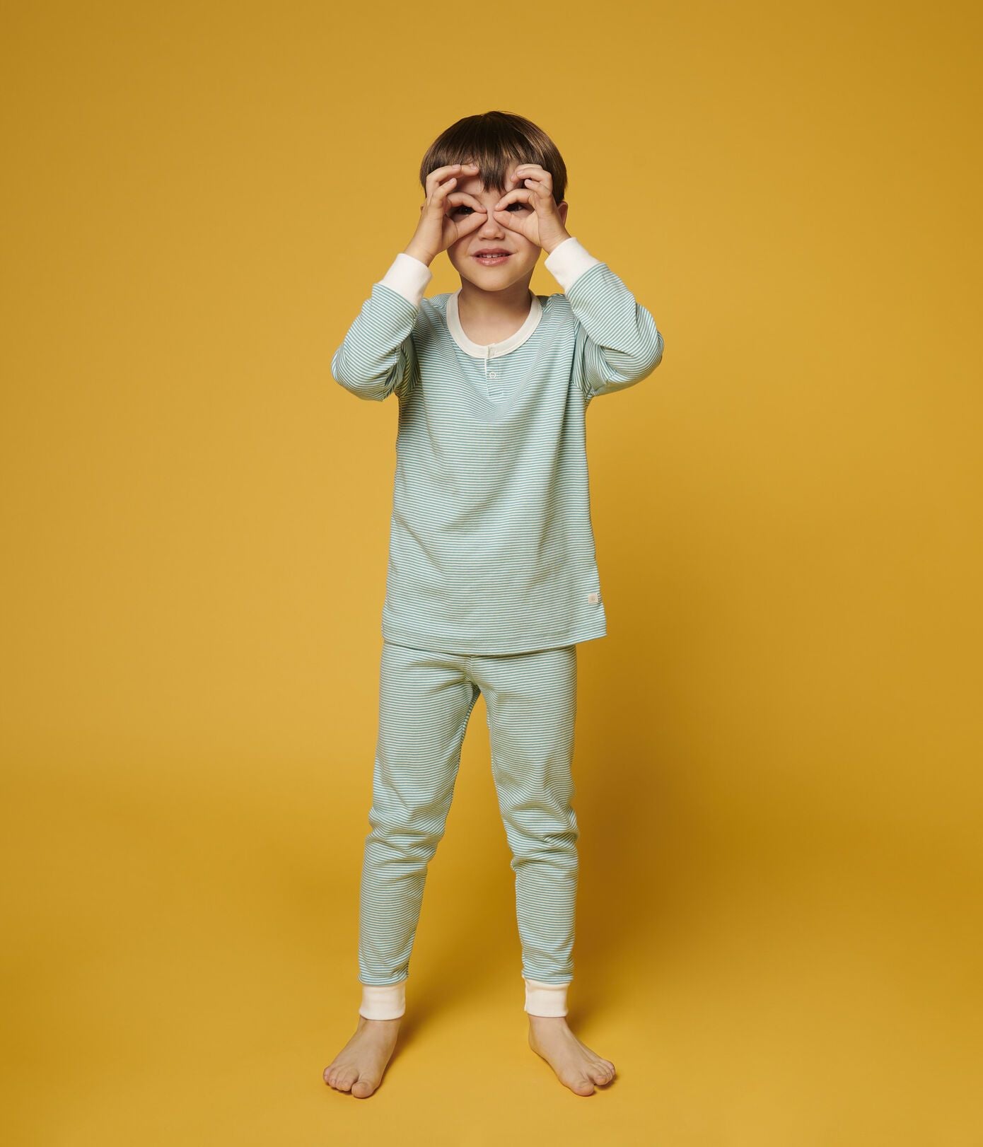 男童绿色条纹棉睡衣套装