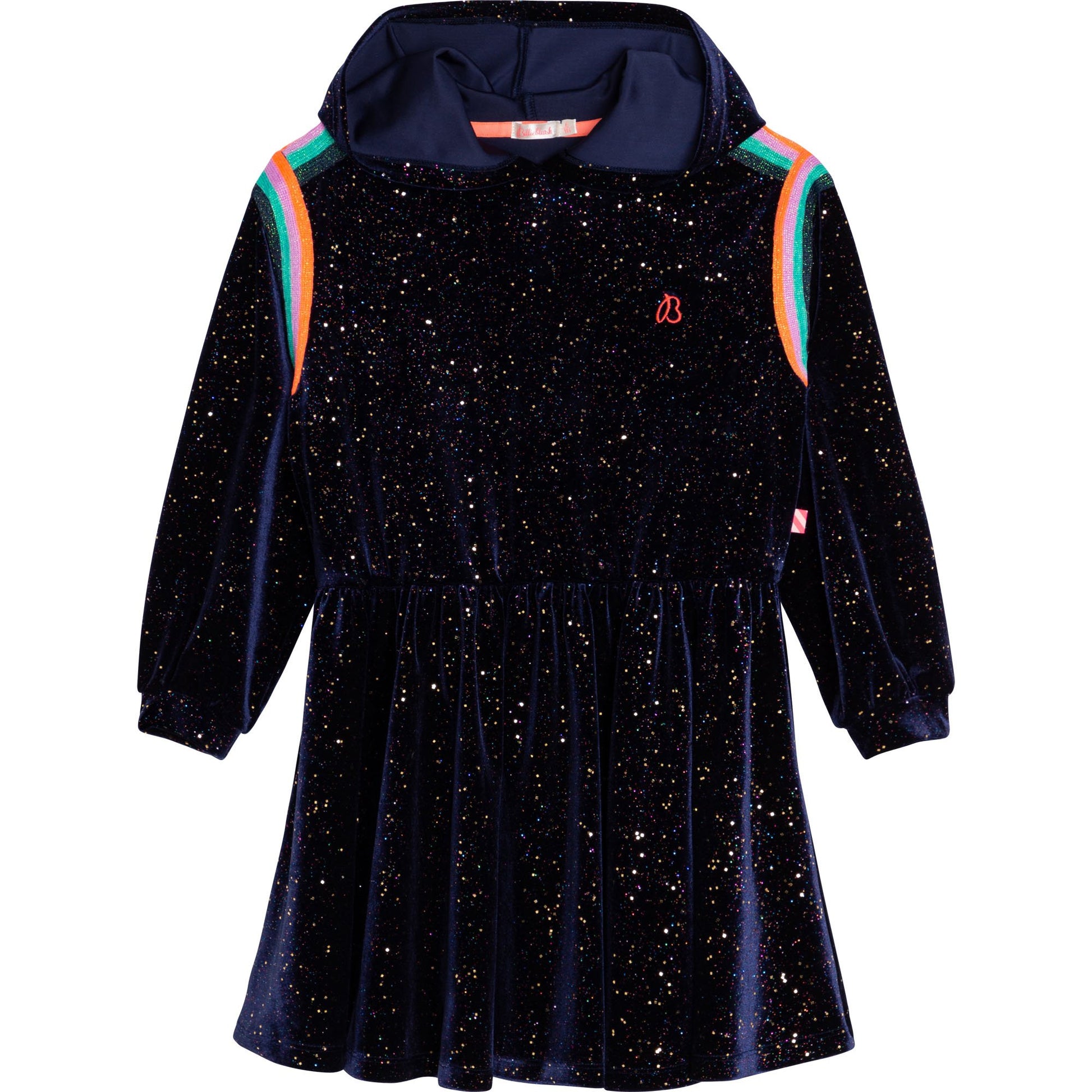 女童蓝色闪光连帽连衣裙