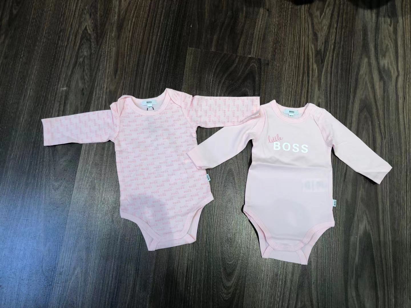 女婴粉色Logo棉连体衣套装 (2件)