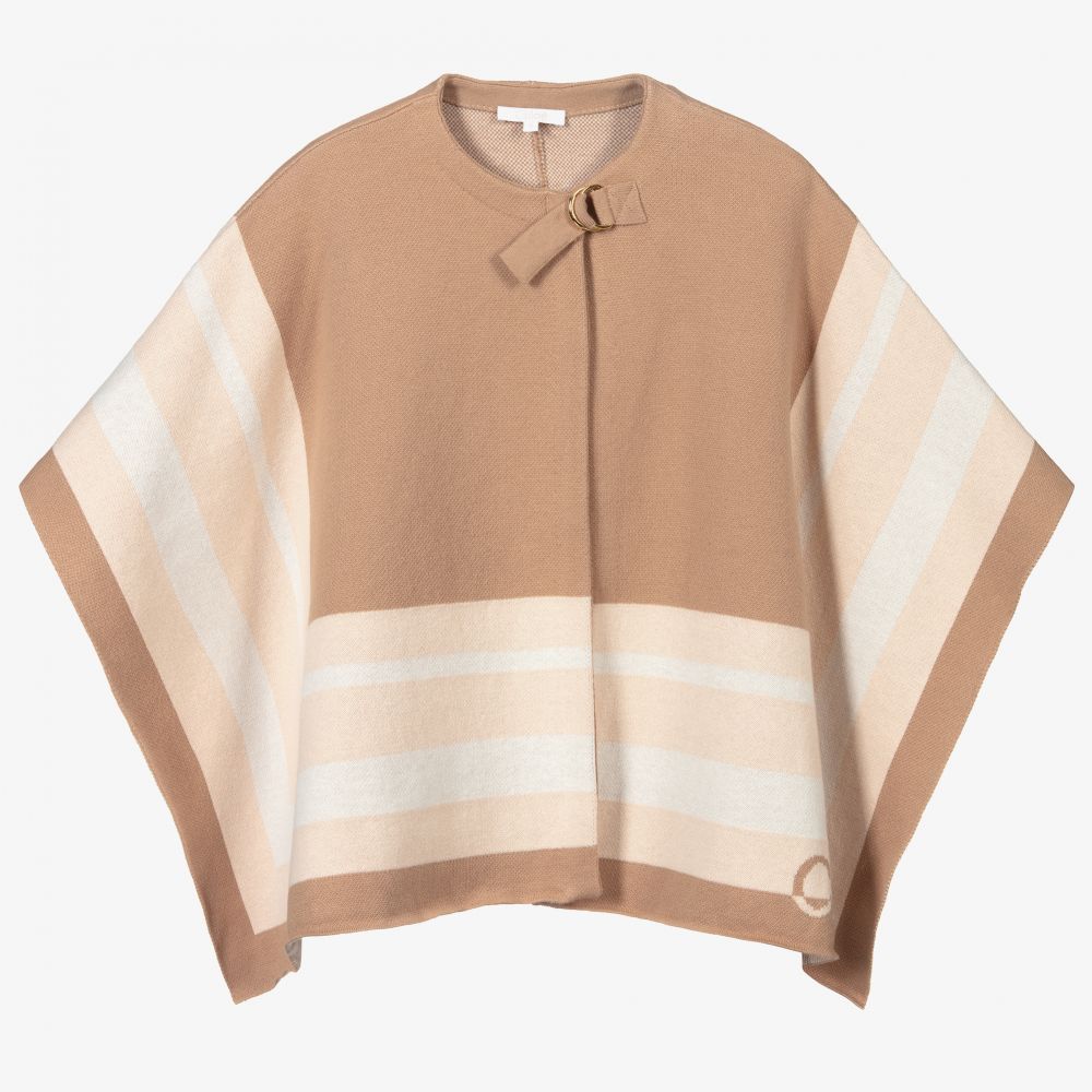 女童米色&粉色针织斗篷