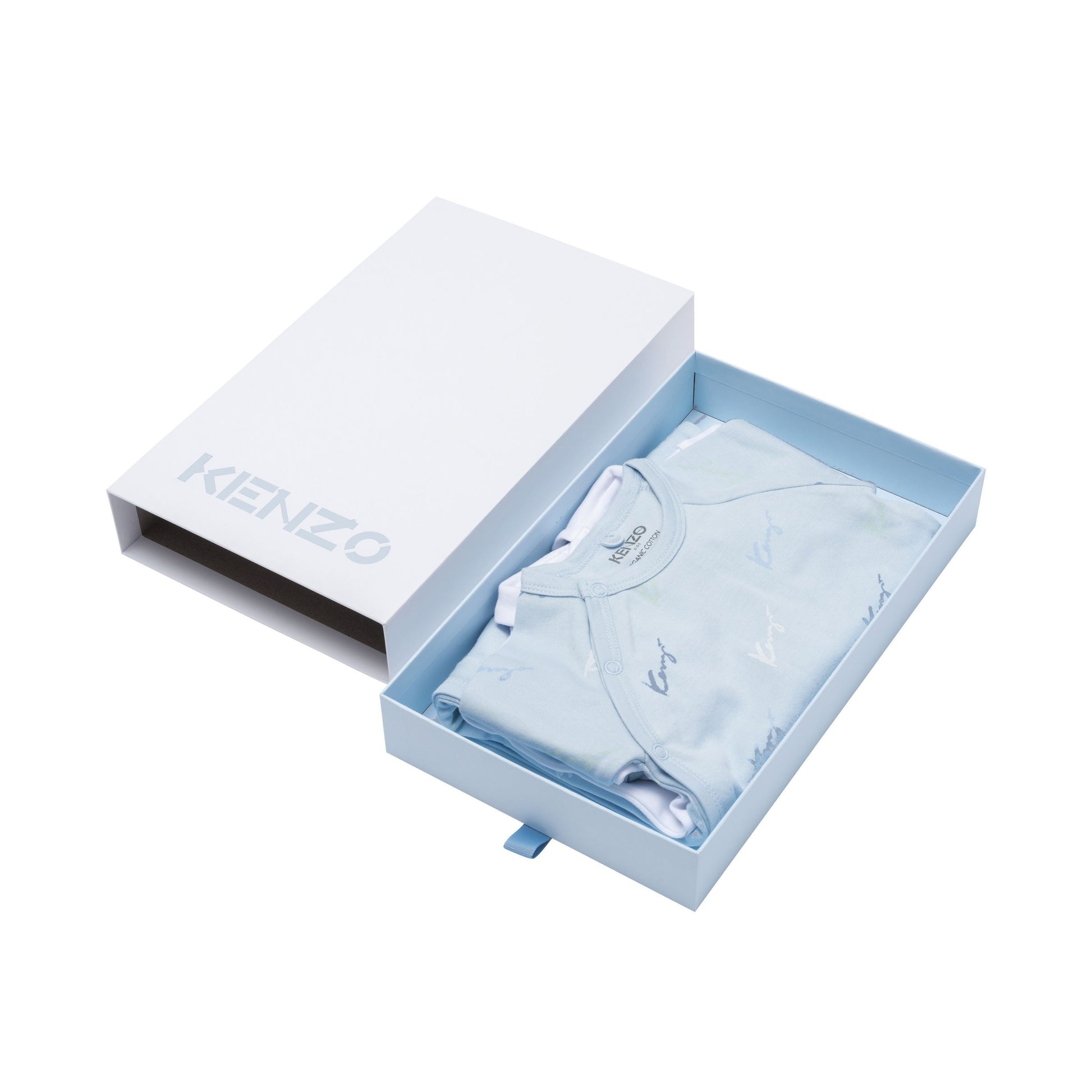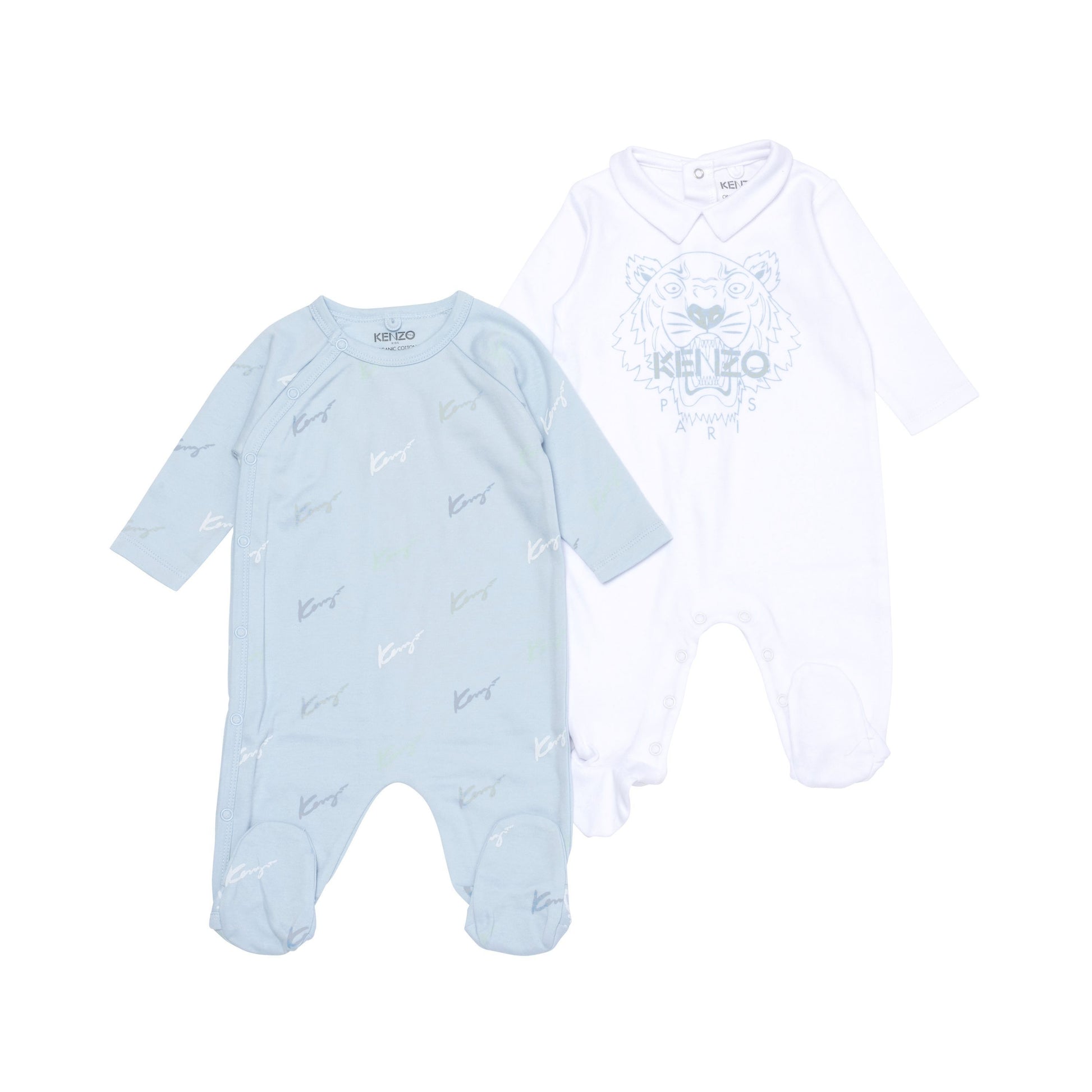 男婴蓝色&白色棉连体衣套装