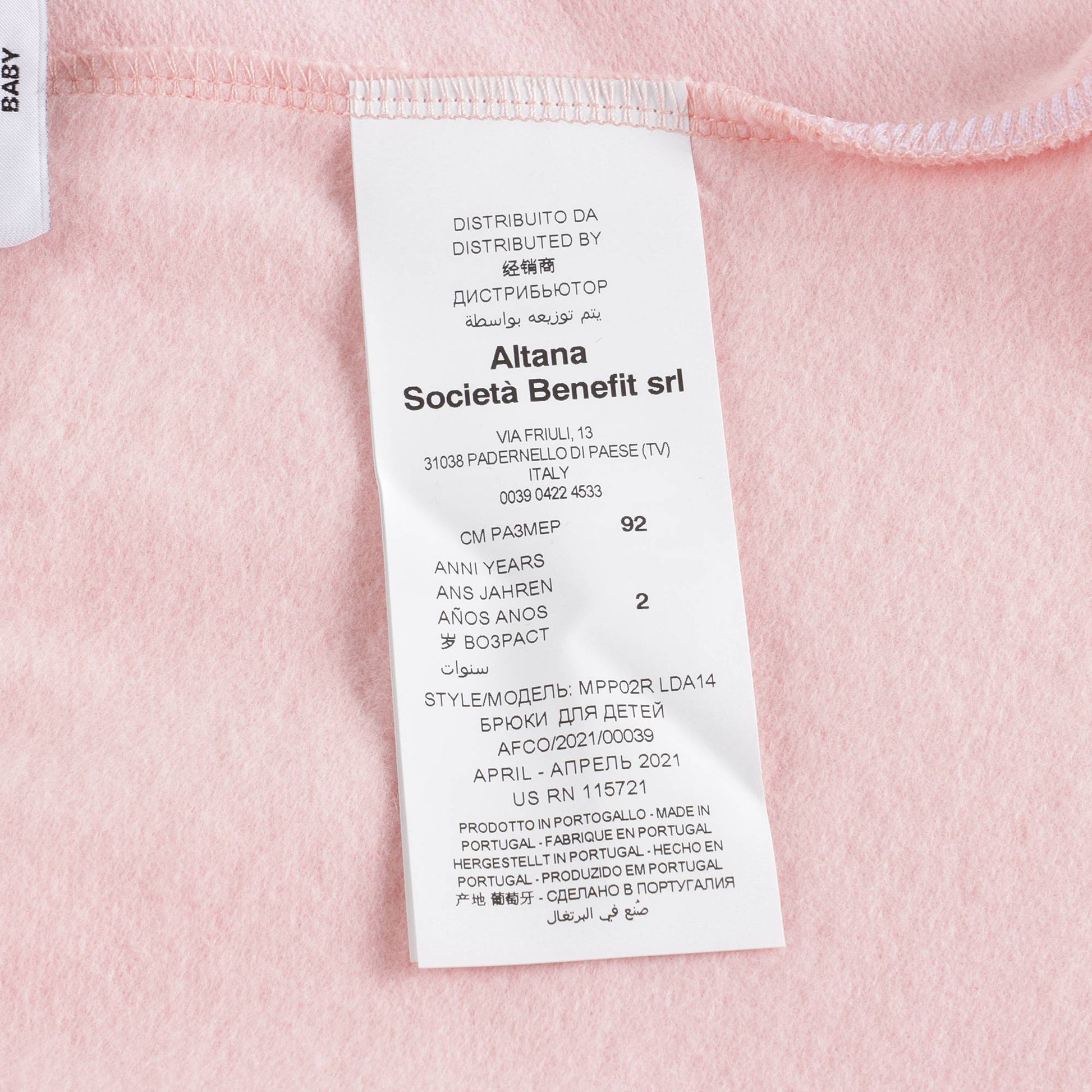 增加 女婴粉色棉长裤 的数量