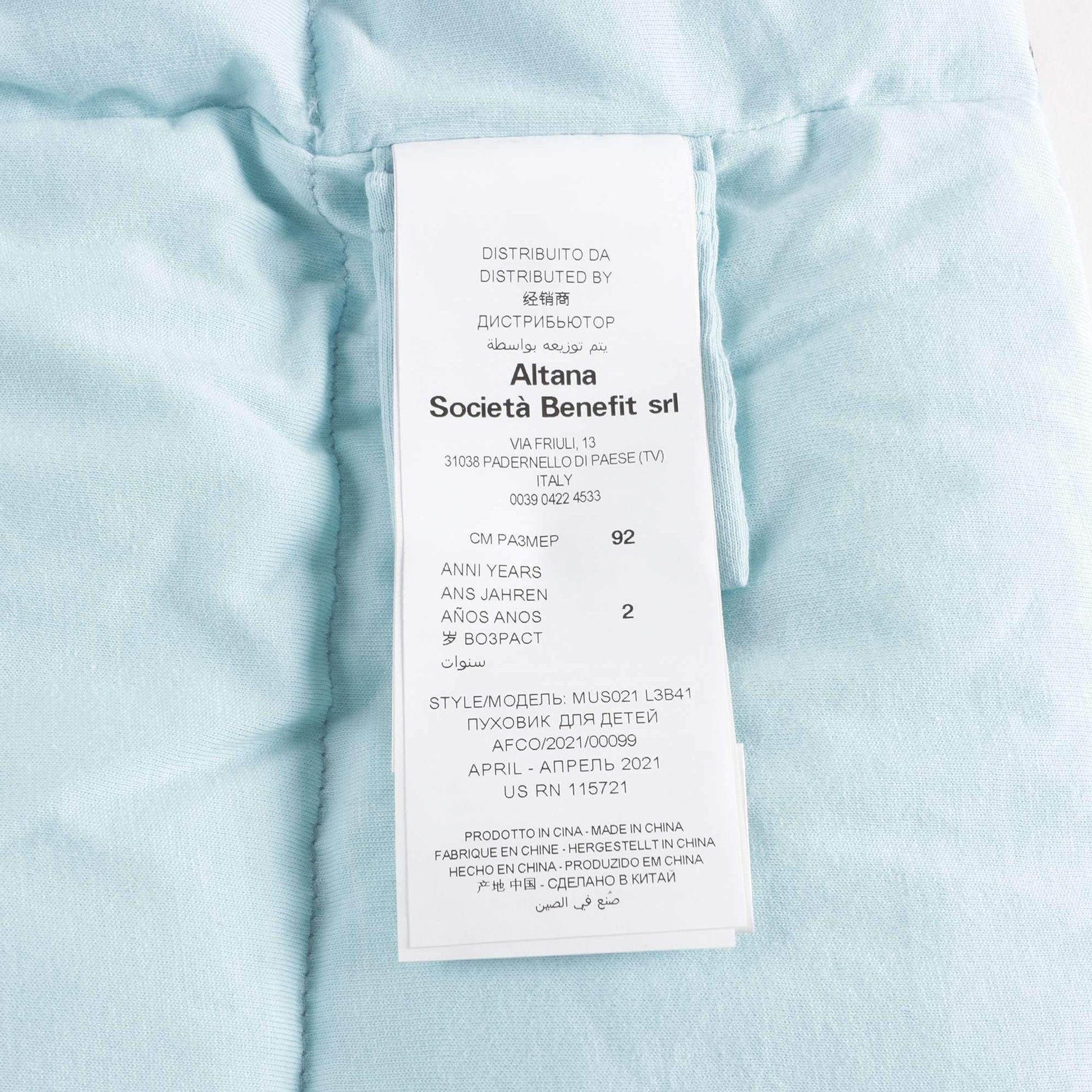 女婴蓝色印花羽绒夹克