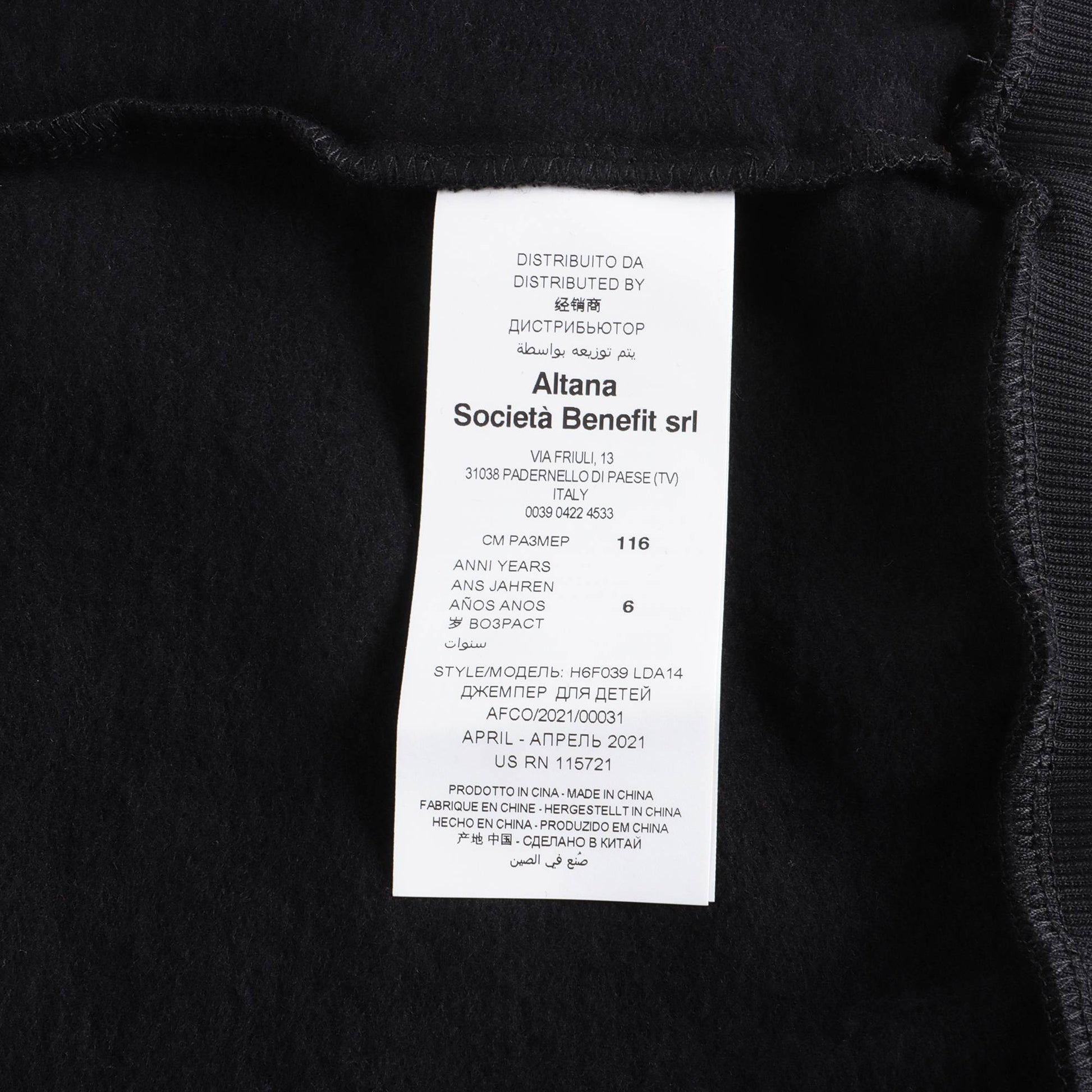 儿童黑色小熊棉卫衣