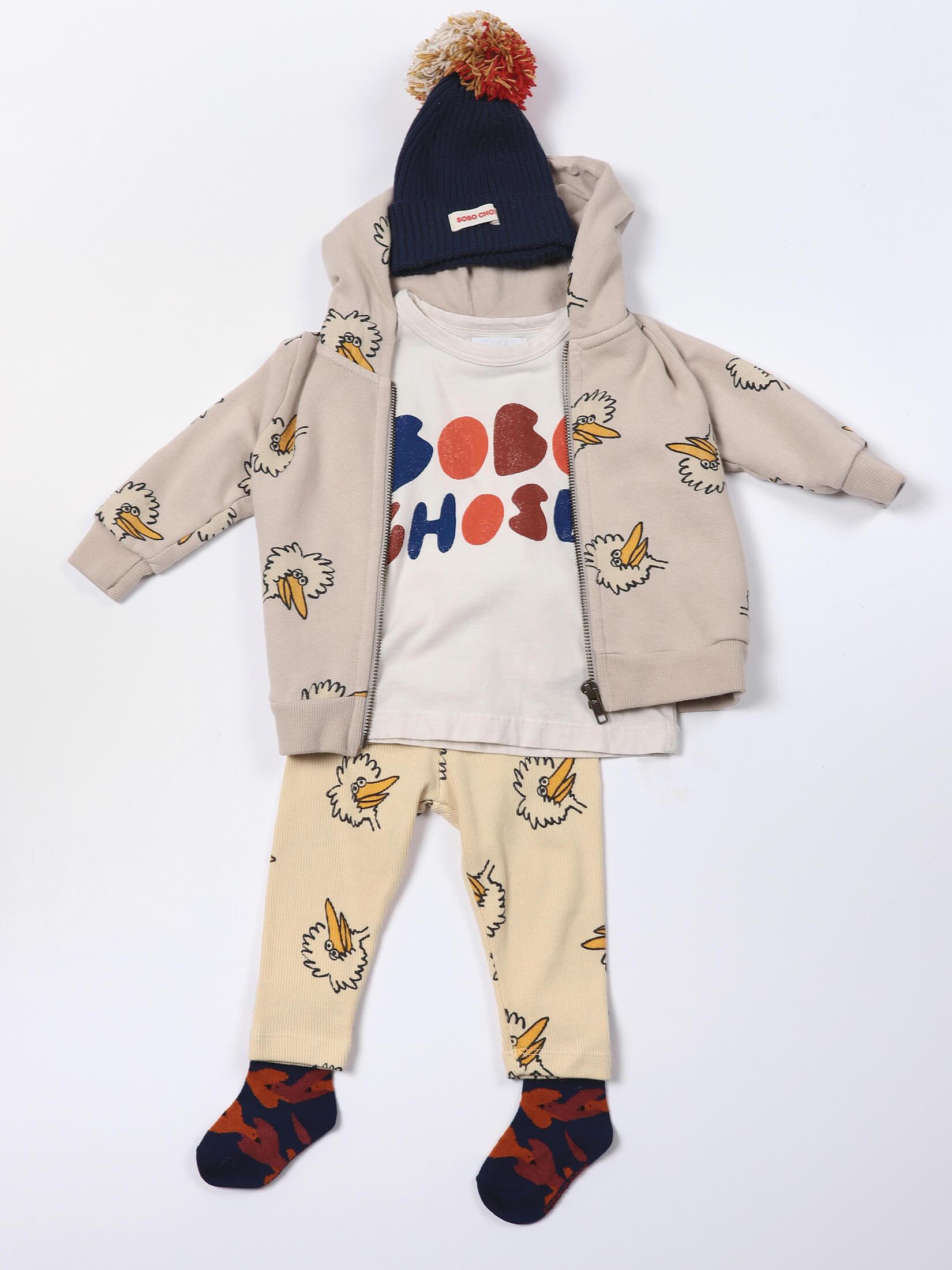 婴儿米色小鸟印花棉打底裤