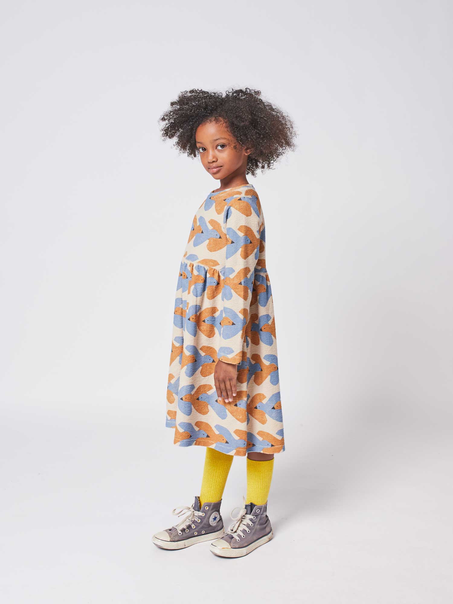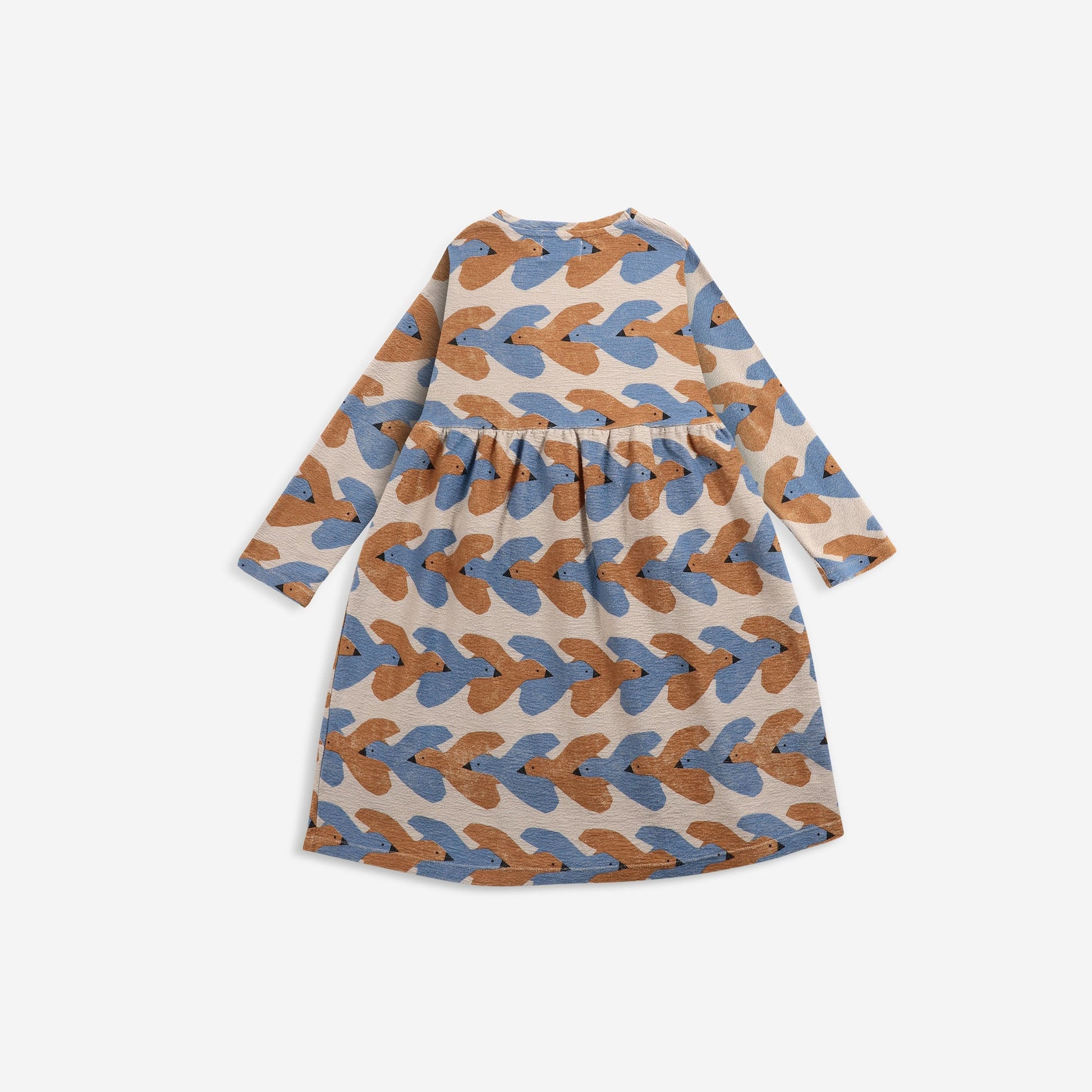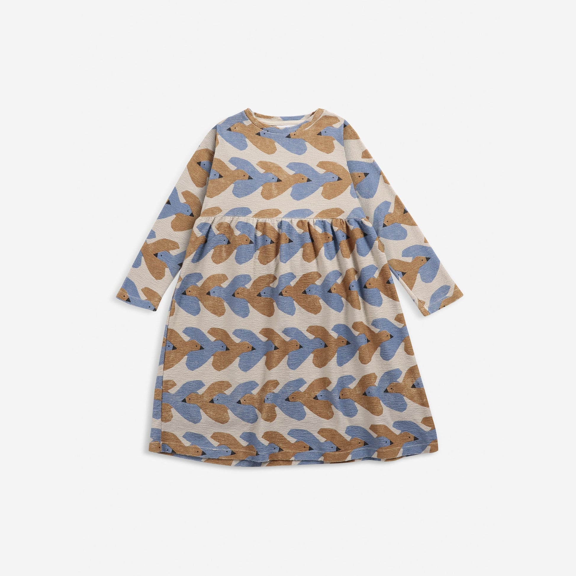 女童米色小鸟印花棉连衣裙