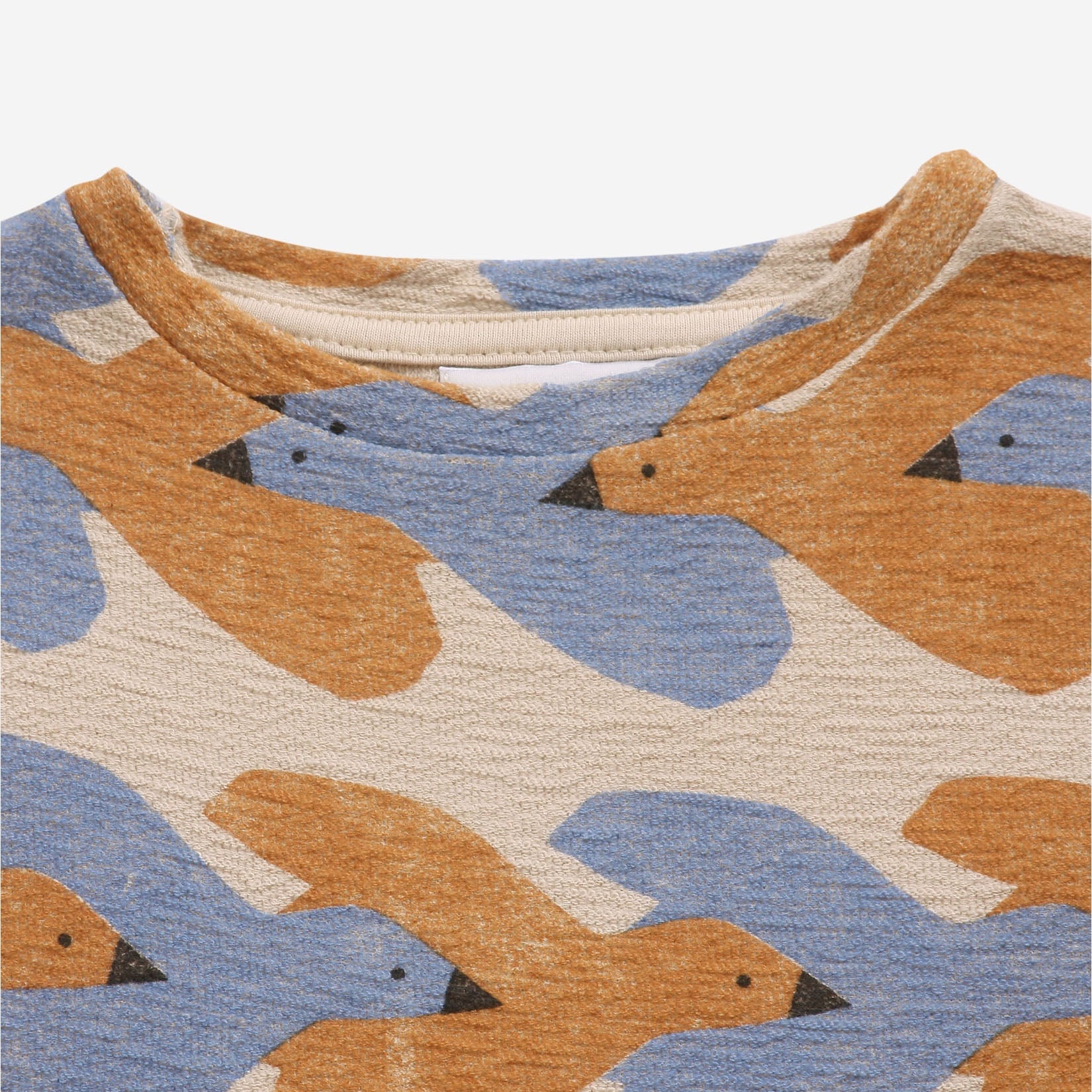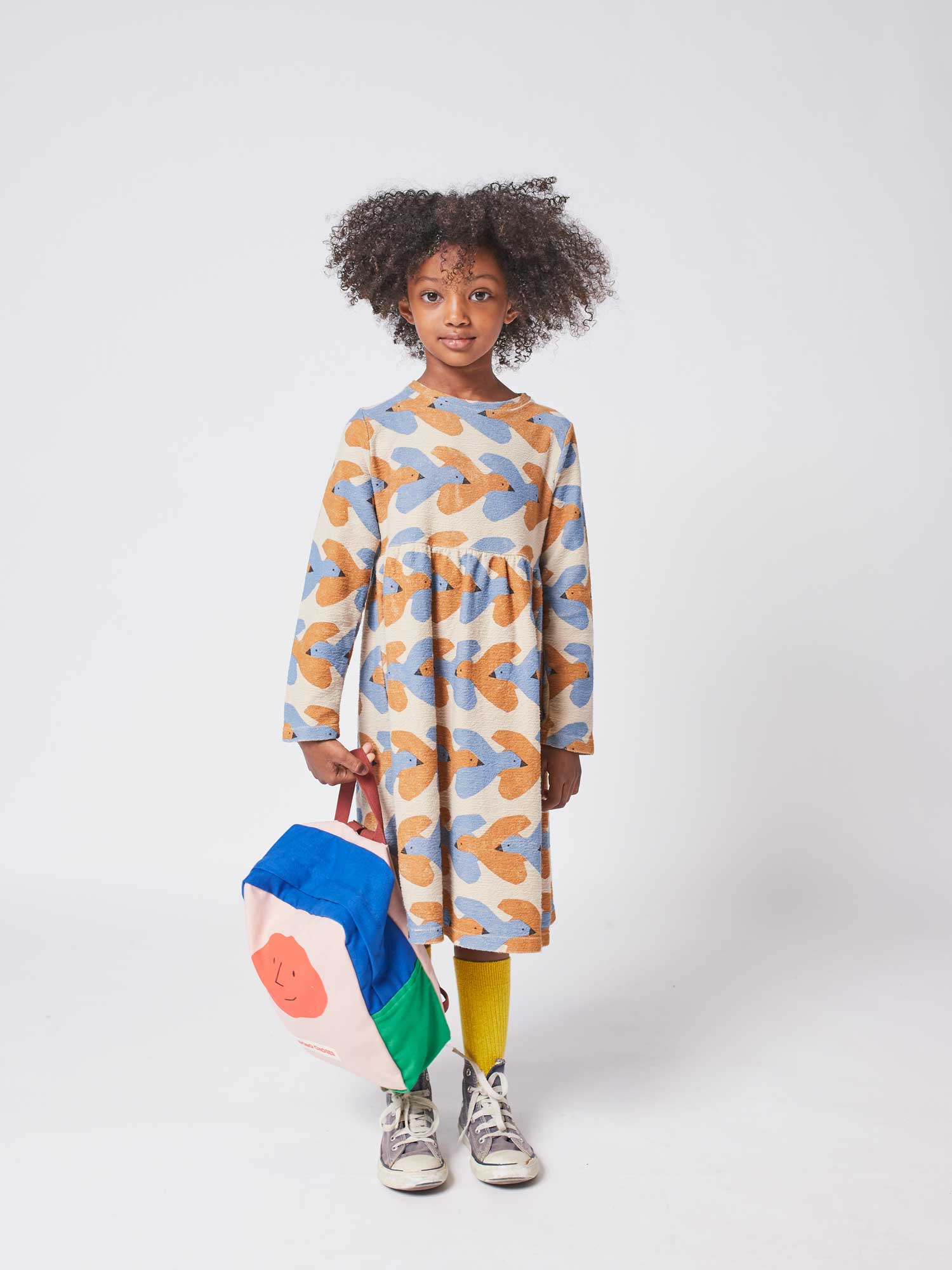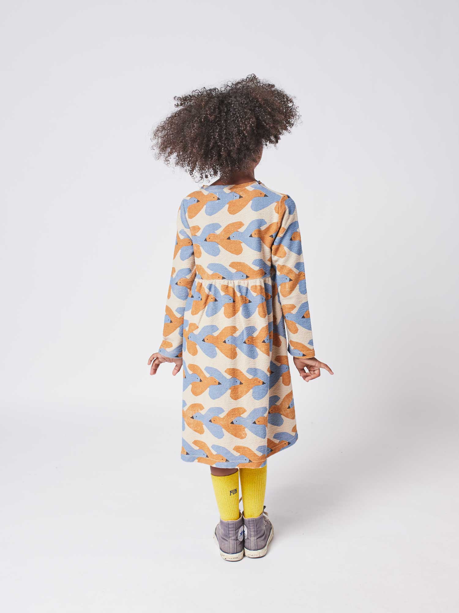 女童米色小鸟印花棉连衣裙