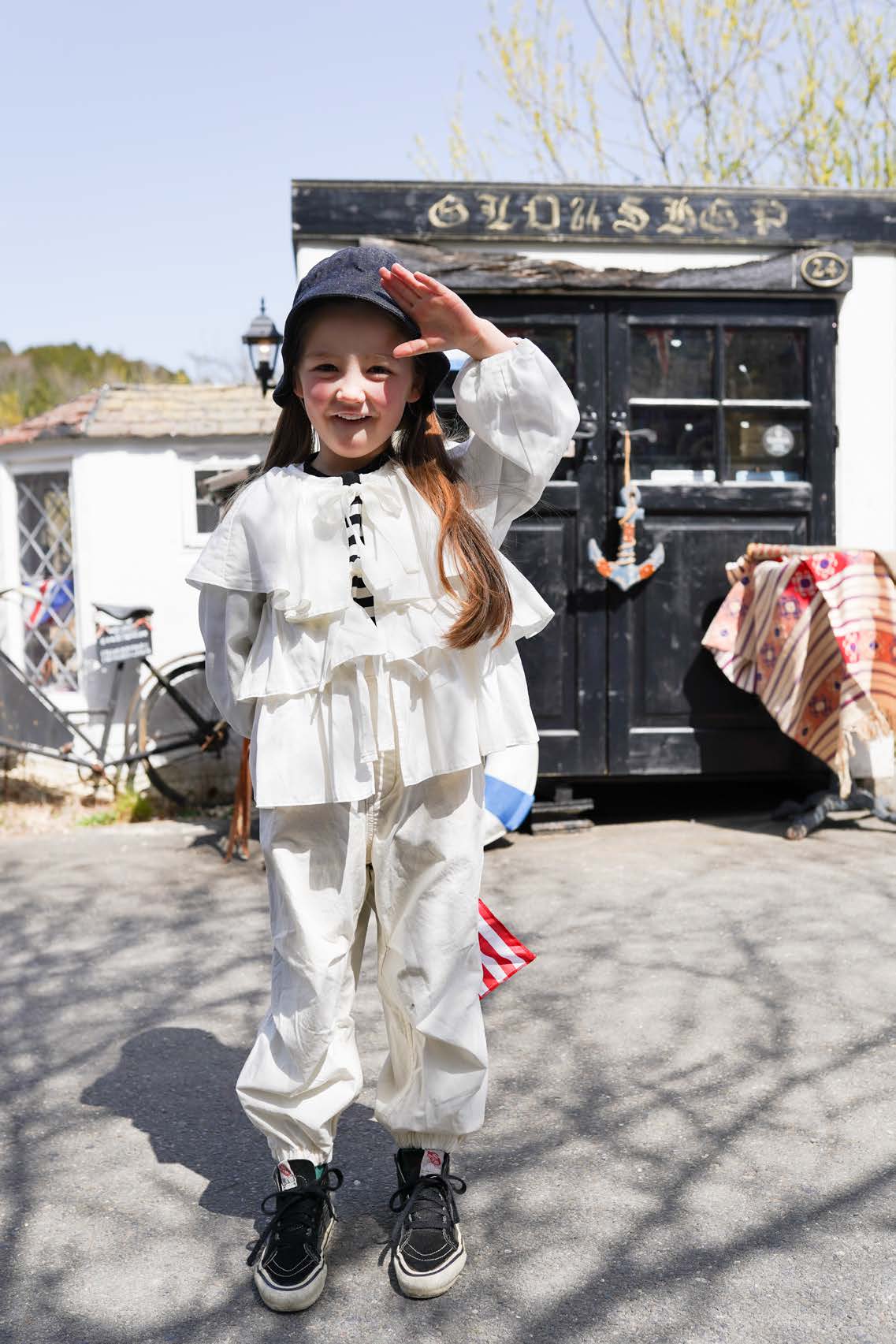 女童白色荷叶边衬衫