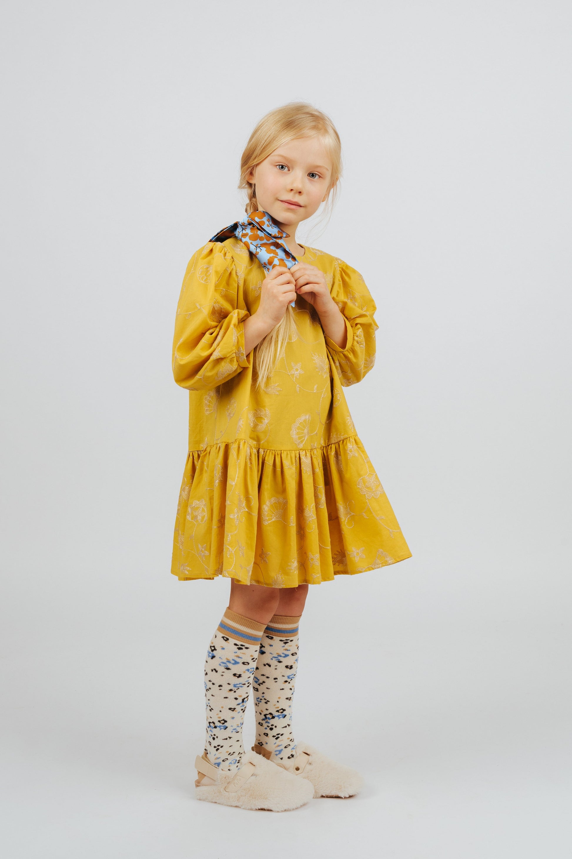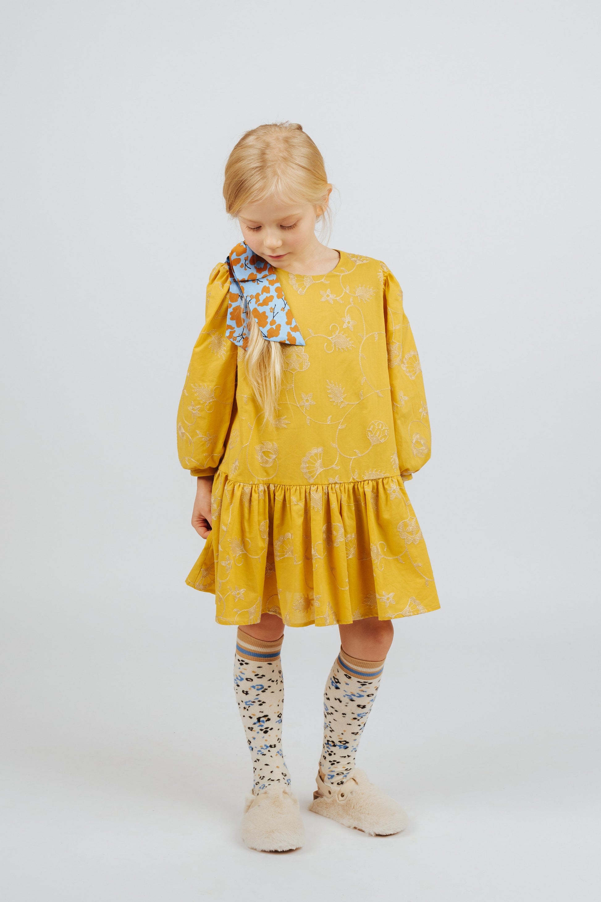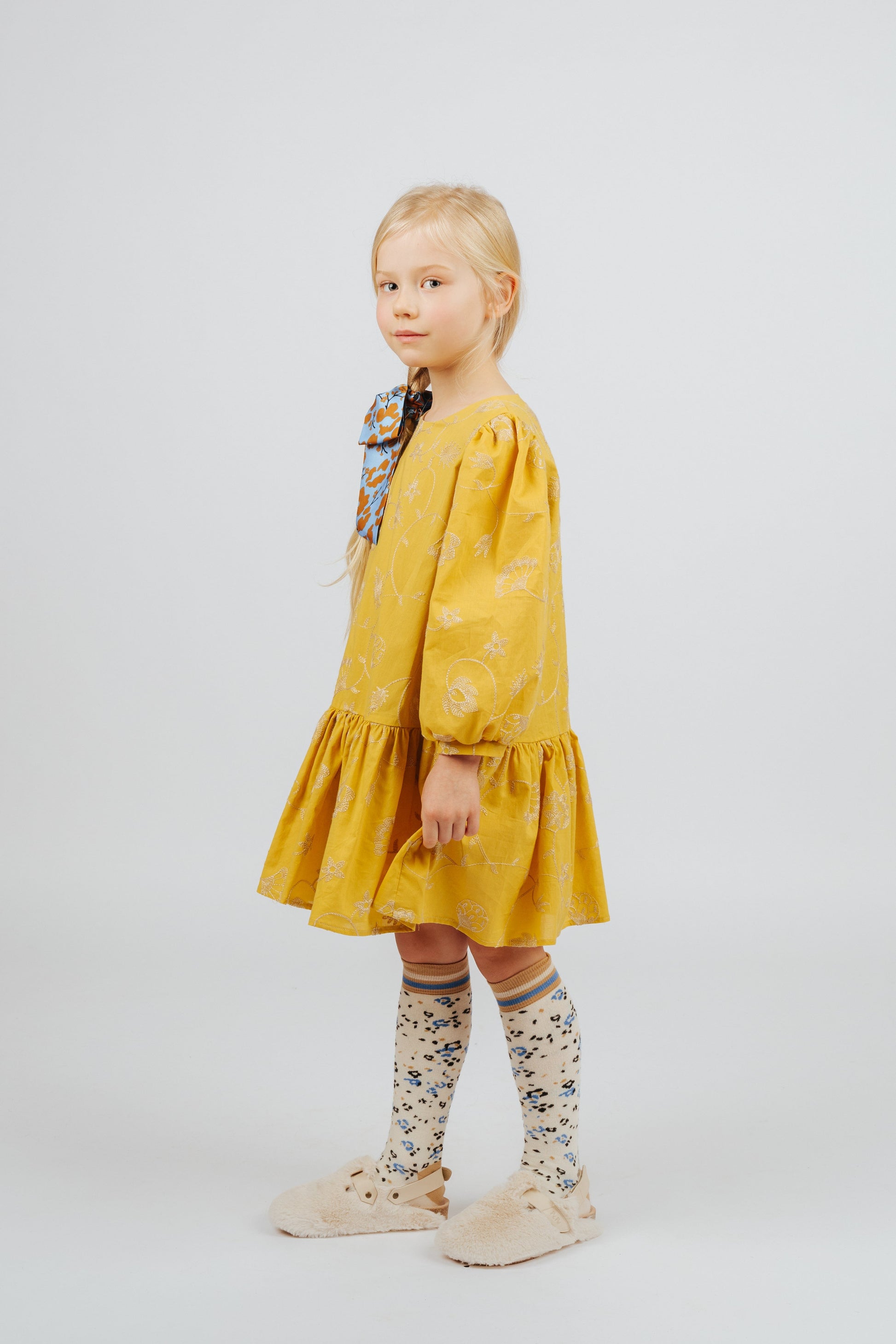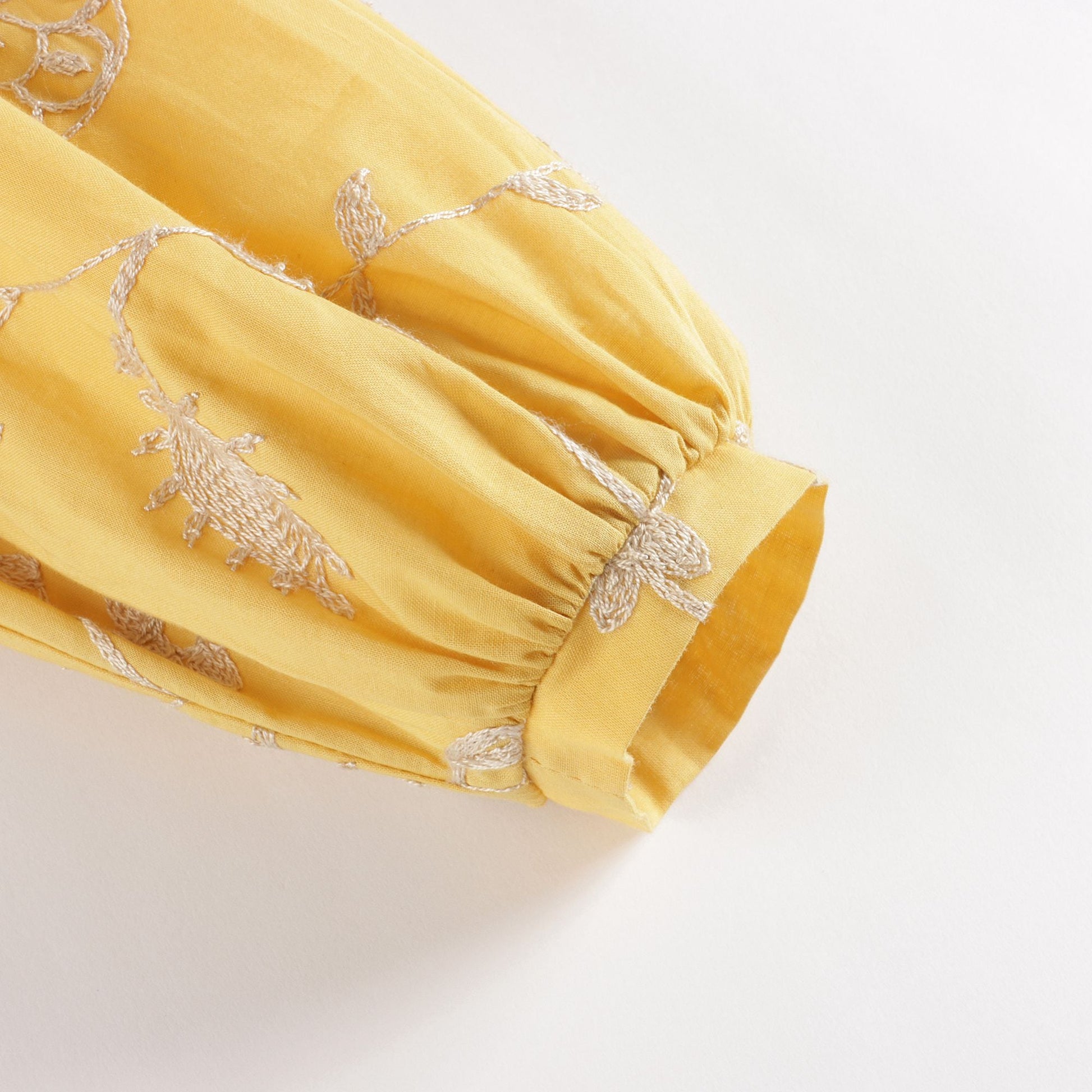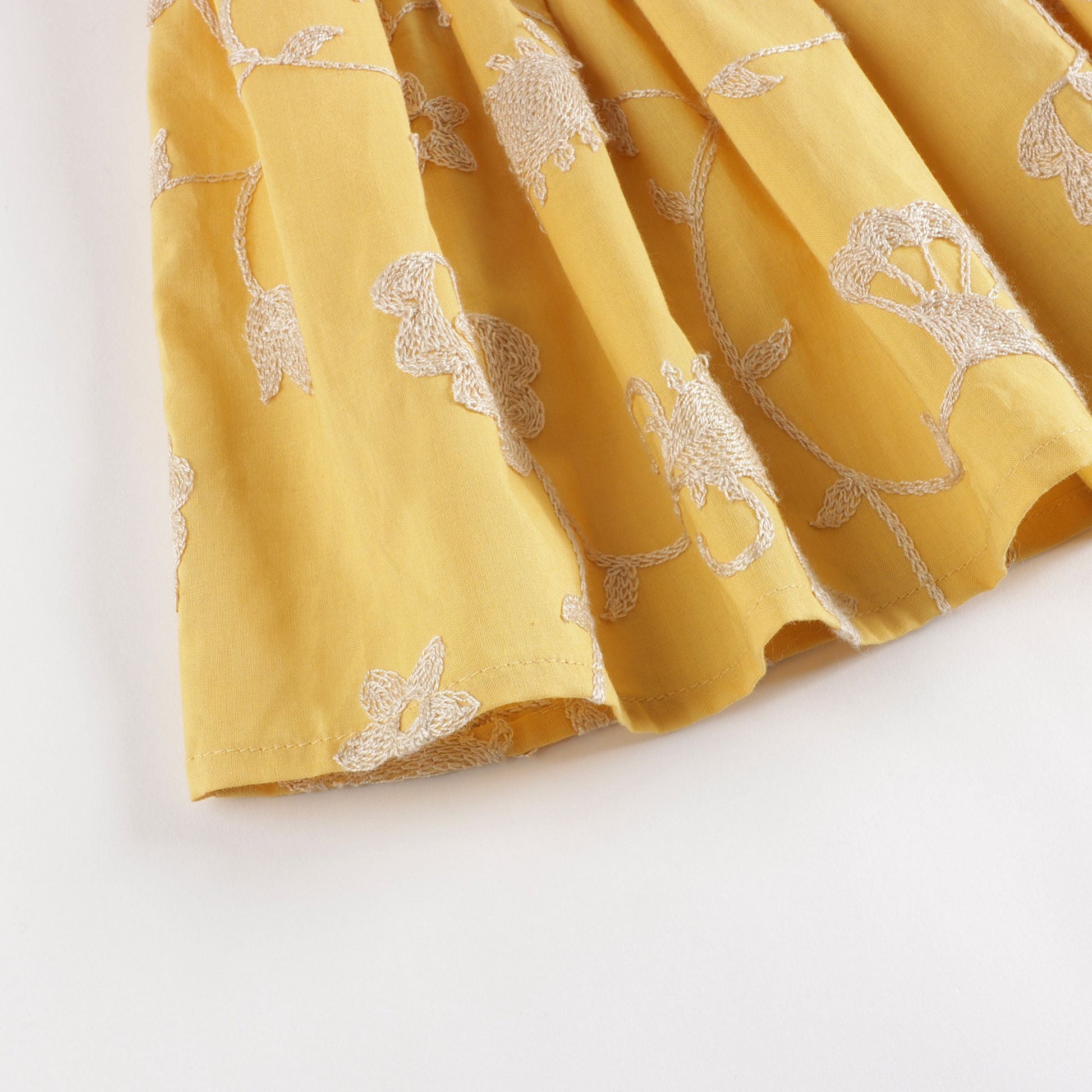 女童黄色刺绣棉连衣裙