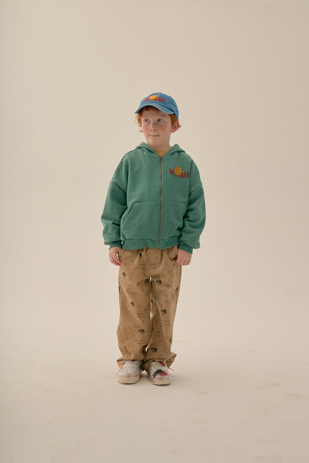 儿童绿色连帽拉链上衣